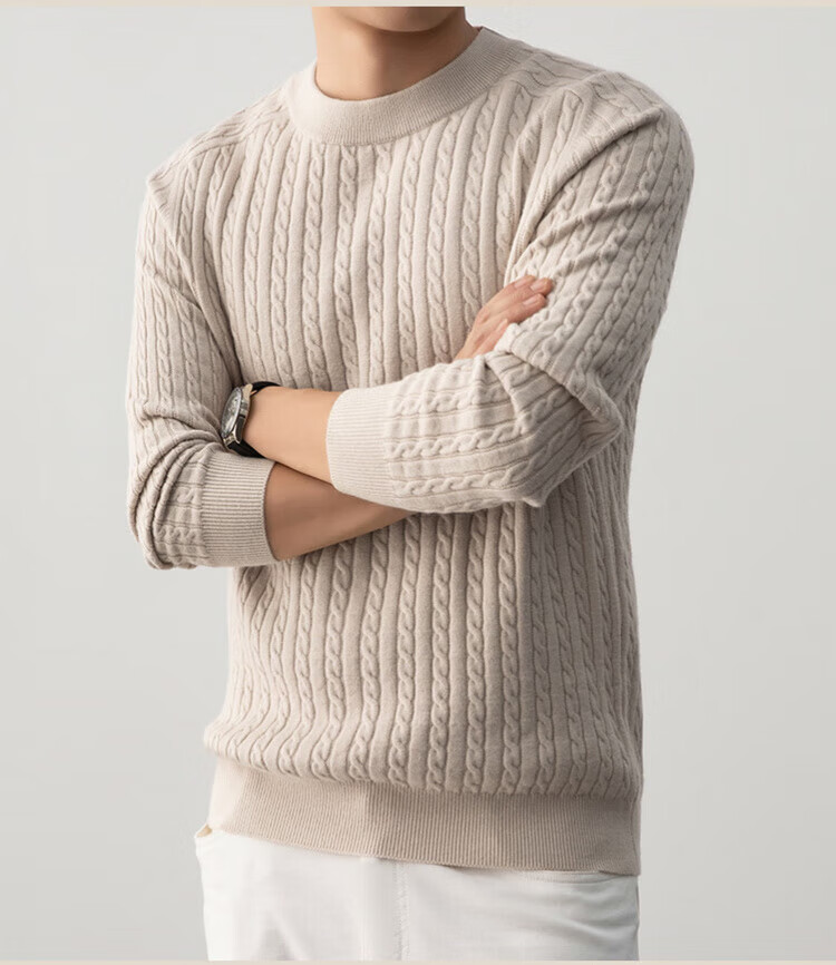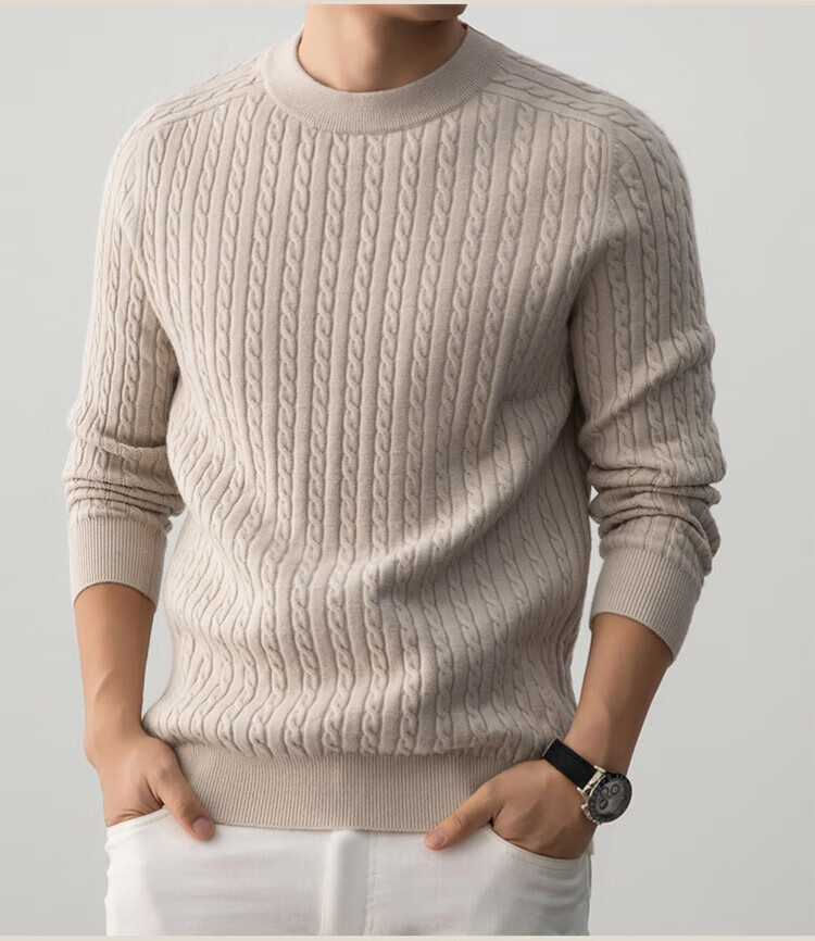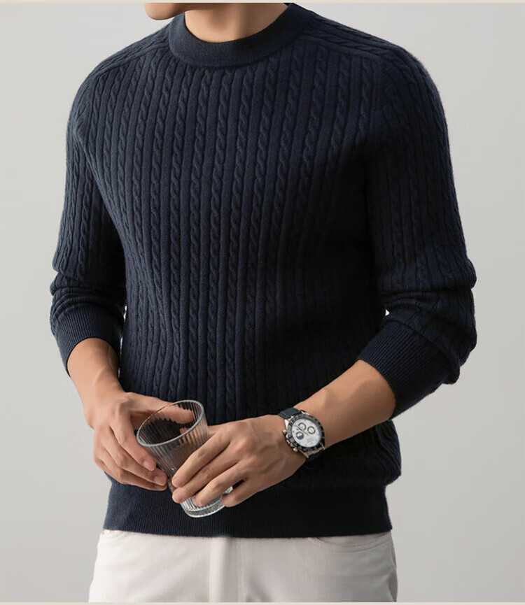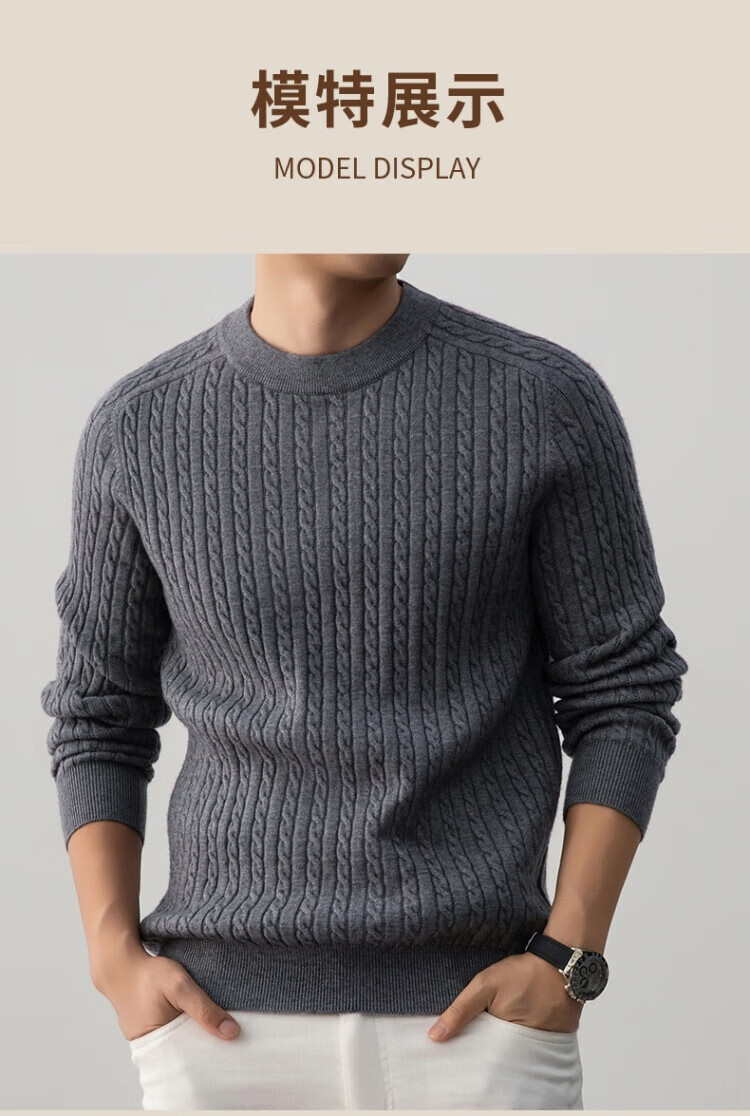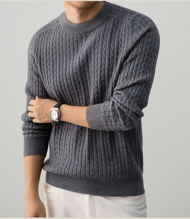 ROMON Henley collar heavyweight woolen sweater for men autumn and winter casual old money hemp pattern sweater warm base layer lace gray XL 115
