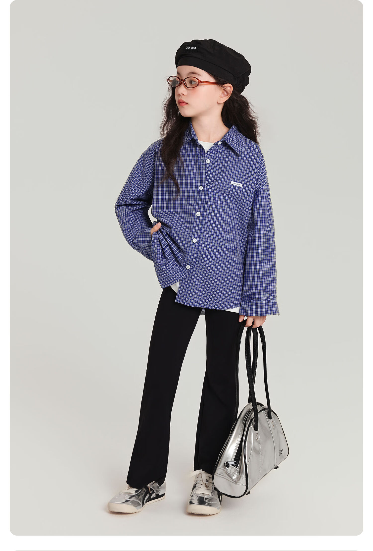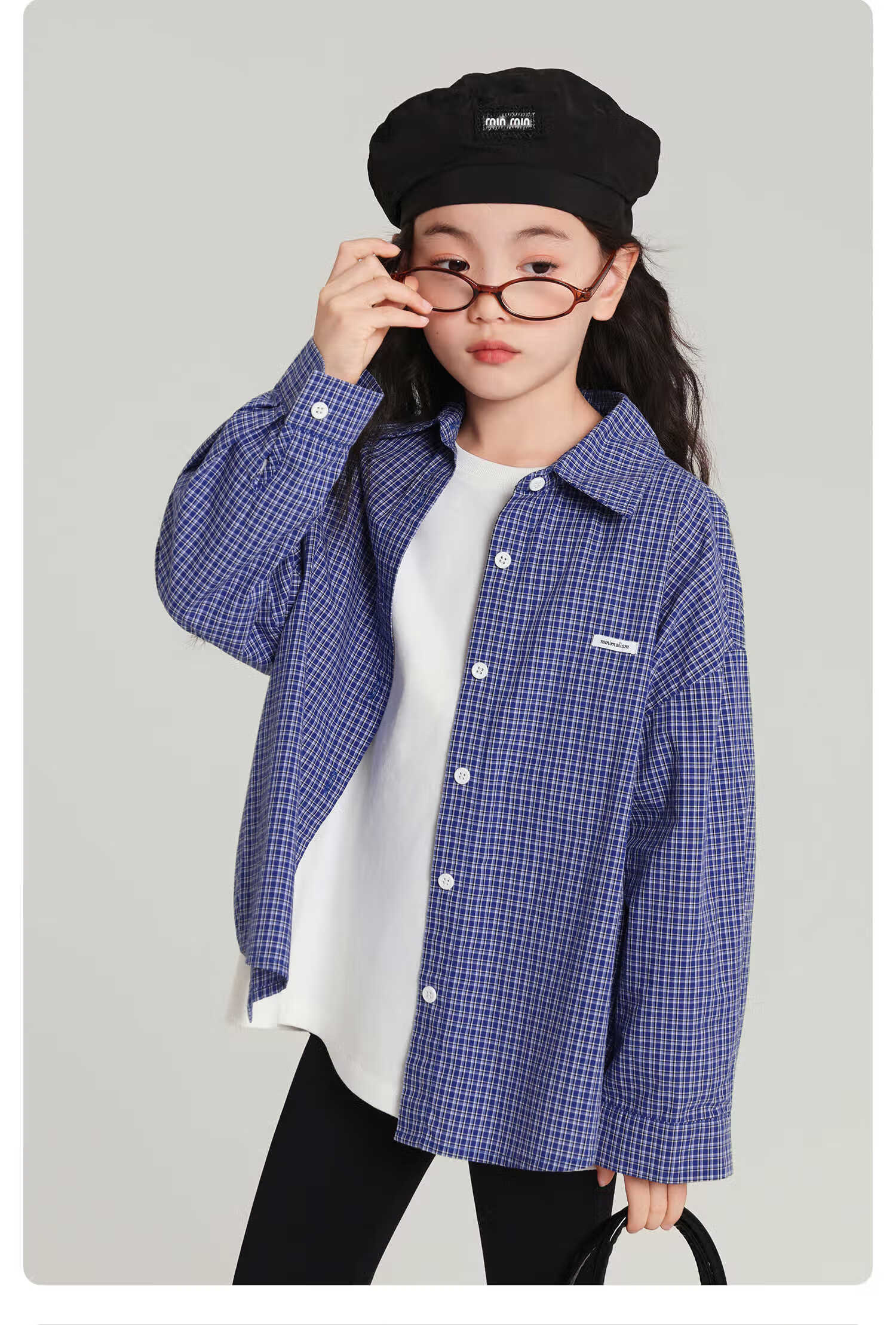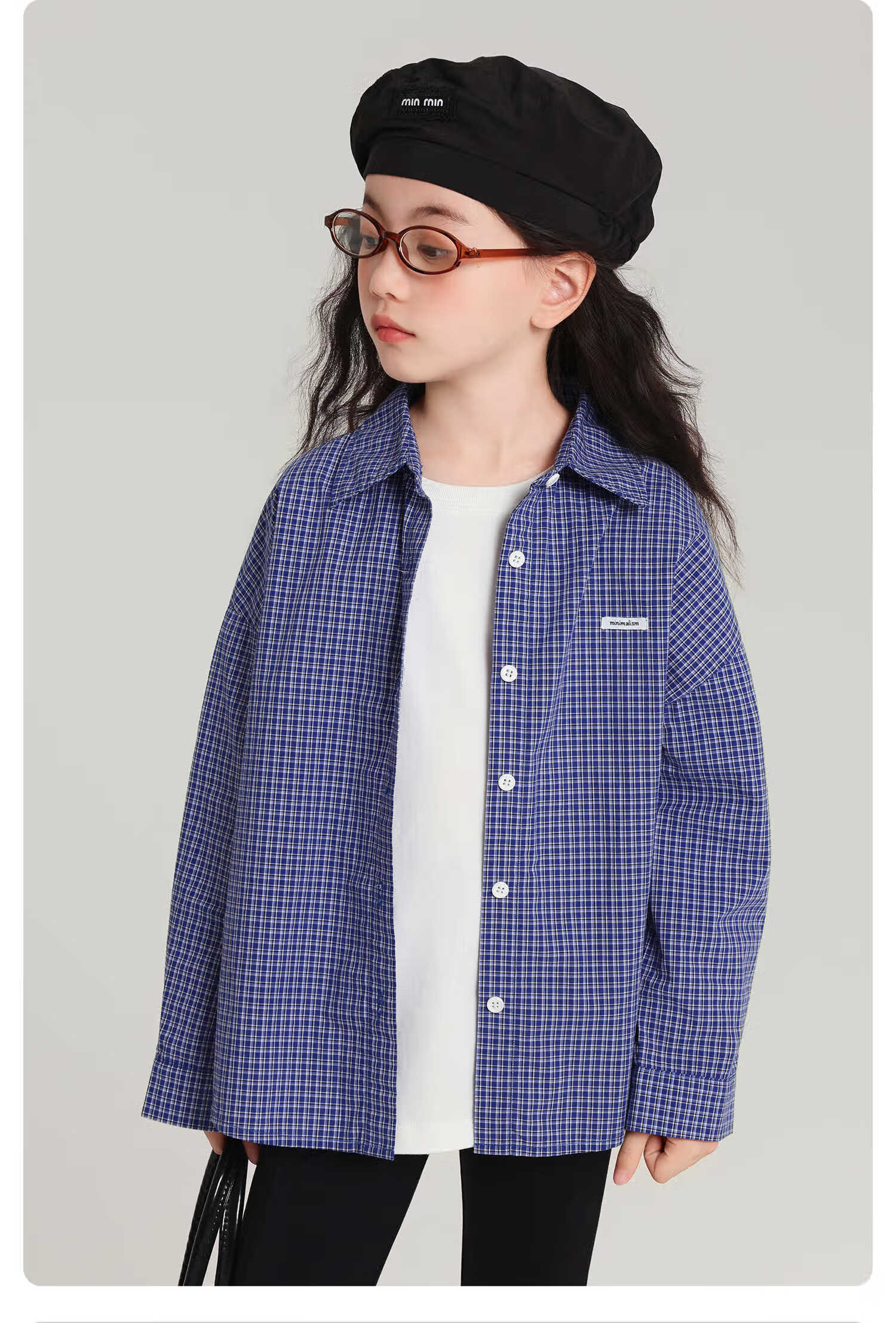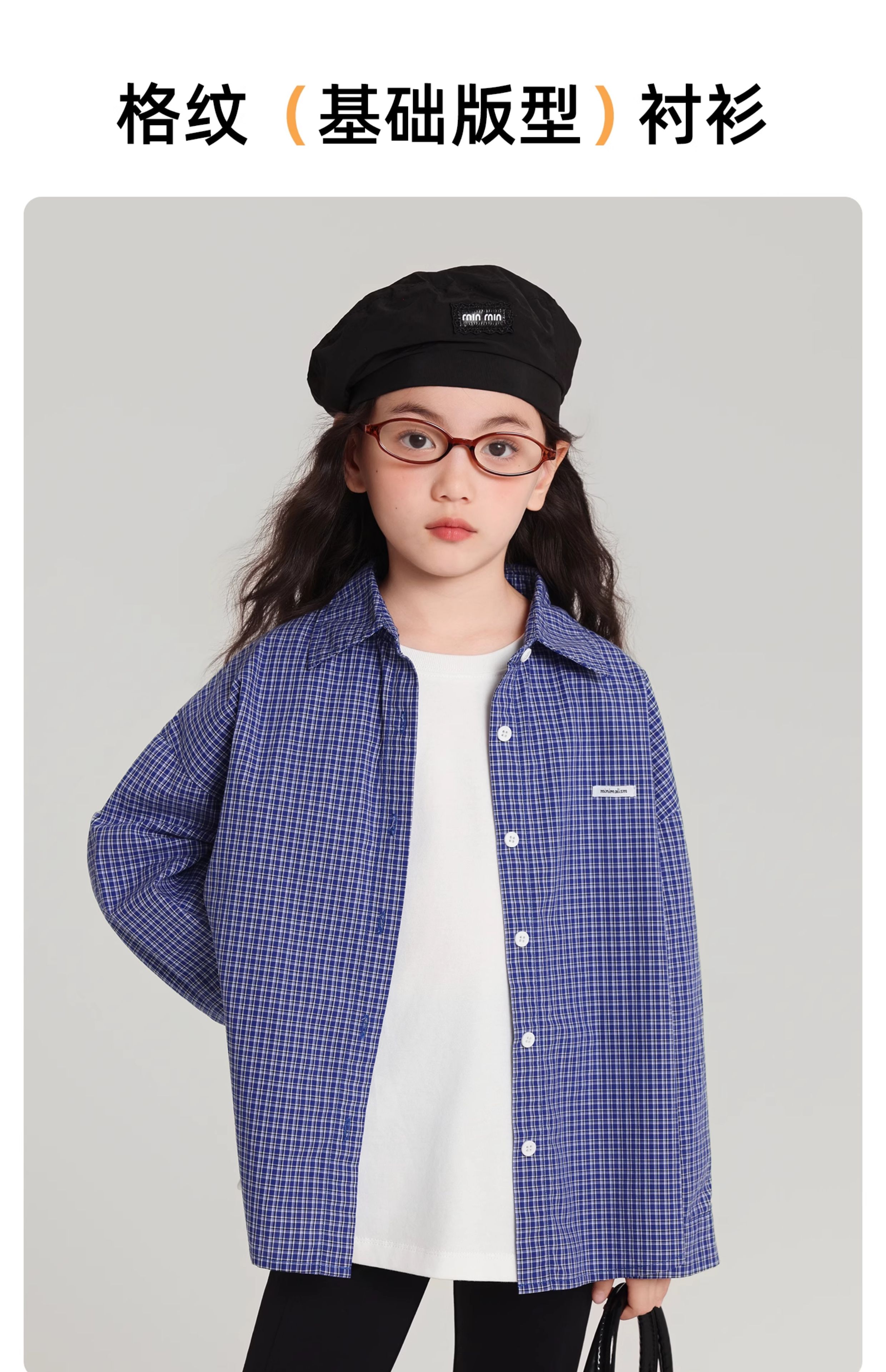 Pudding Haru 100% Cotton Girls Loose Plaid Shirt 2026 Spring and Autumn New Style Medium and Large Children Simple Fashionable Versatile Top Blue 170