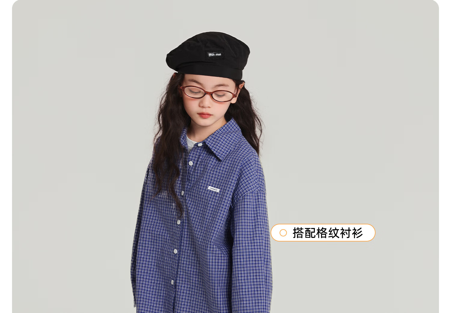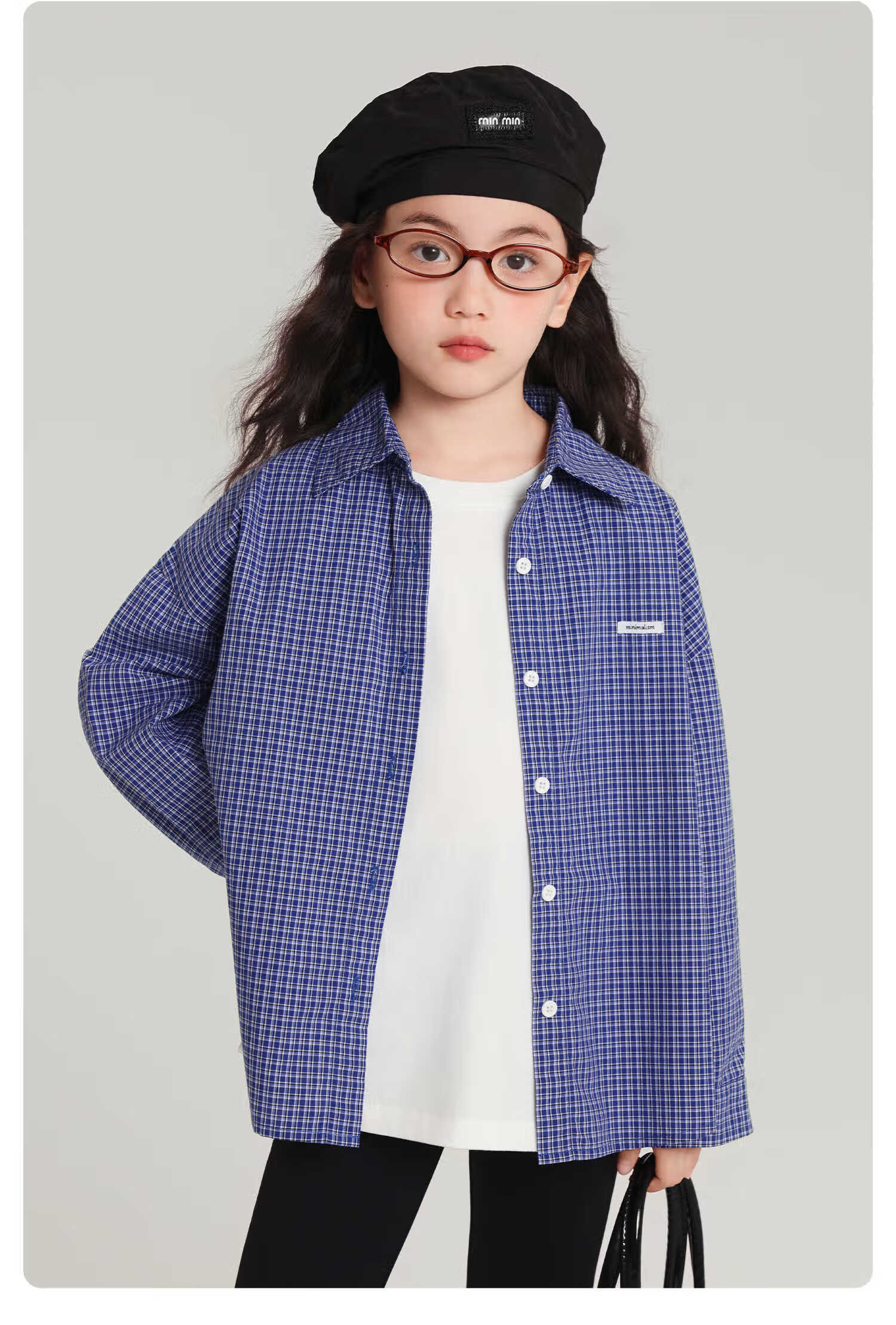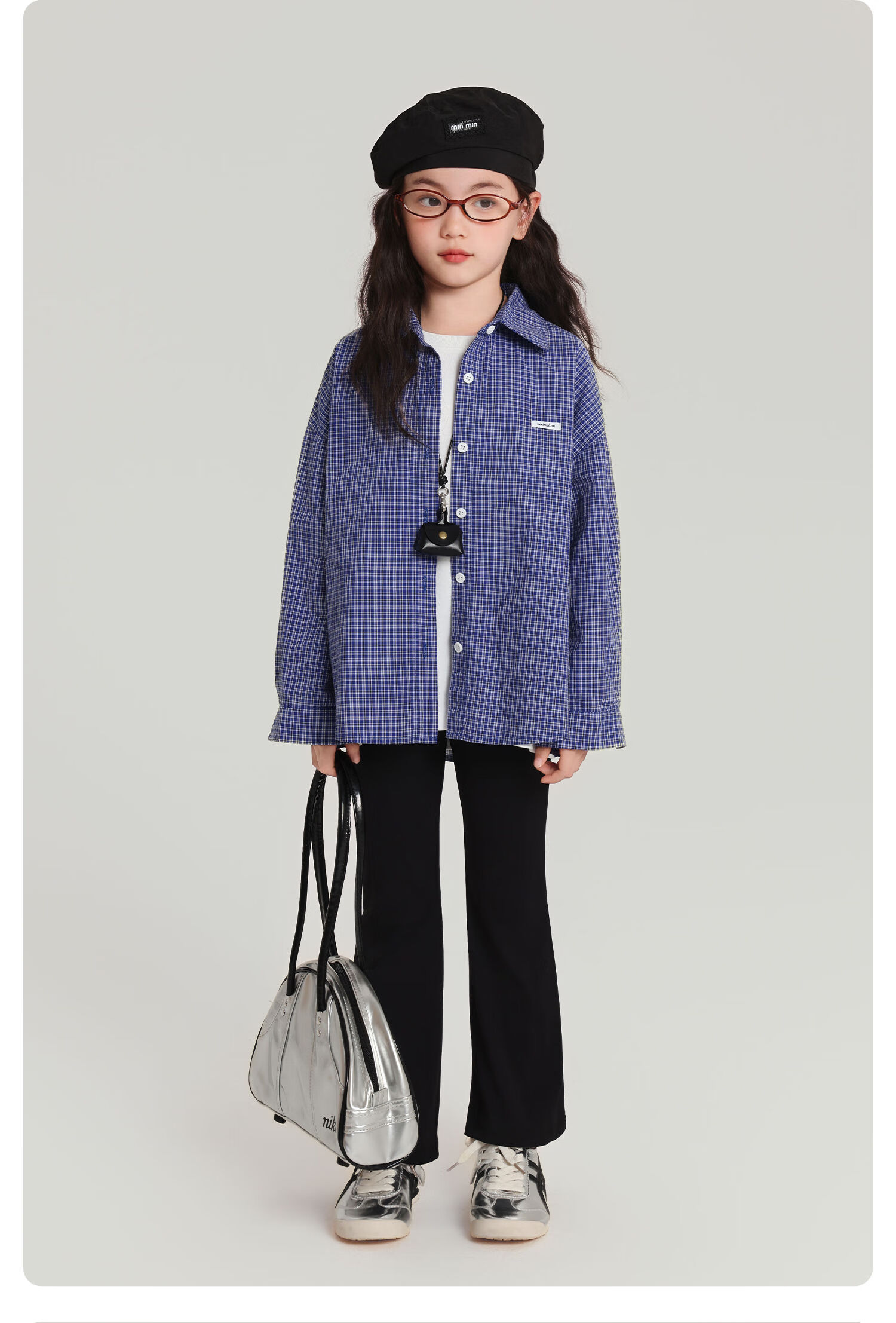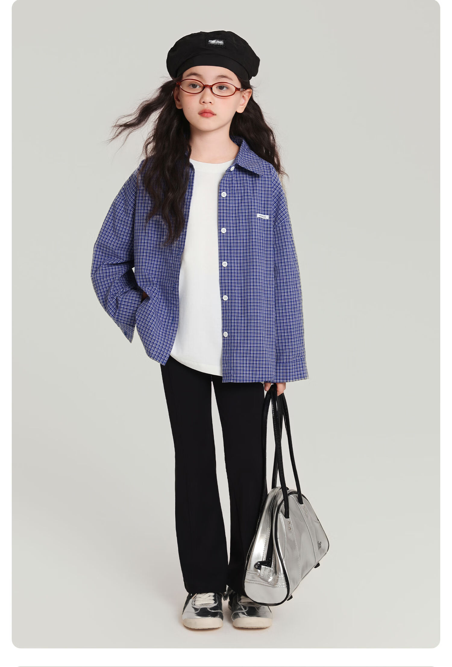 Pudding Haru 100% Cotton Girls Loose Plaid Shirt 2026 Spring and Autumn New Style Medium and Large Children Simple Fashionable Versatile Top Blue 170