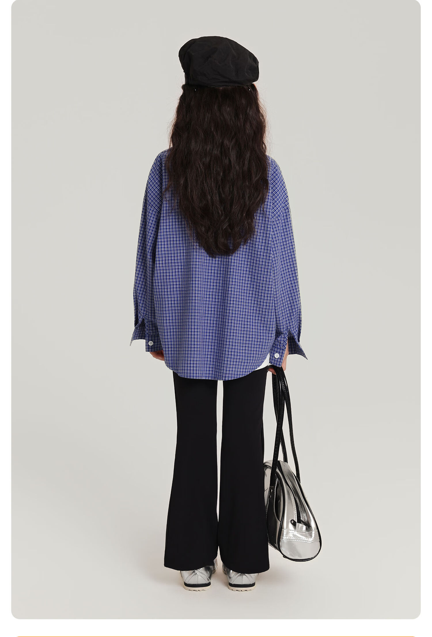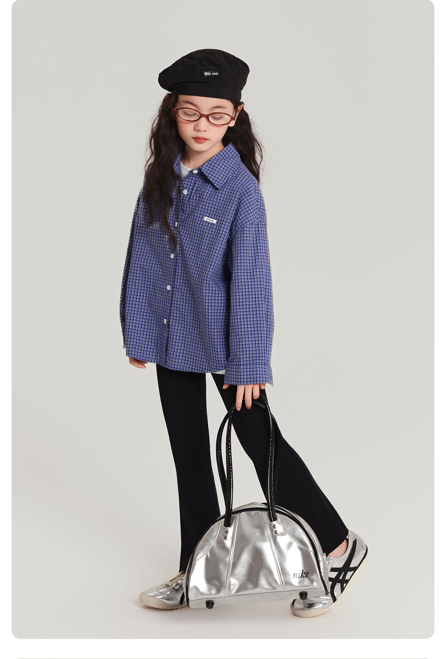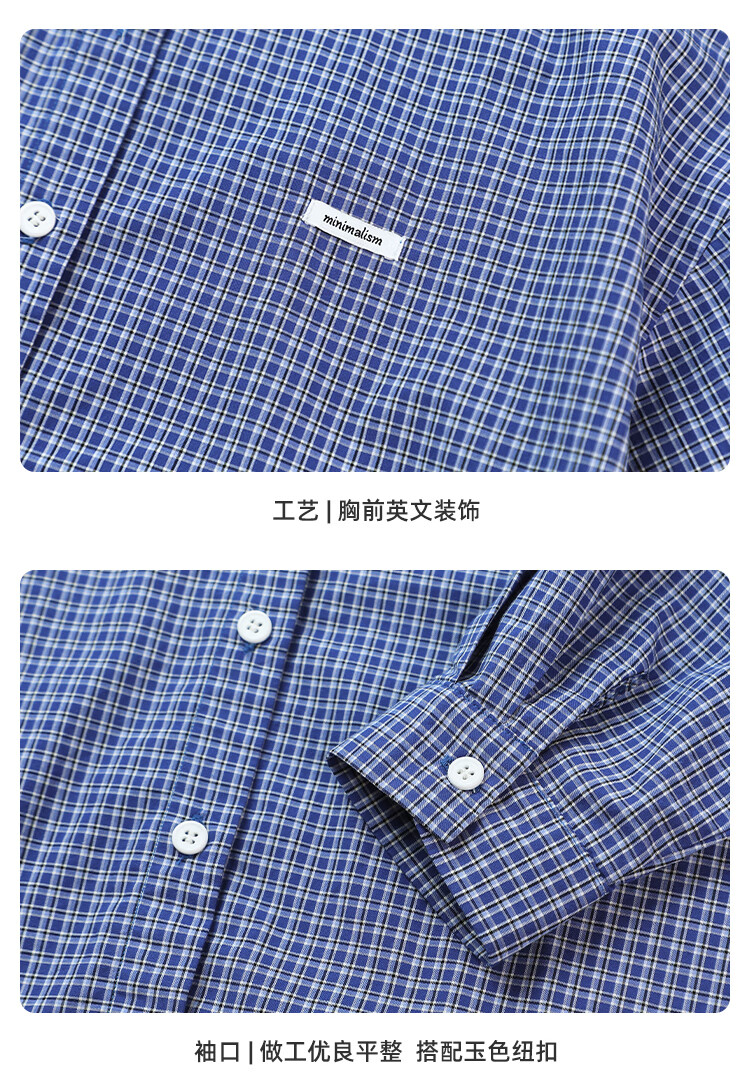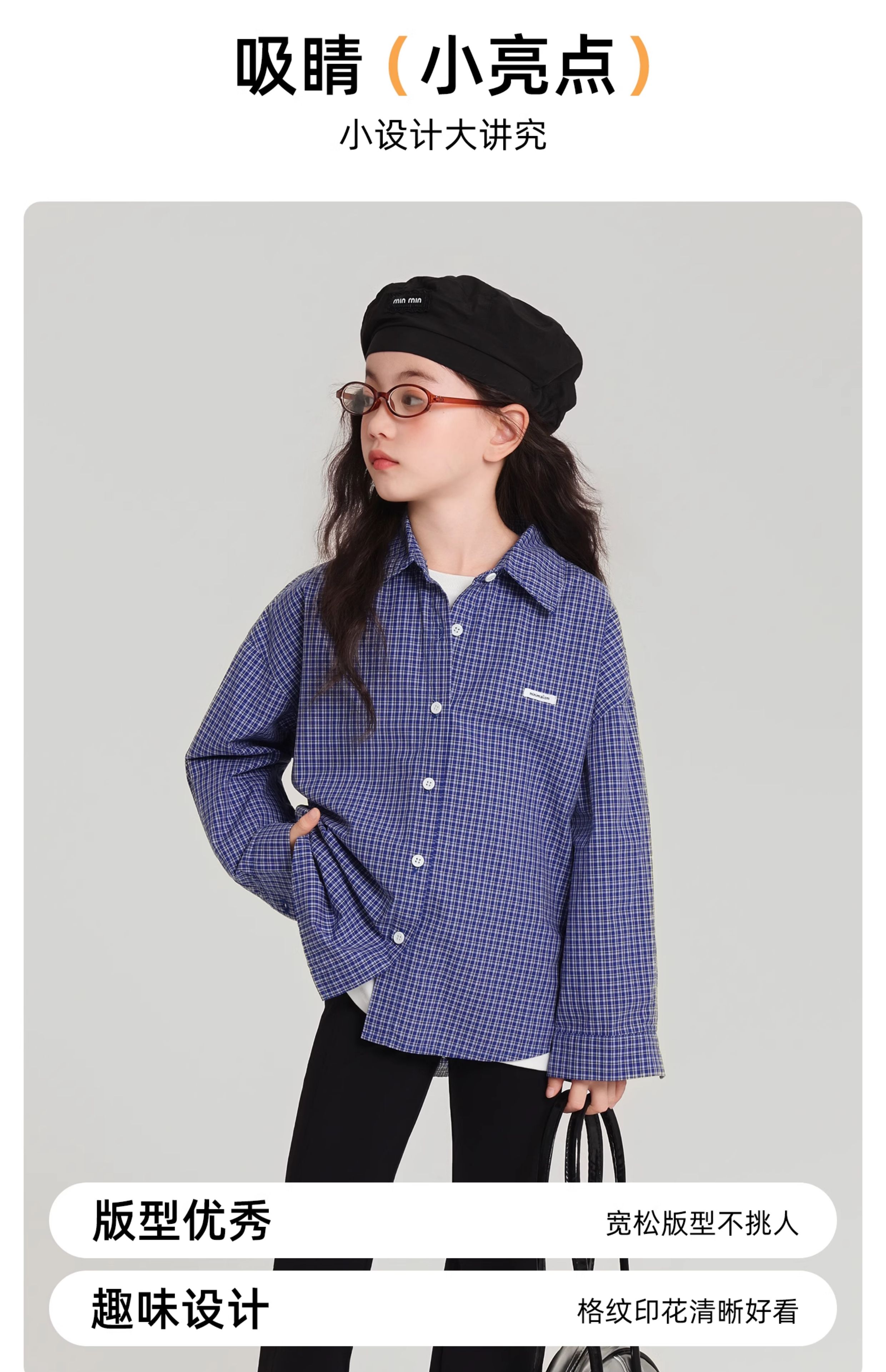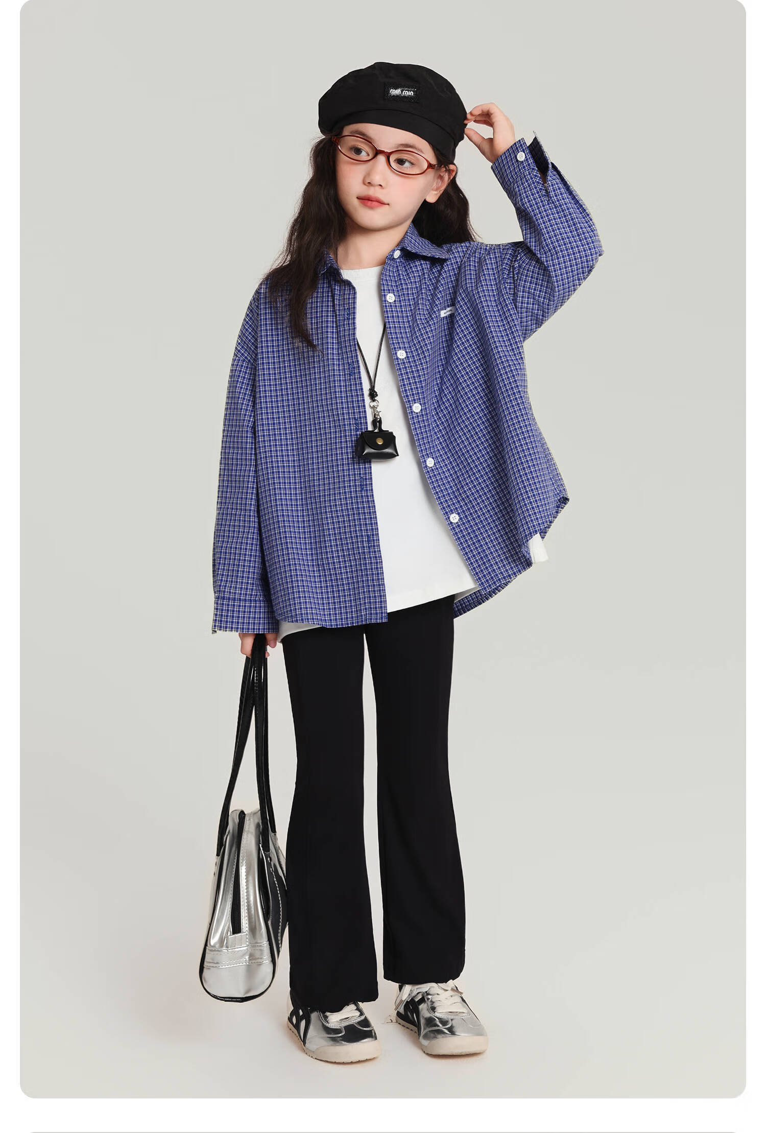 Pudding Haru 100% Cotton Girls Loose Plaid Shirt 2026 Spring and Autumn New Style Medium and Large Children Simple Fashionable Versatile Top Blue 170