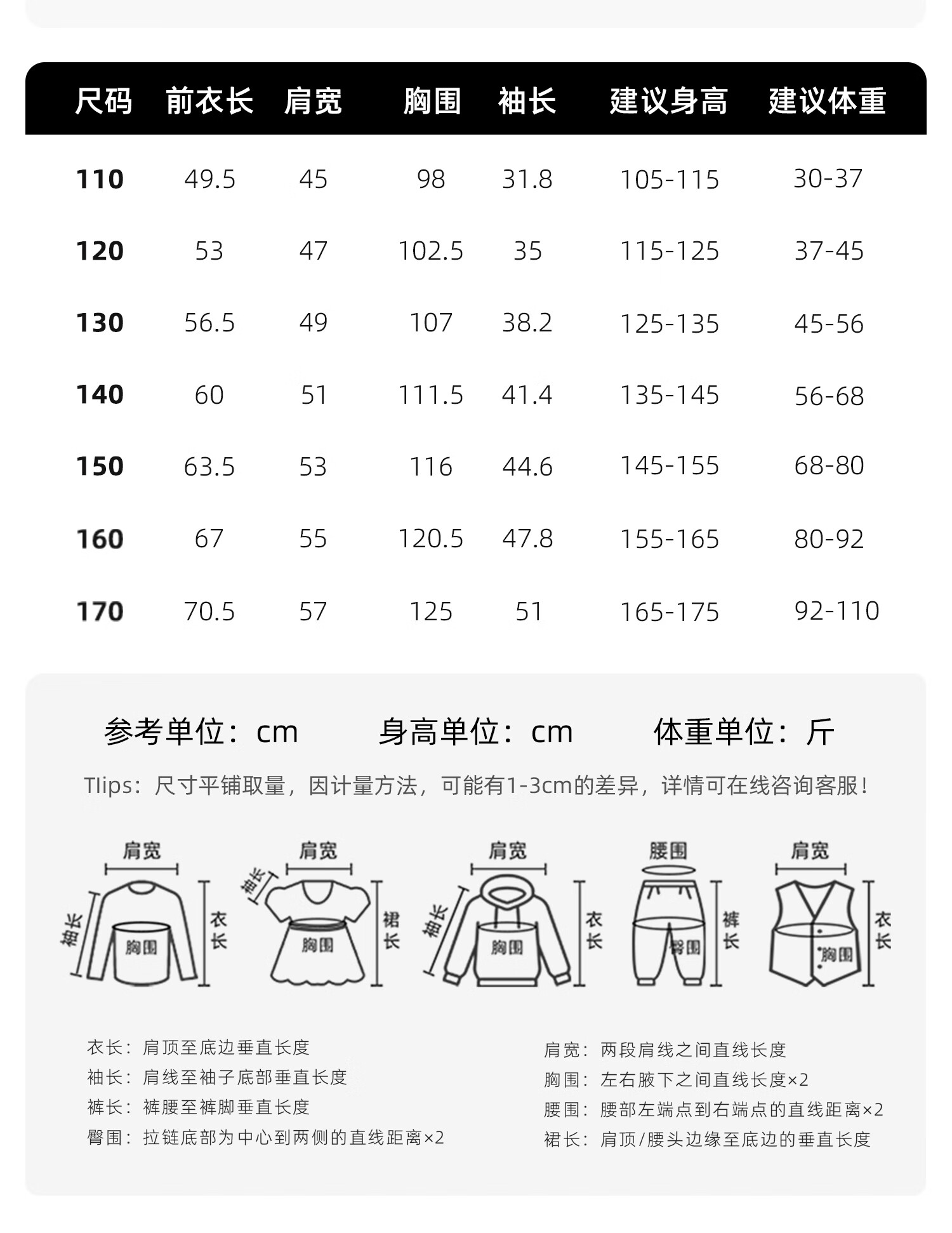 China (cm) 160-165/84-86 165-170 / 88-90 167-172 / 92-96 168-173 / 98-102 170-176 / 106-110
