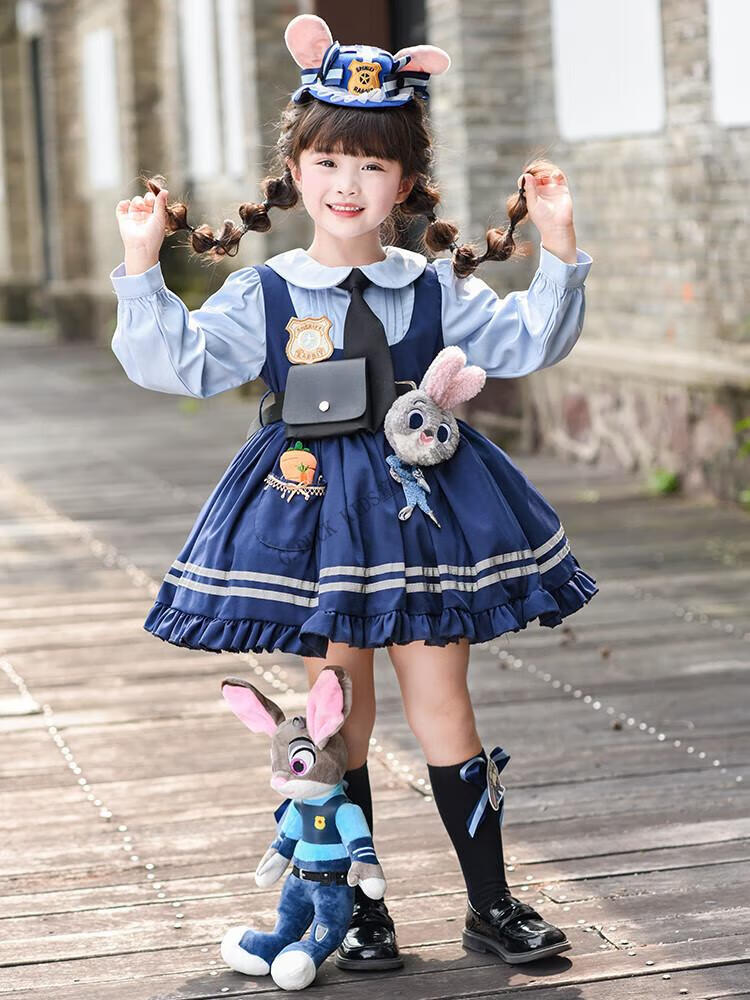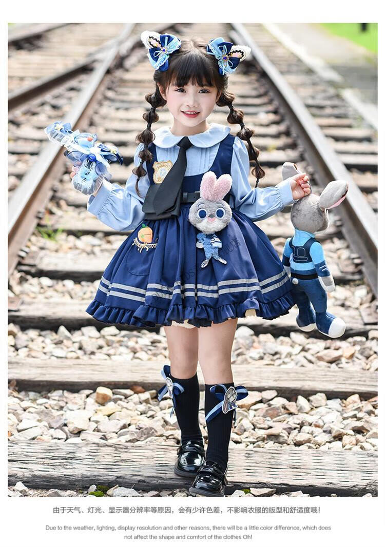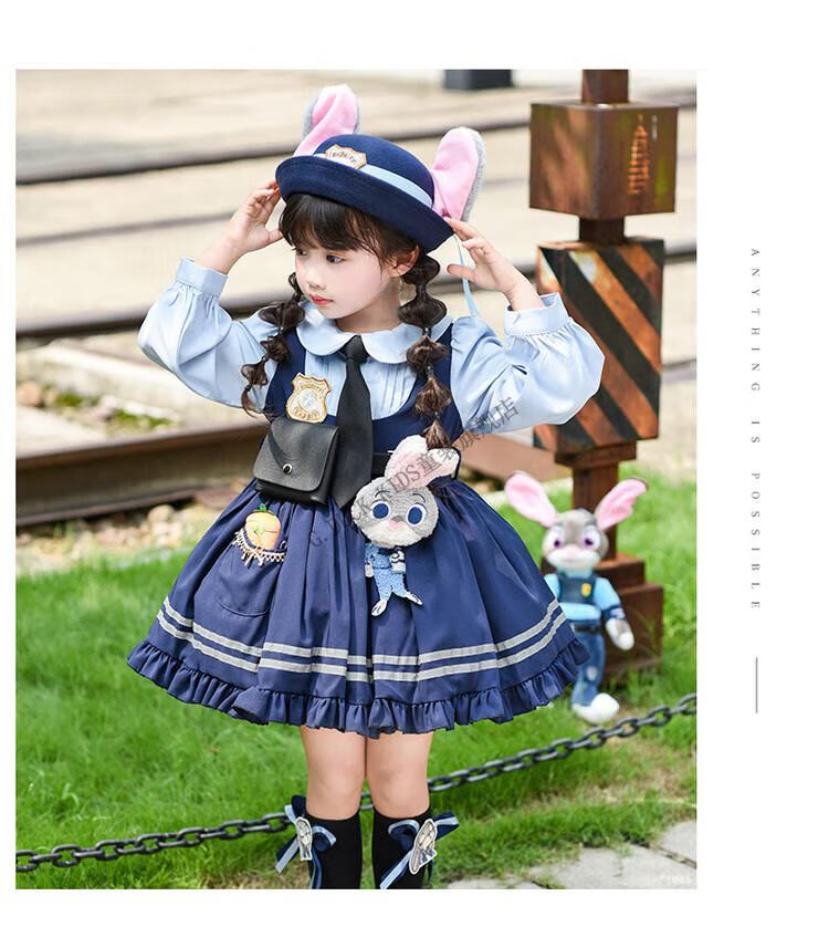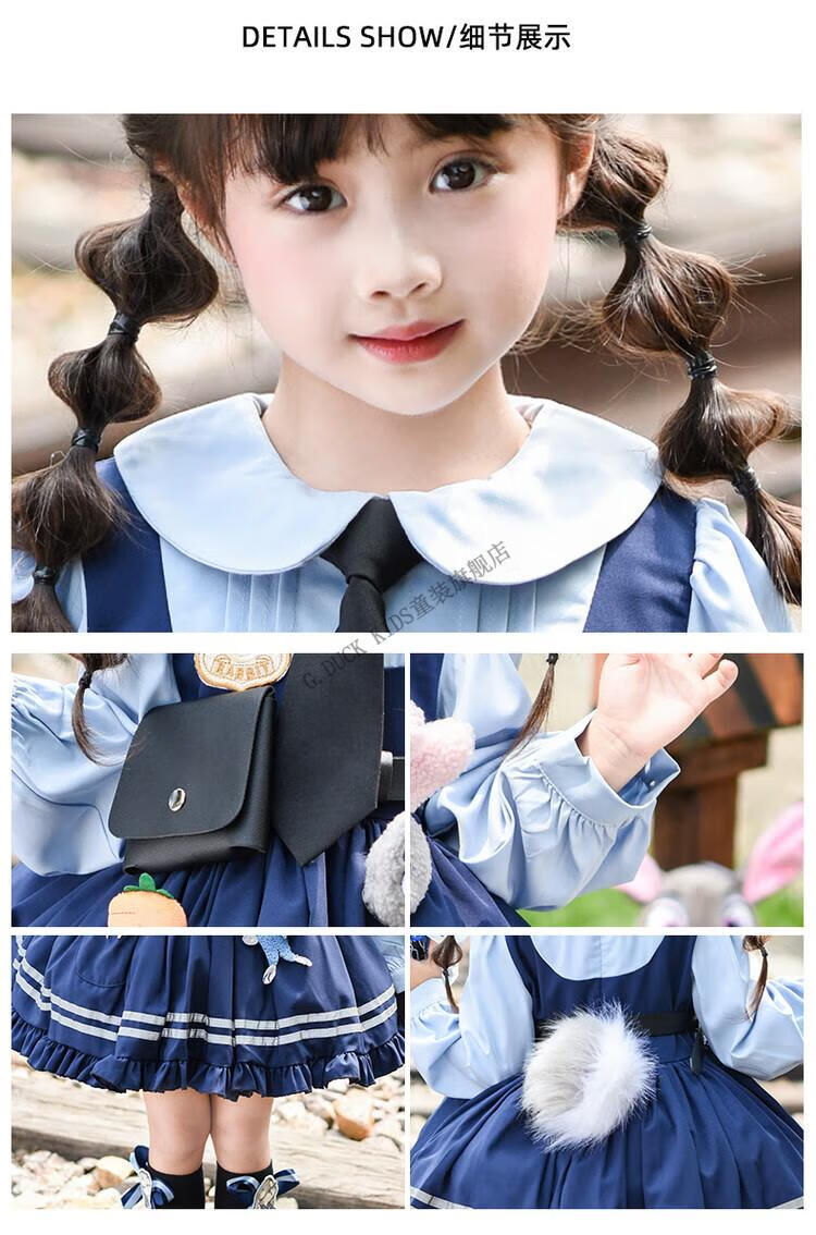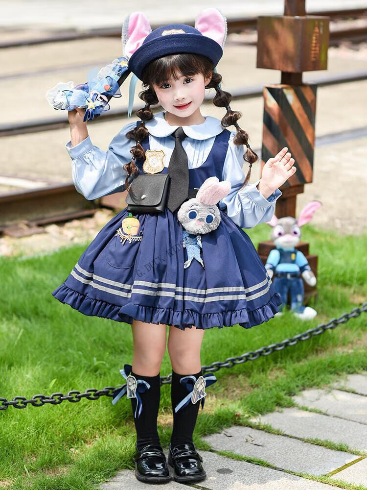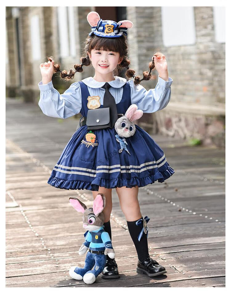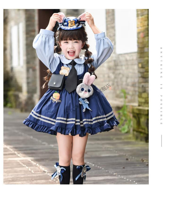 G.duck Judy Rabbit Officer Clothes Girls Dress Lolita Princess Skirt Children's Performance Clothes Girls Birthday Gift Judy Rabbit Officer Dress 100 Size 2~3 years old 90-100cm cm