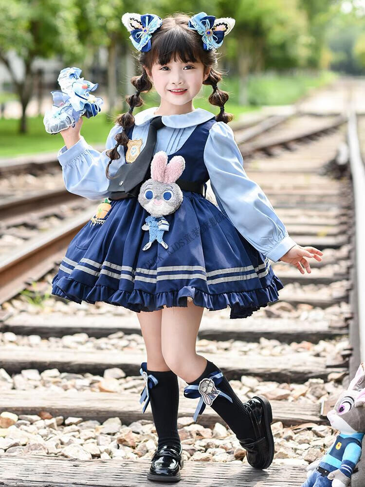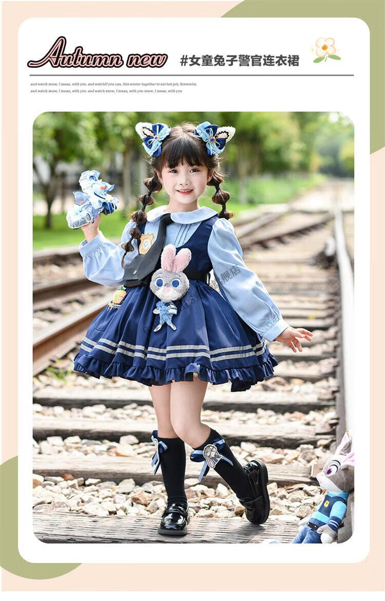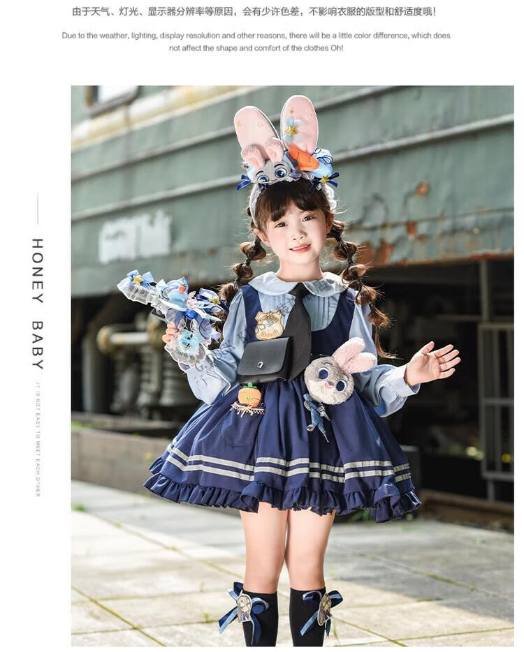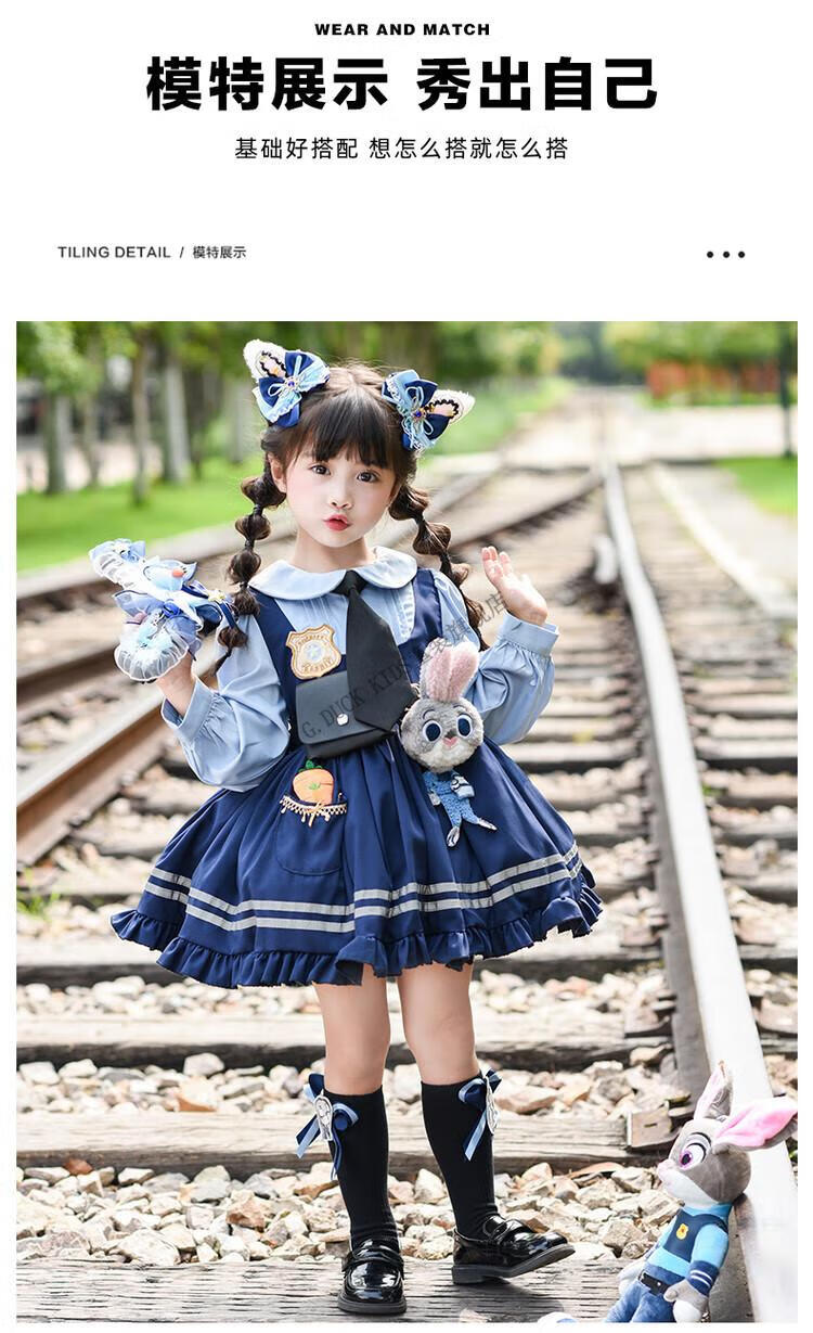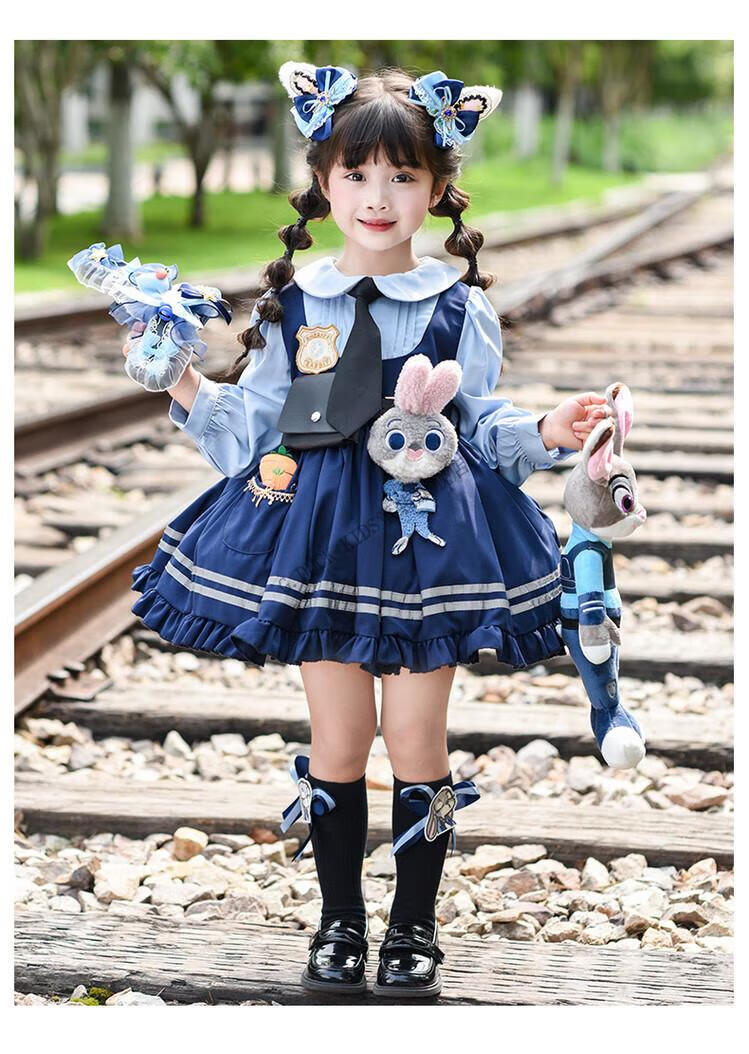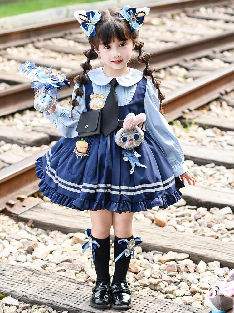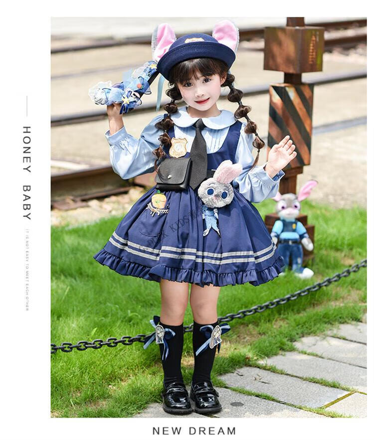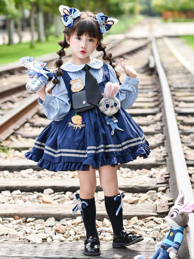 G.duck Judy Rabbit Officer Clothes Girls Dress Lolita Princess Skirt Children's Performance Clothes Girls Birthday Gift Judy Rabbit Officer Dress 100 Size 2~3 years old 90-100cm cm