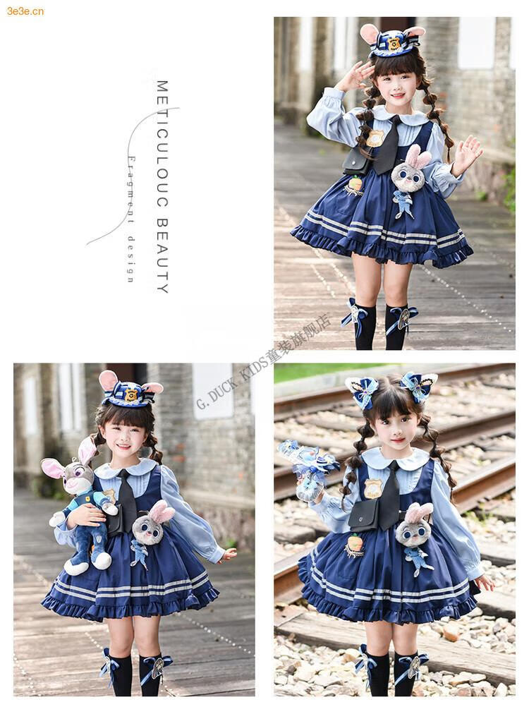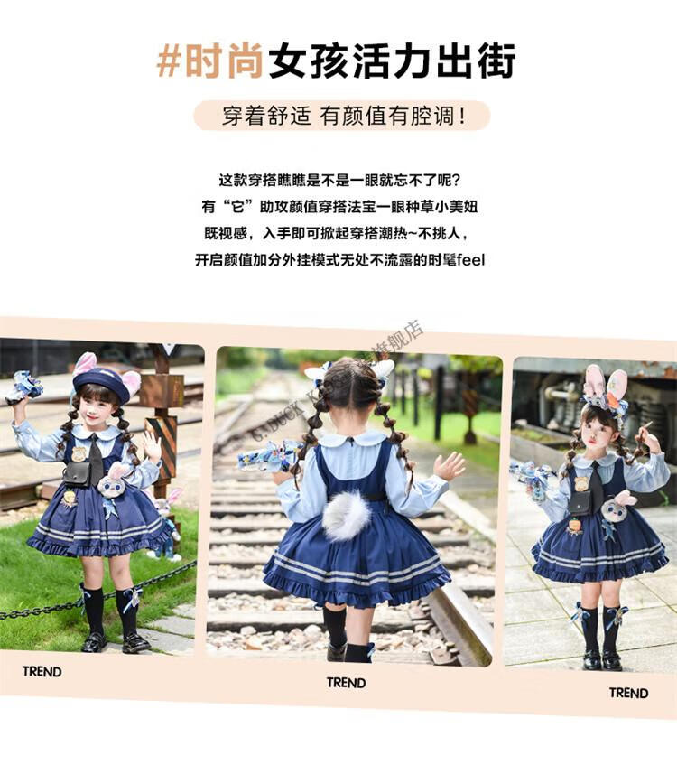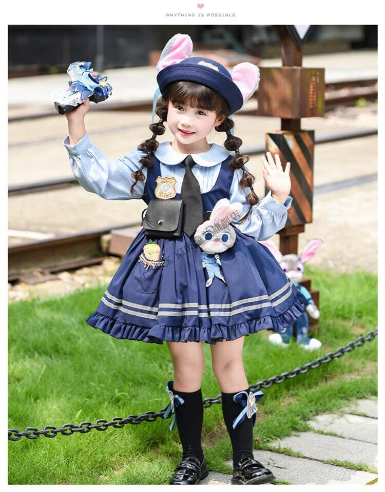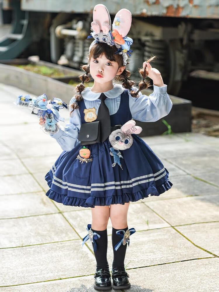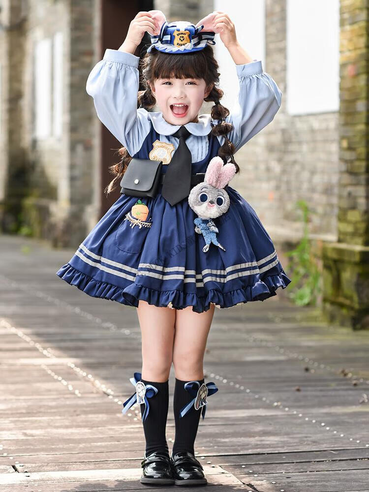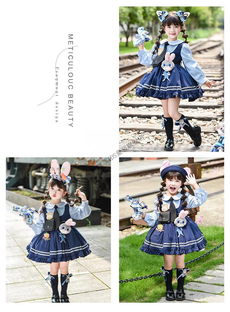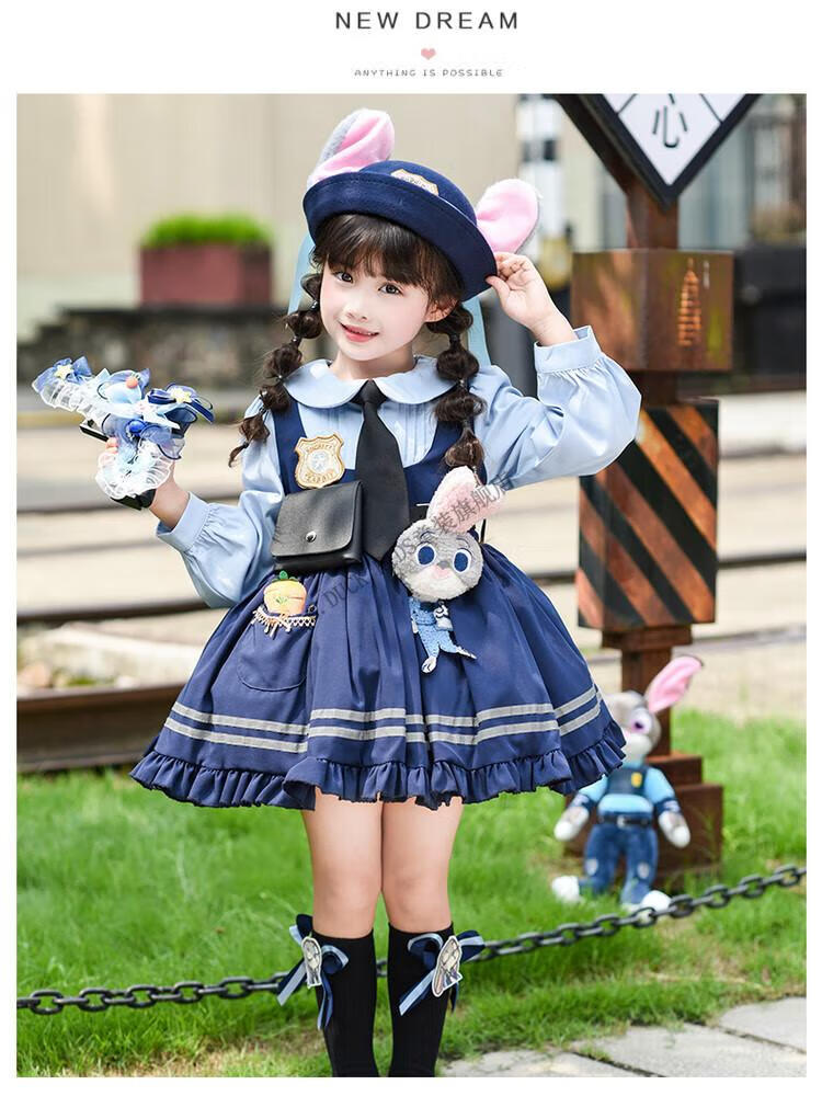 G.duck Judy Rabbit Officer Clothes Girls Dress Lolita Princess Skirt Children's Performance Clothes Girls Birthday Gift Judy Rabbit Officer Dress 100 Size 2~3 years old 90-100cm cm