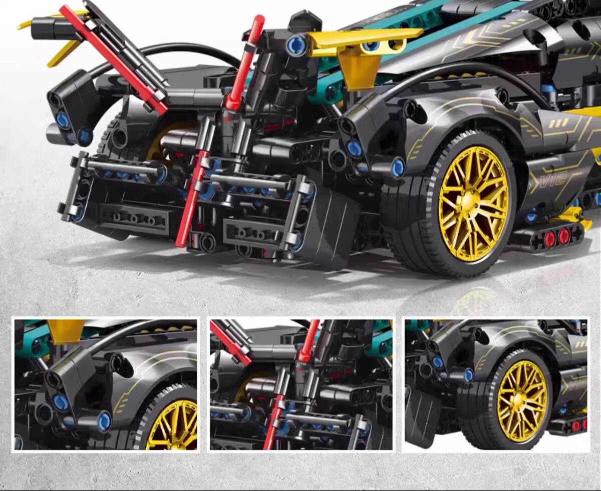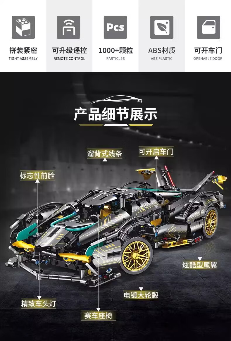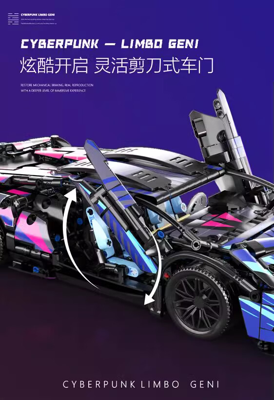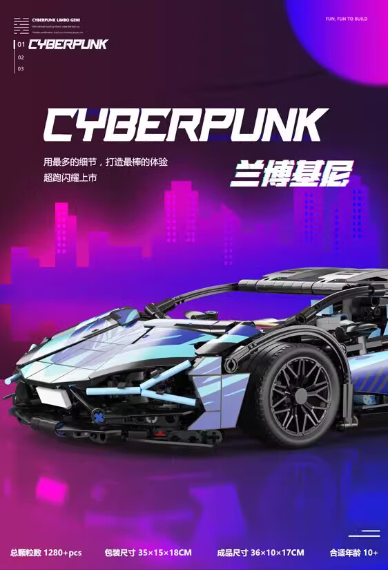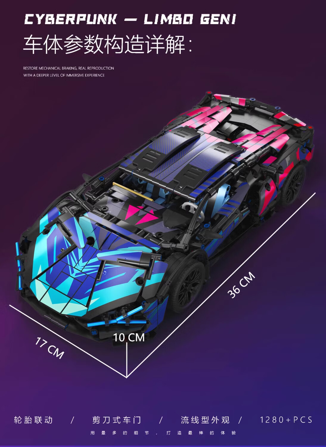 Compatible with LEGO Cyberpunk remote control building blocks sports car children's assembled racing model car toy boy gift Cyberpunk-Rambo-gift box static 1314 pieces
