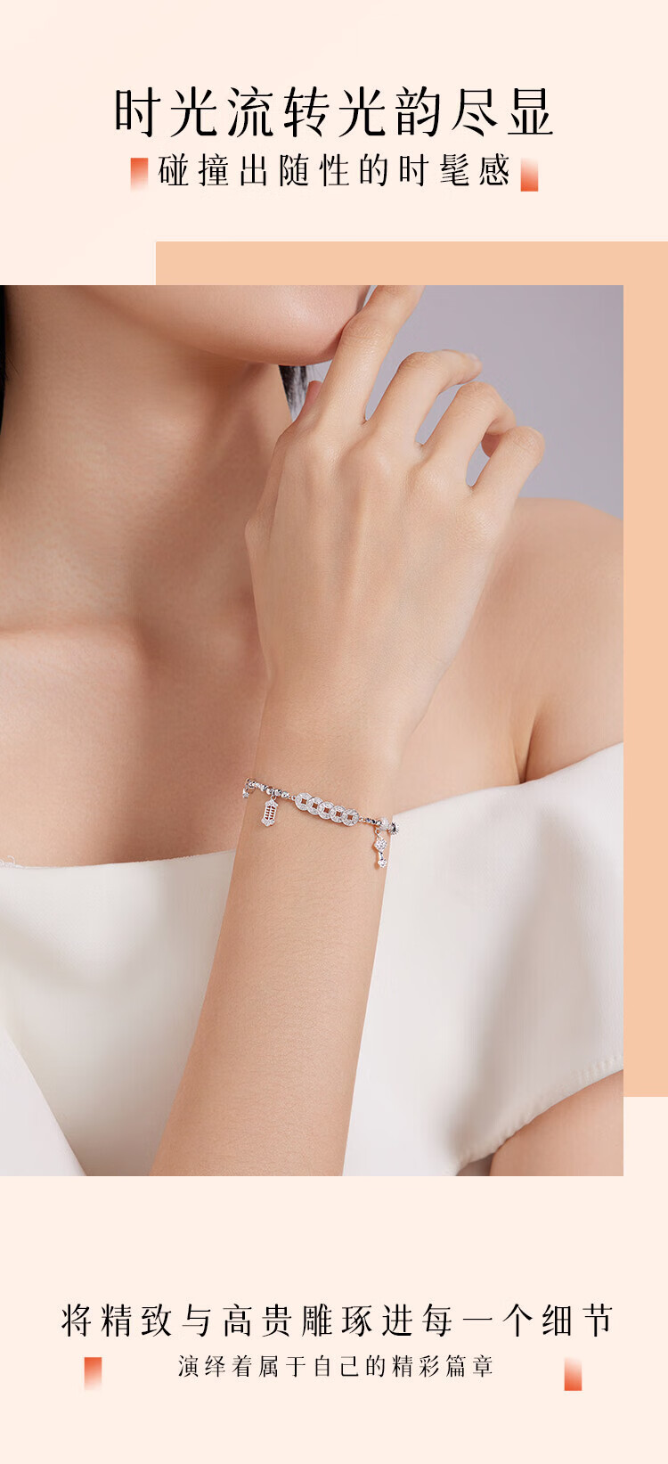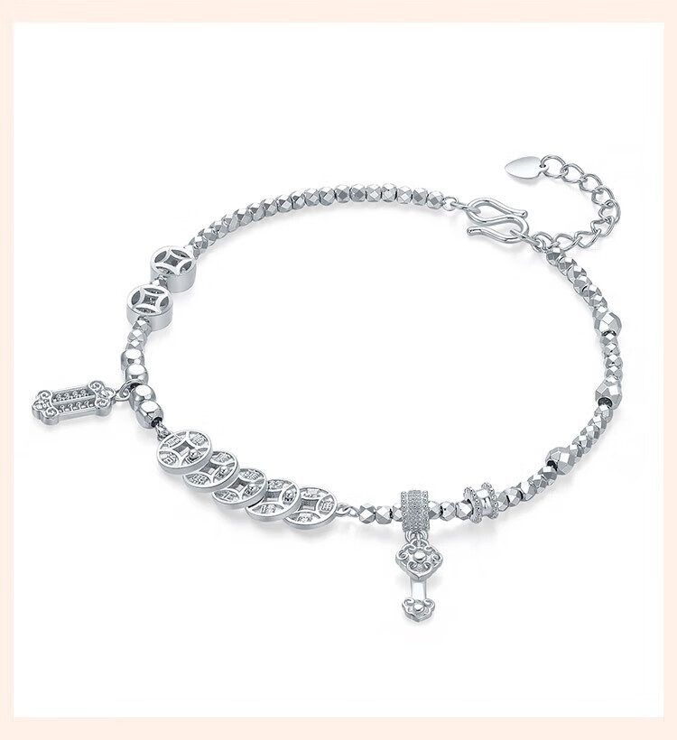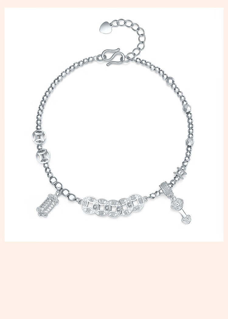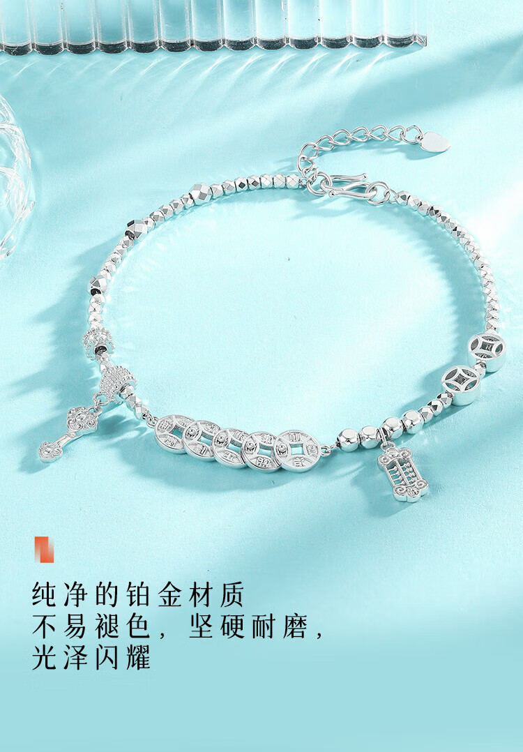 Liuguifu Jewelry Abacus Five Emperors Coins Pt950 Platinum Bracelet Ruyi Bracelet for Wife and Girlfriend Birthday and Holiday Gift 7.35g Can write greeting cards + engraving