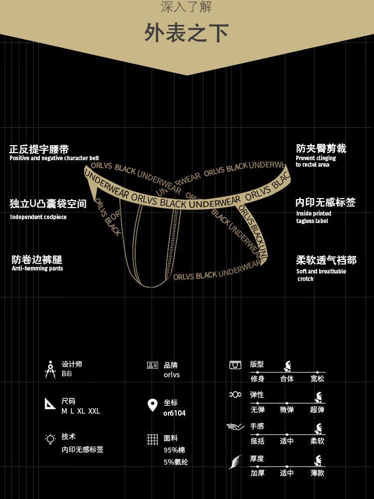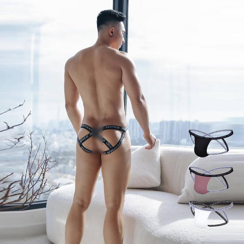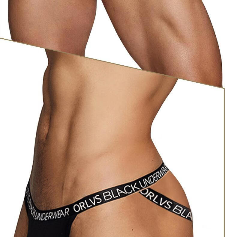 ORLVS men's thong back cross strap four thong pants sexy tight hip lifting t-pants personalized trendy underwear for men pink 2XL