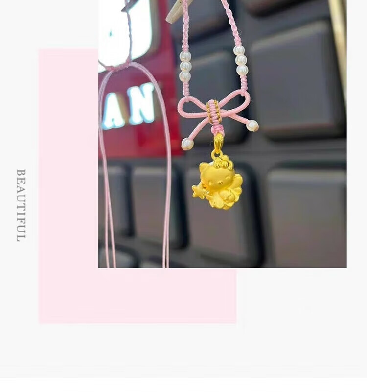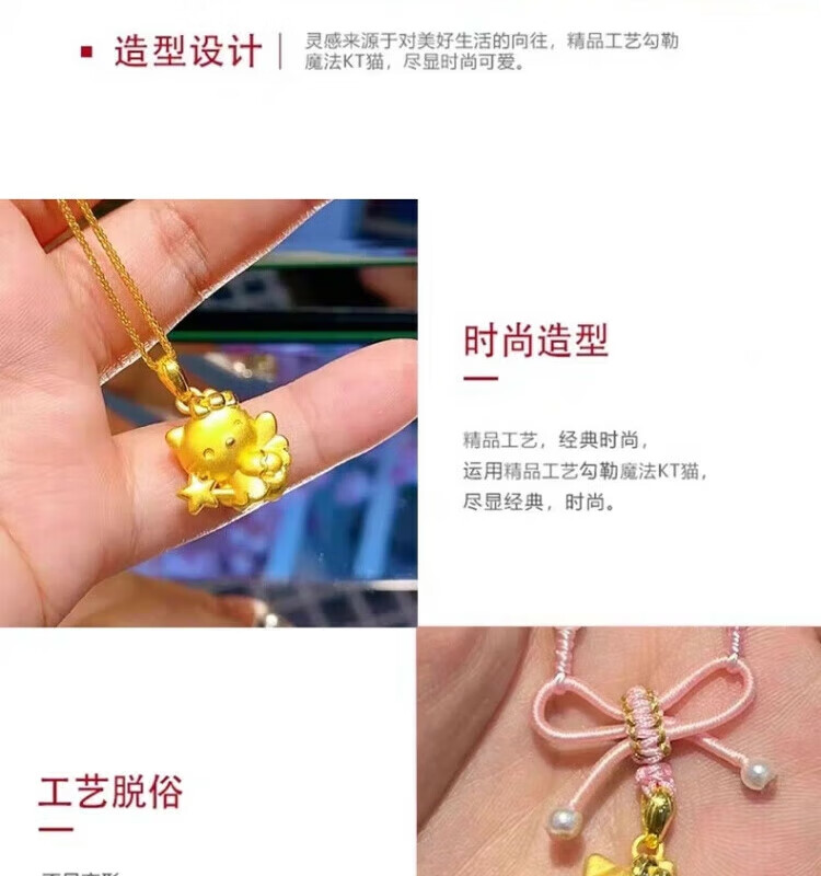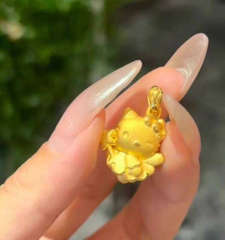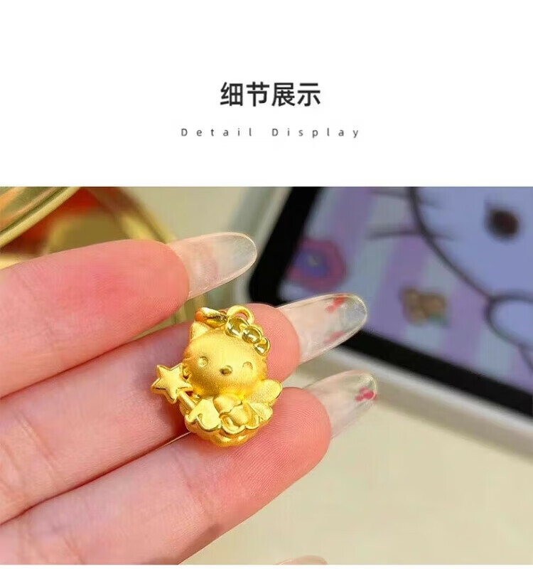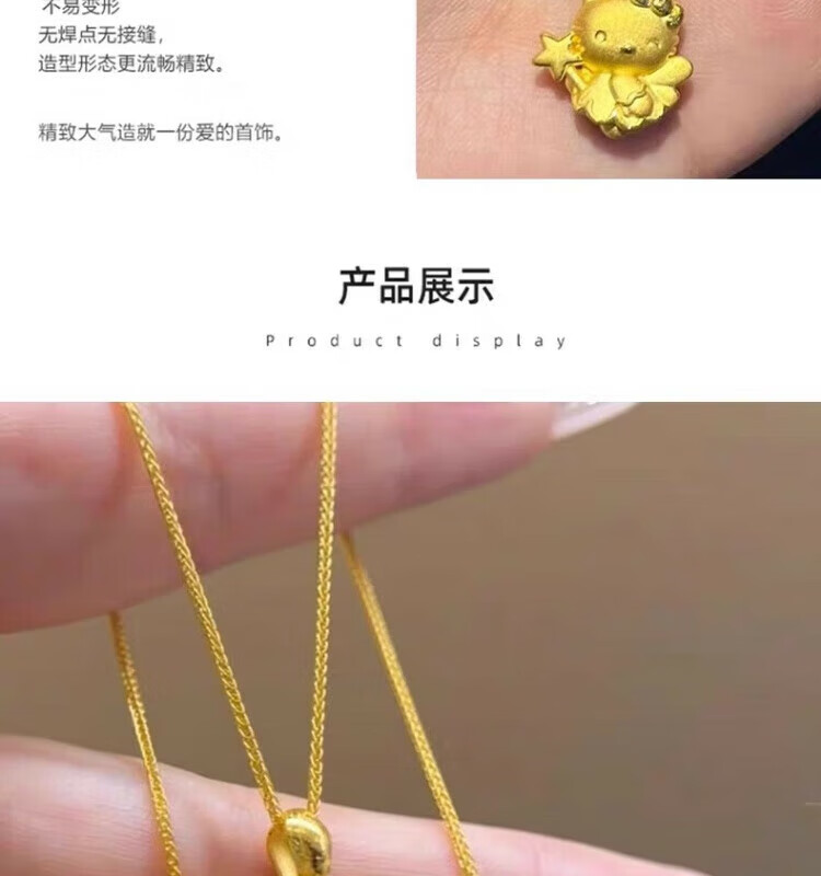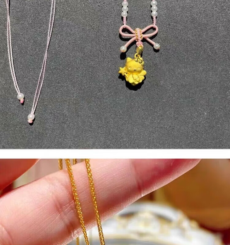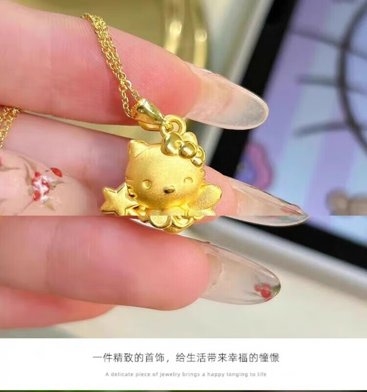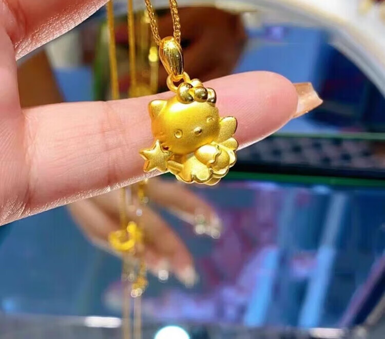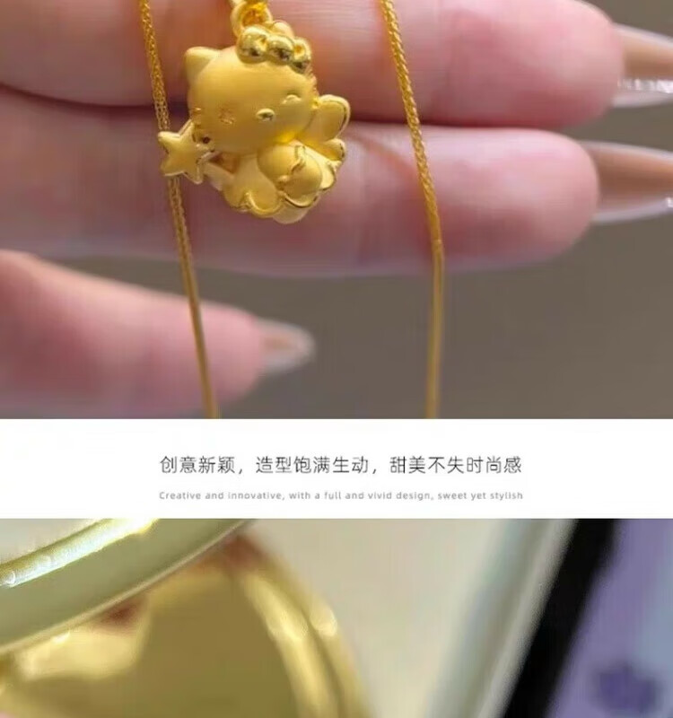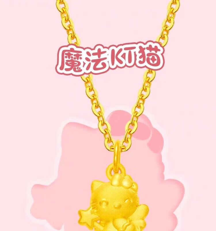 Gold Kitty cat pendant necklace for girls angel magic wand Cupid KT cat head gold-wrapped silver pendant birthday Cupid kt cat pendant with necklace