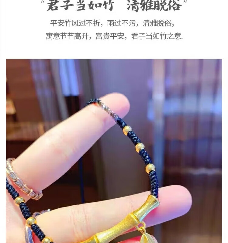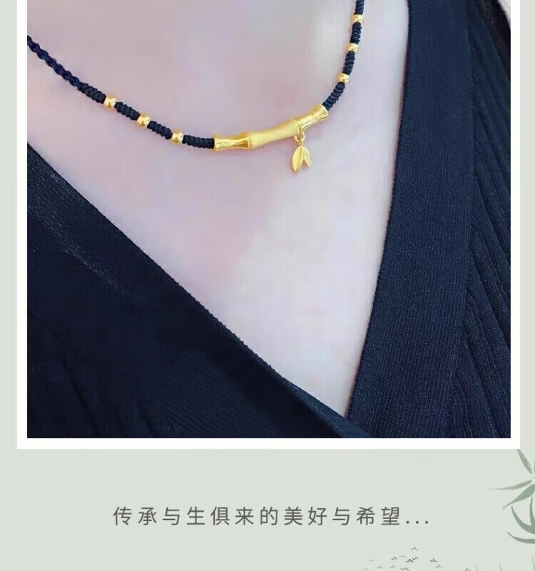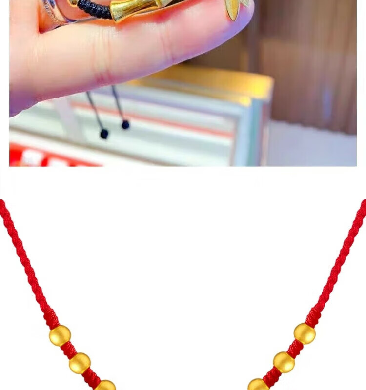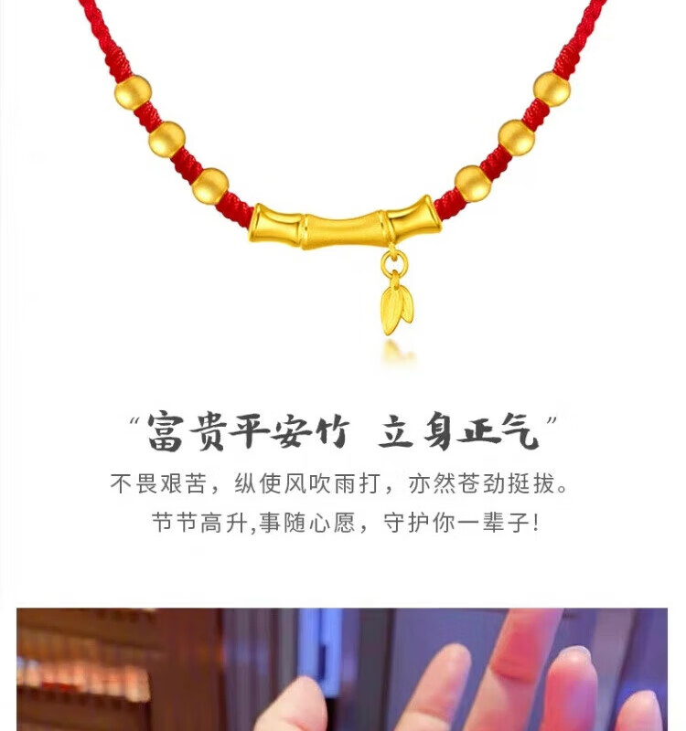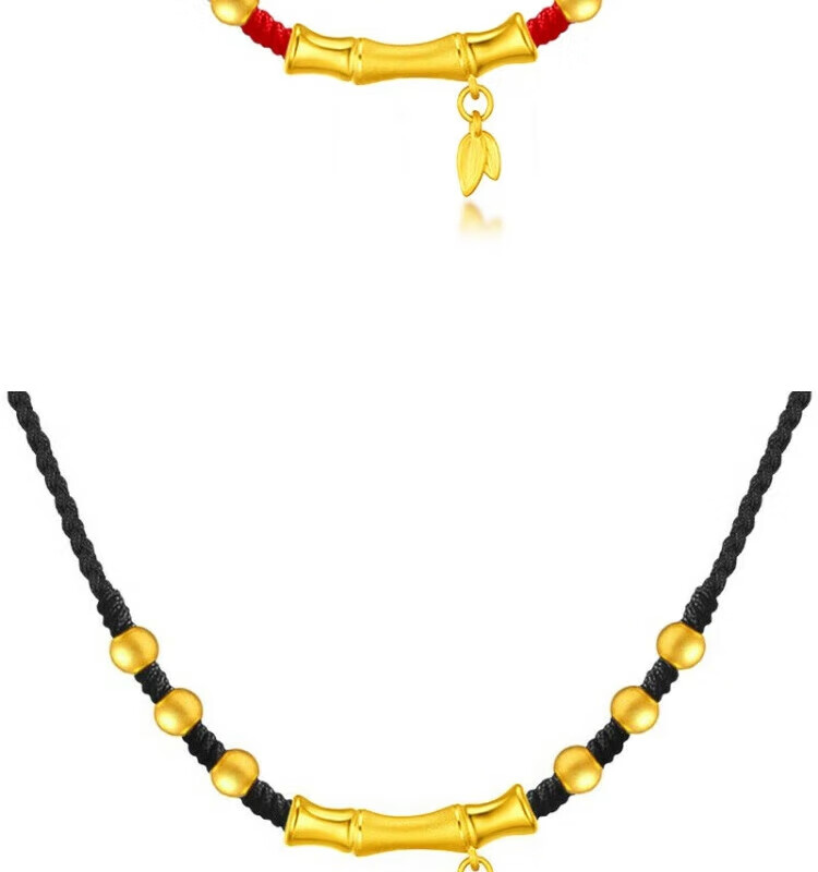 Gold Bamboo Bend Pipe Pendant Necklace Gold-clad Silver Men's and Women's Bamboo Leaf Pendant Transfer Beads Red Rope Bamboo Pendant + 6 Gold Beads + Red Rope Necklace