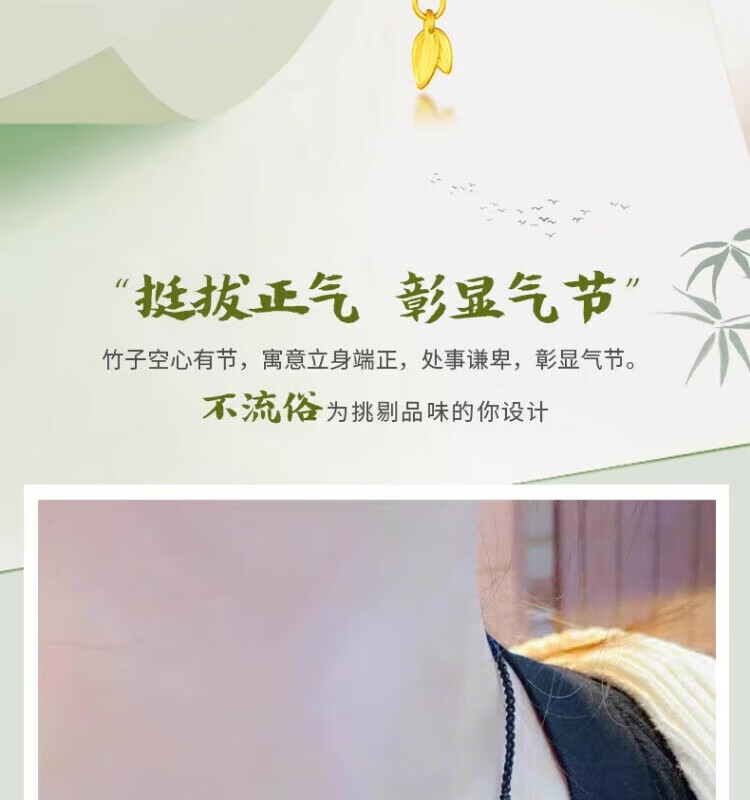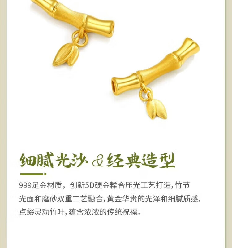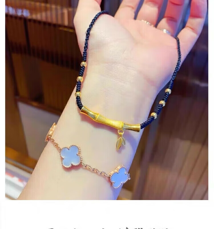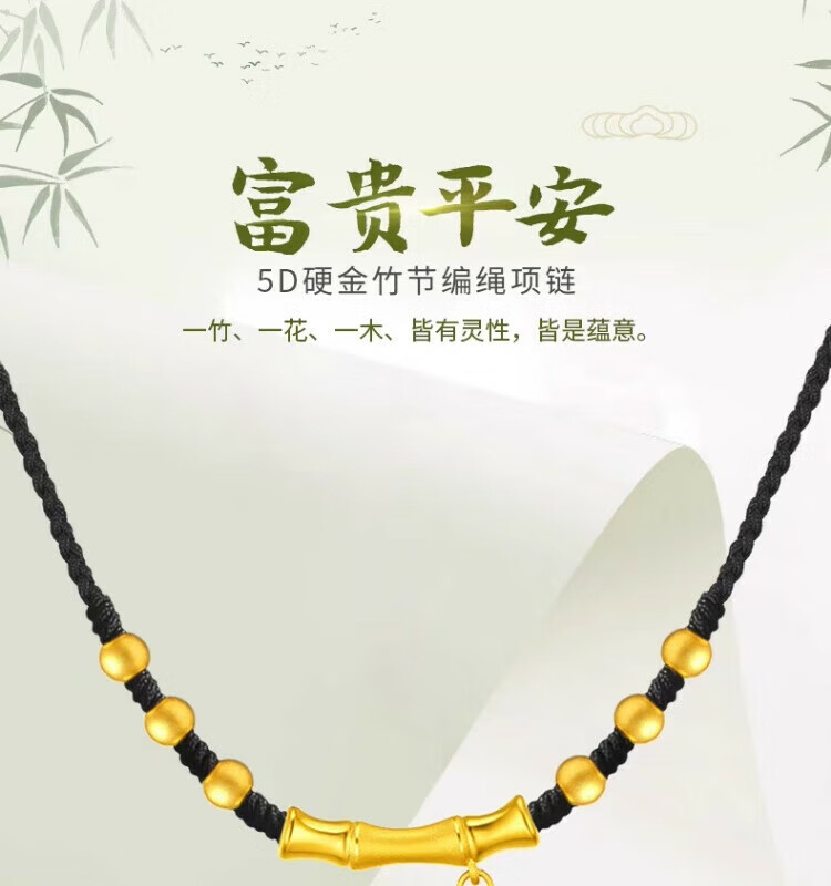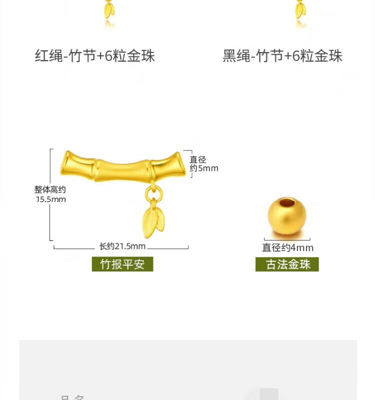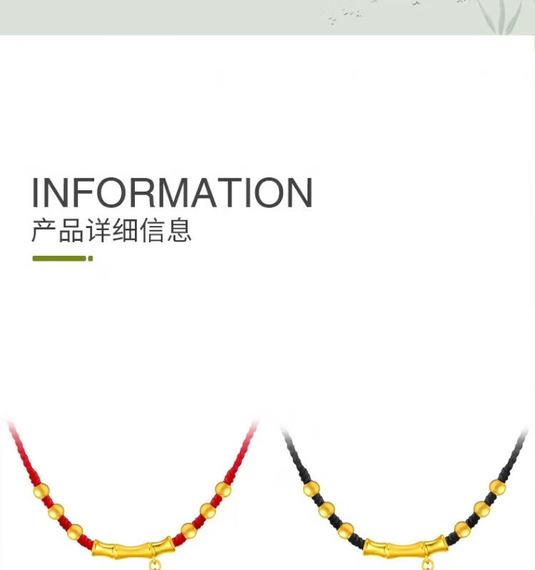 Gold Bamboo Bend Pipe Pendant Necklace Gold-clad Silver Men's and Women's Bamboo Leaf Pendant Transfer Beads Red Rope Bamboo Pendant + 6 Gold Beads + Red Rope Necklace