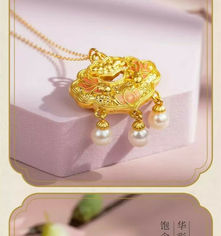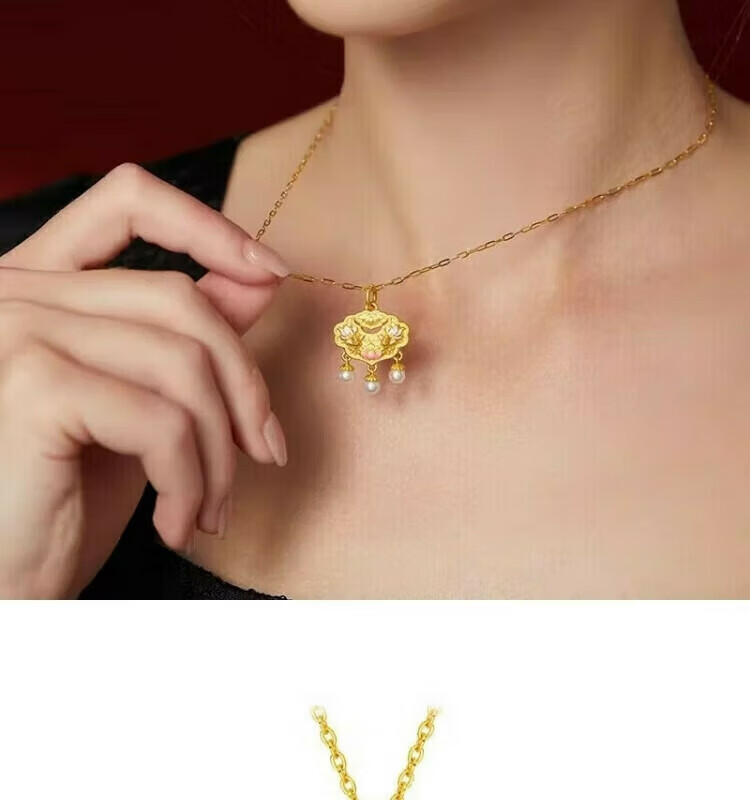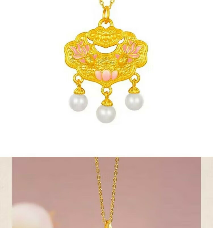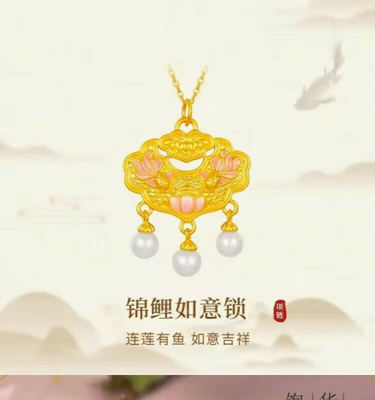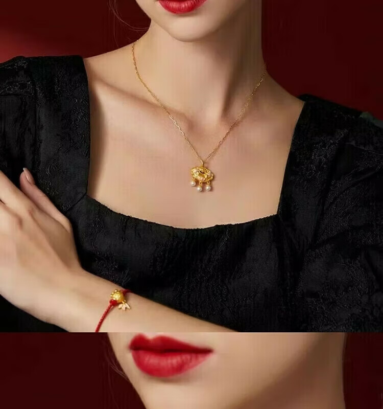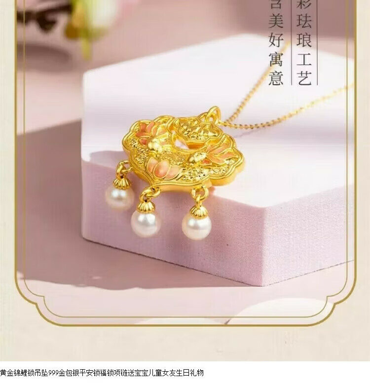 Gold koi lock pendant for women, safety lock gold-wrapped silver blessing lock necklace for boyfriend and girlfriend, baby's first birthday gift, koi lock pendant with necklace