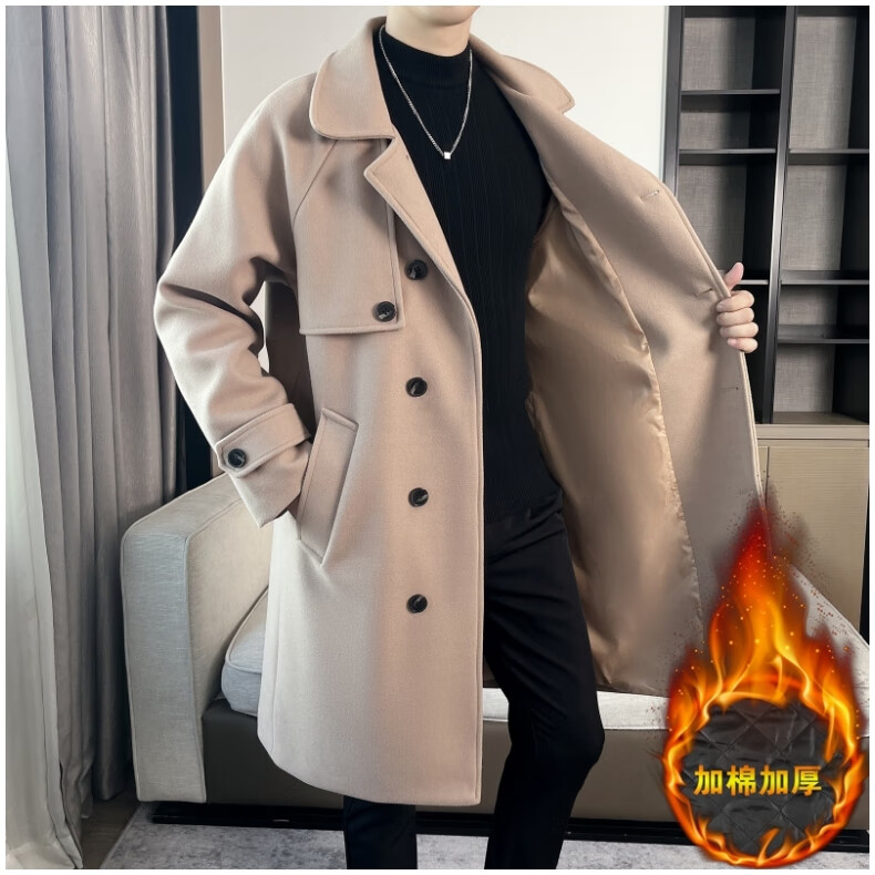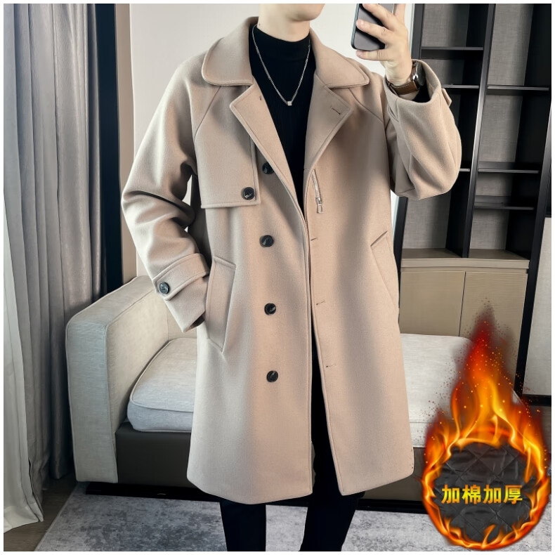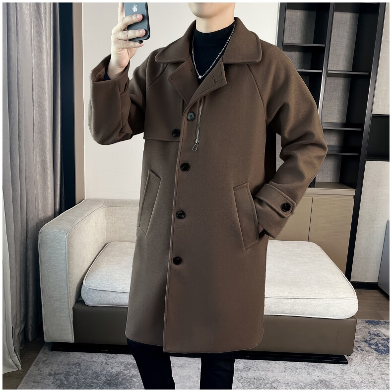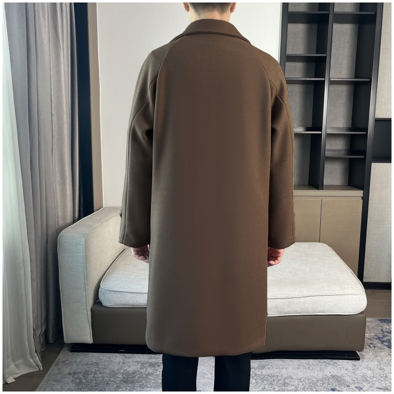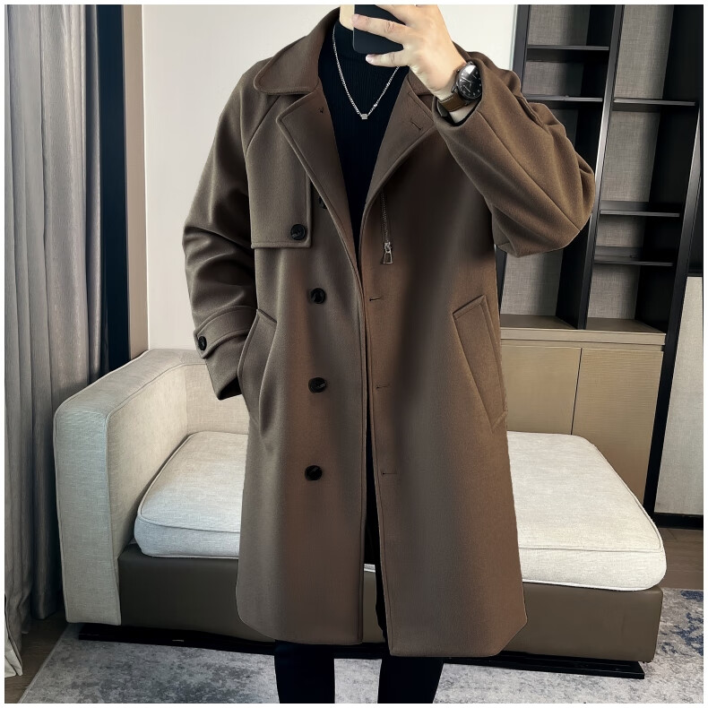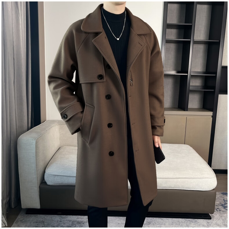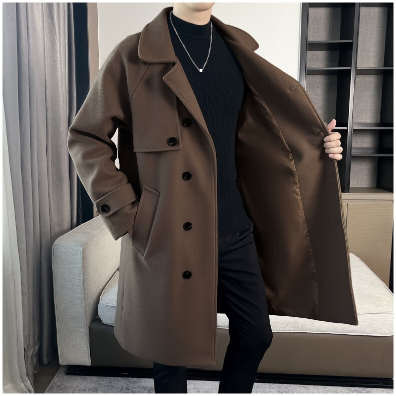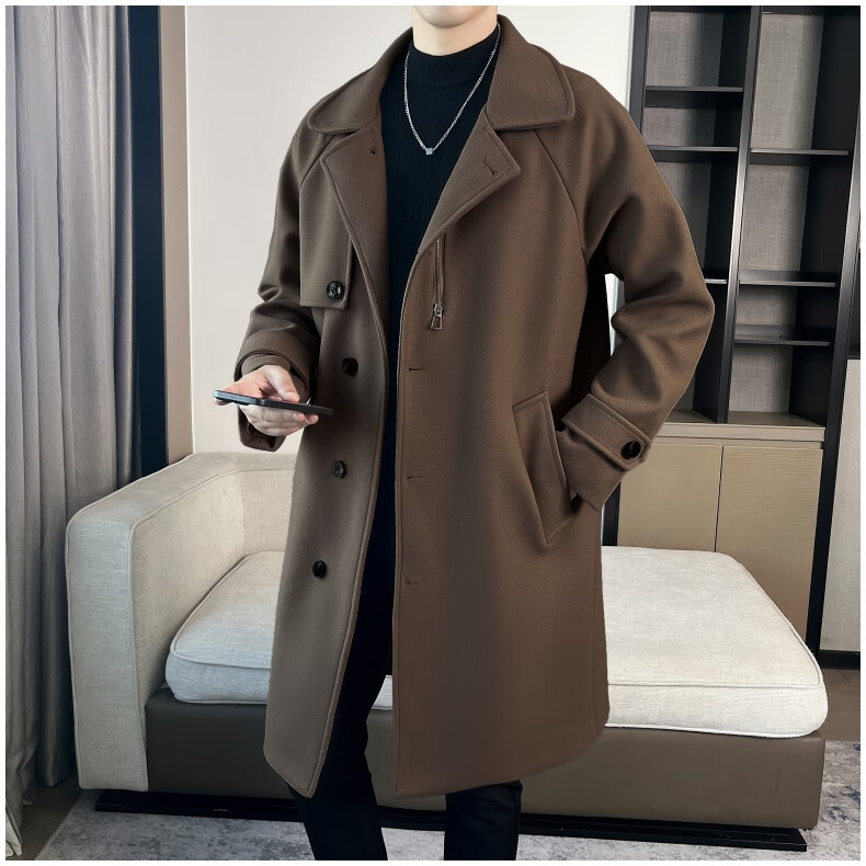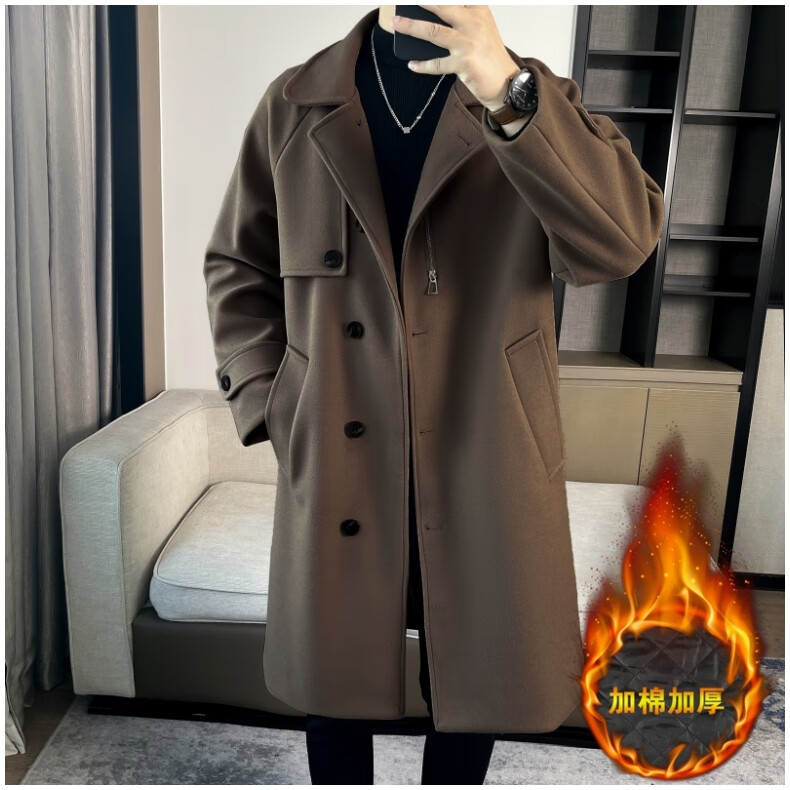 ROMON high-end woolen coat men's coat autumn and winter woolen jacket casual high-end British style mid-length windbreaker cotton brown thickened 3XL
