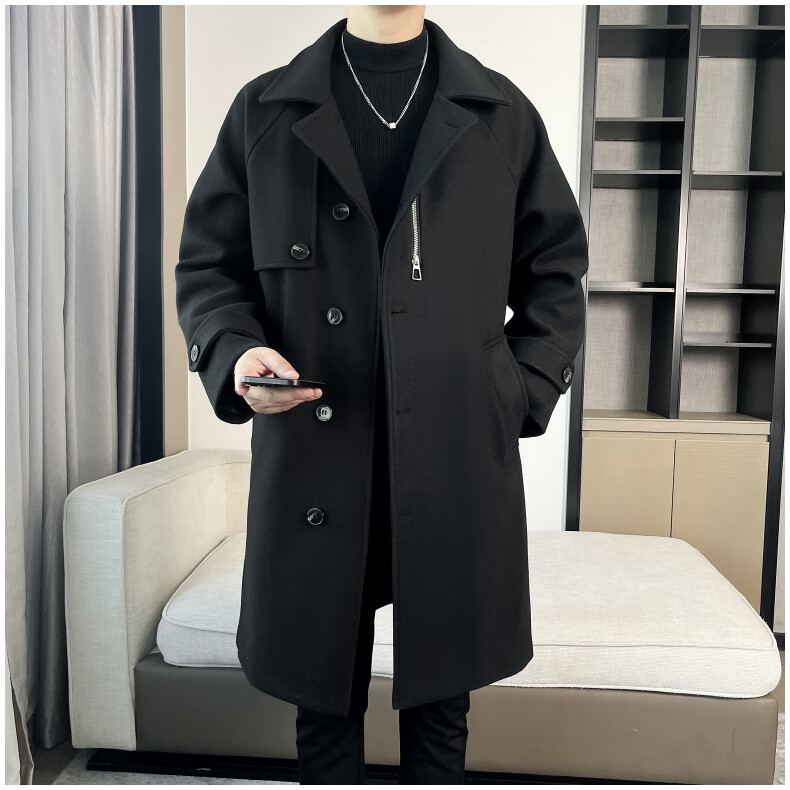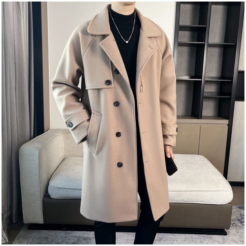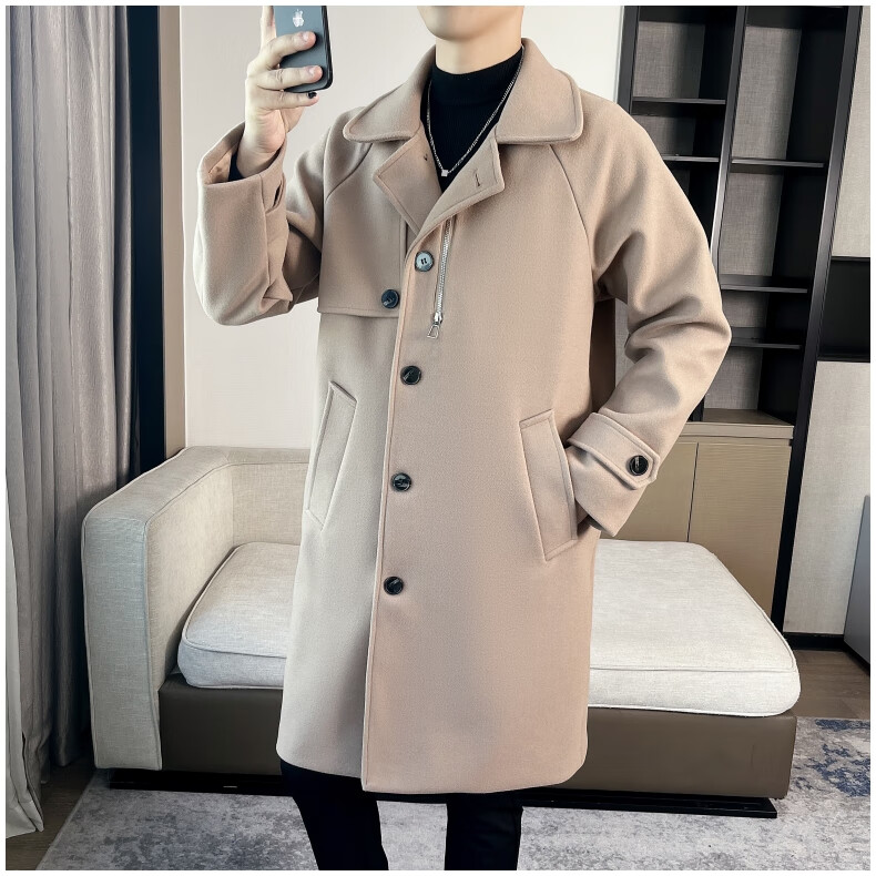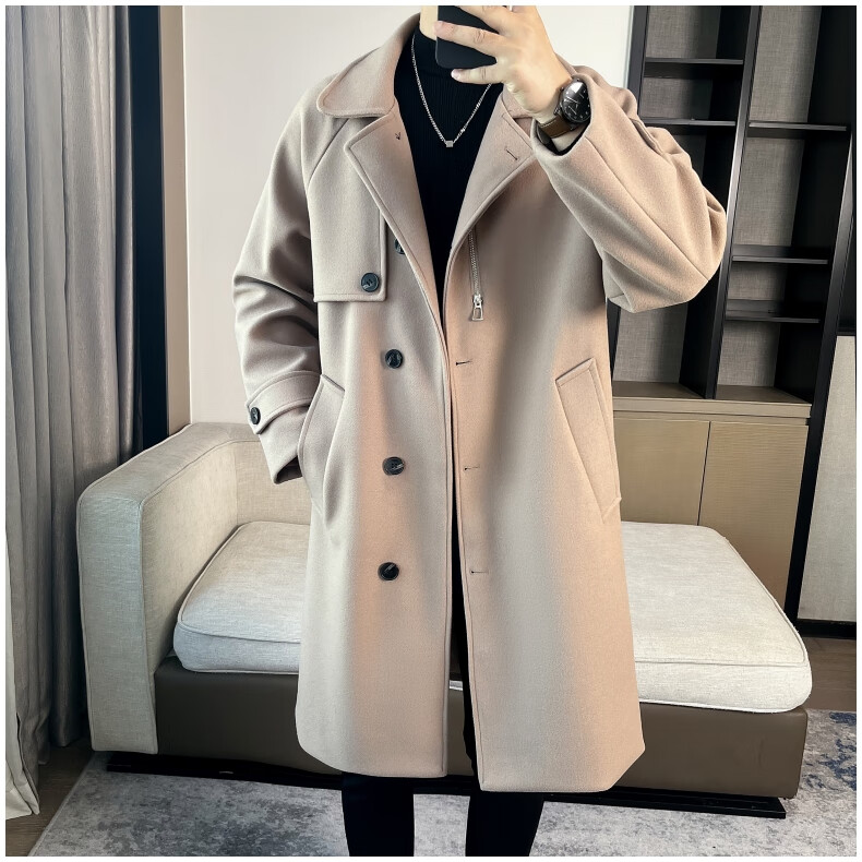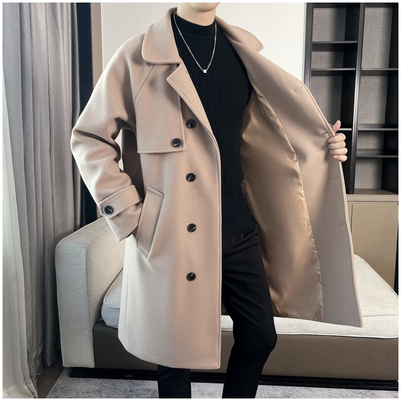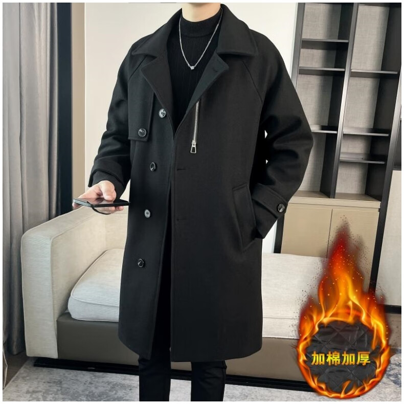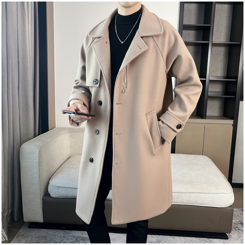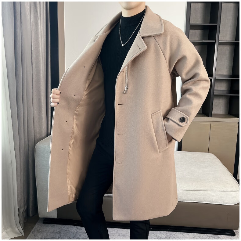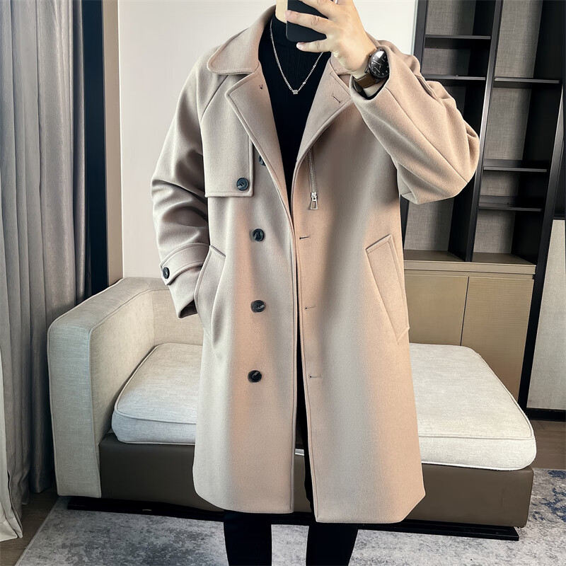 ROMON high-end woolen coat men's coat autumn and winter woolen jacket casual high-end British style mid-length windbreaker cotton brown thickened 3XL