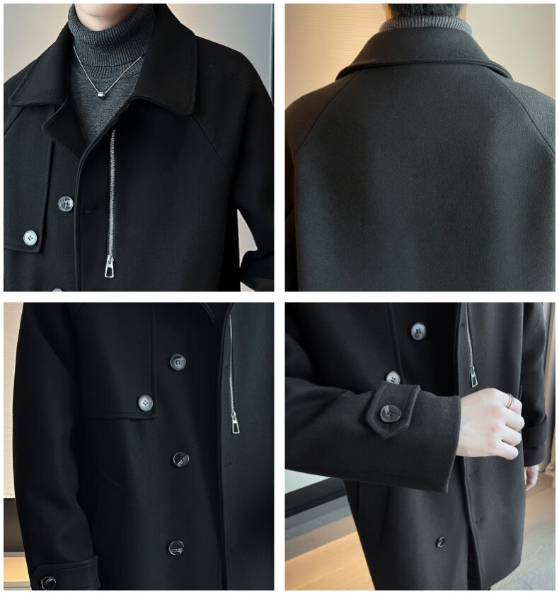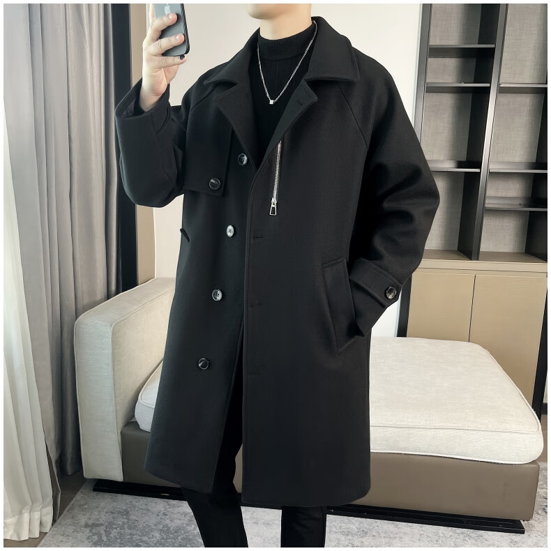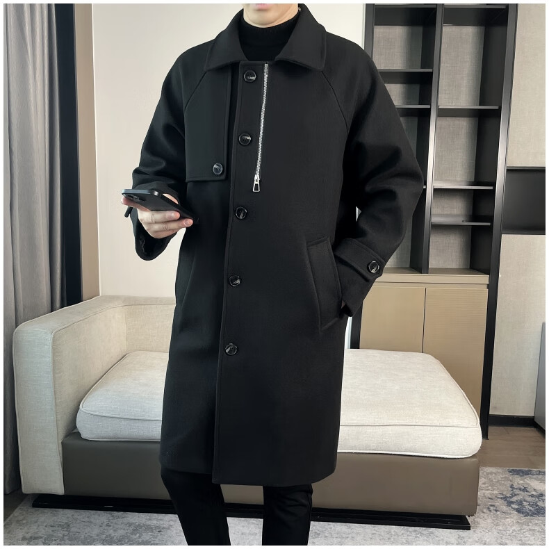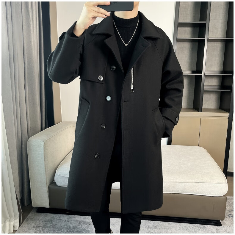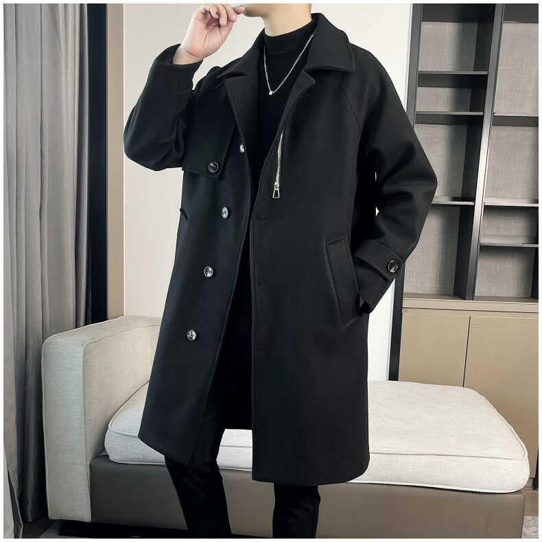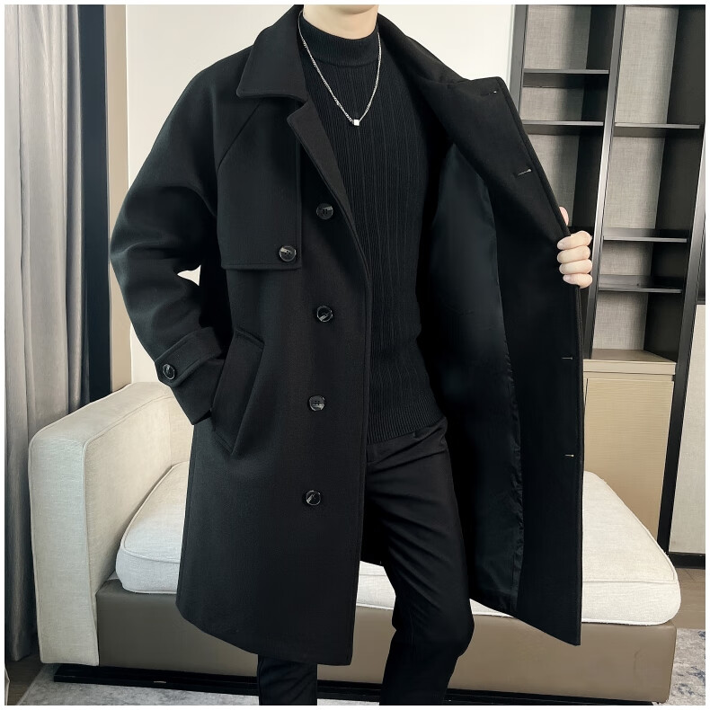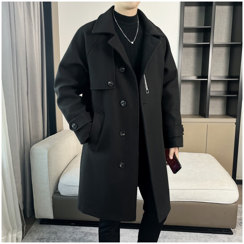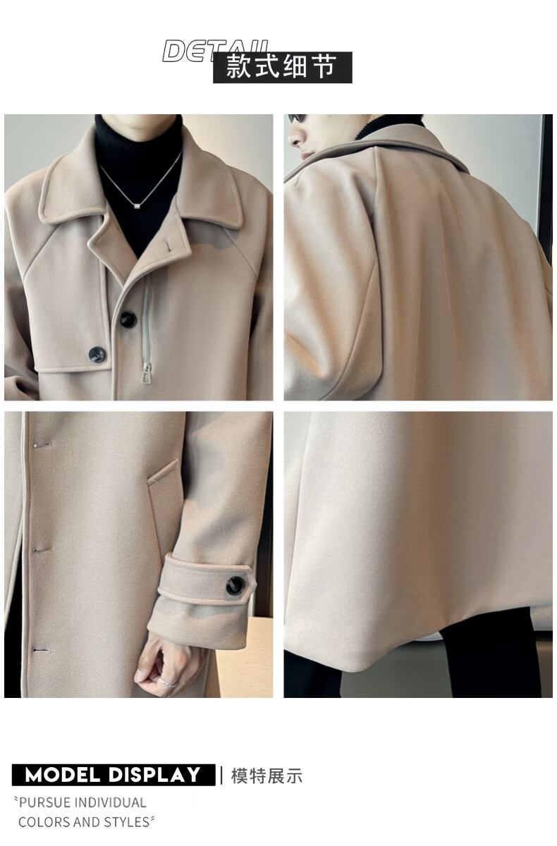 ROMON high-end woolen coat men's coat autumn and winter woolen jacket casual high-end British style mid-length windbreaker cotton brown thickened 3XL