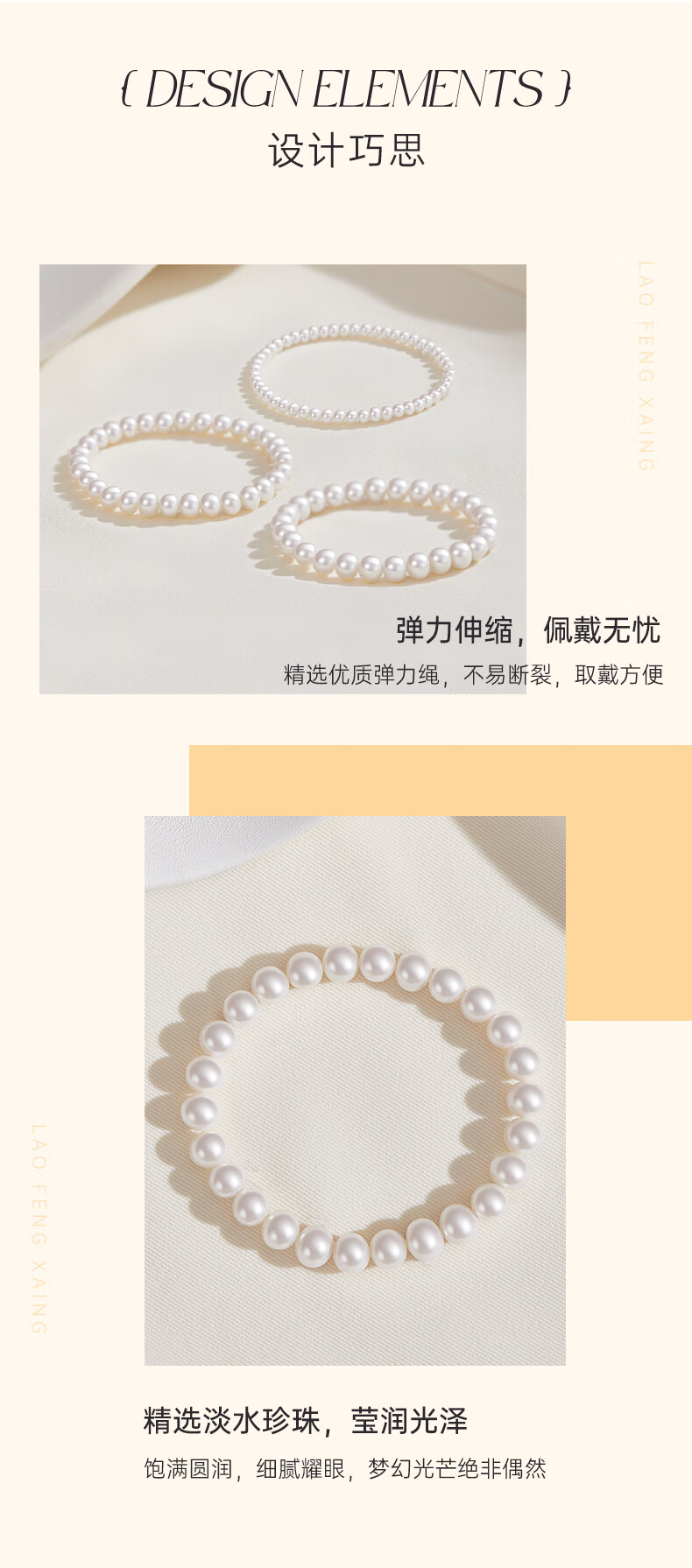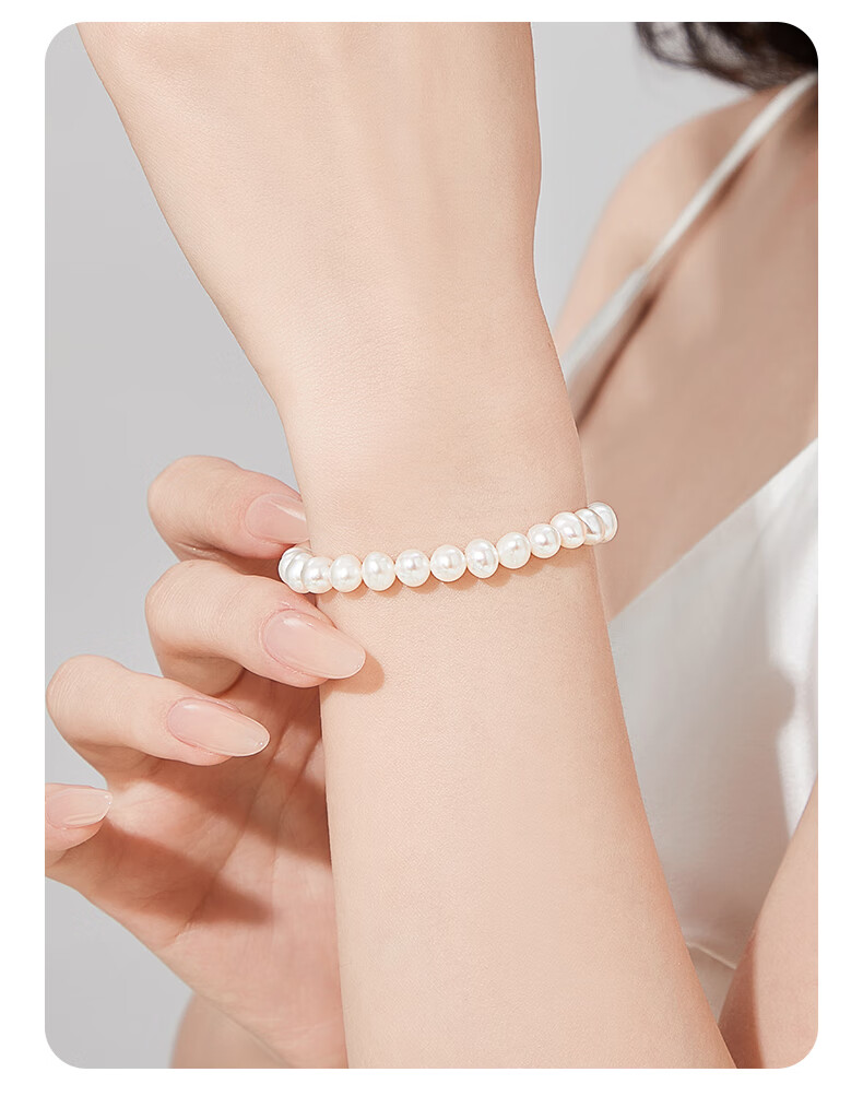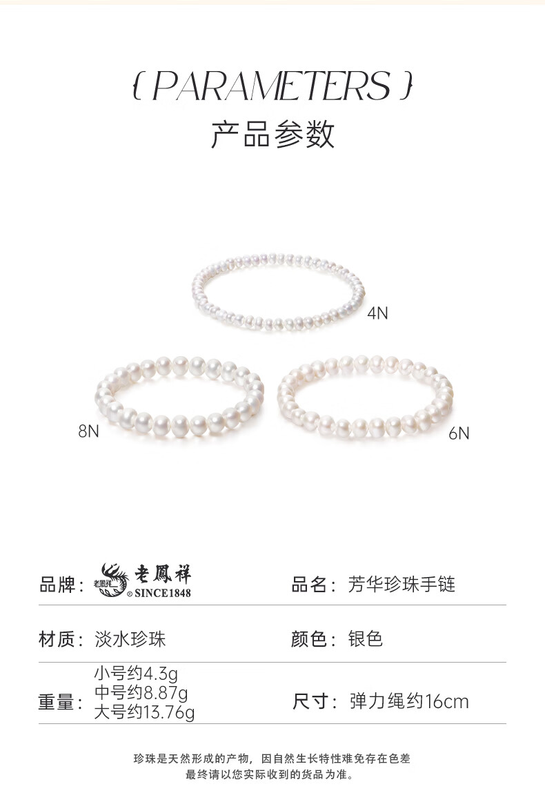 Lao Fengxiang Pearl Bracelet Girls Bracelet Plain String Young Style Jewelry Mid-Autumn Festival Mom Birthday Gift Girlfriend Wife Large Size 8N Youth Pearl Bracelet