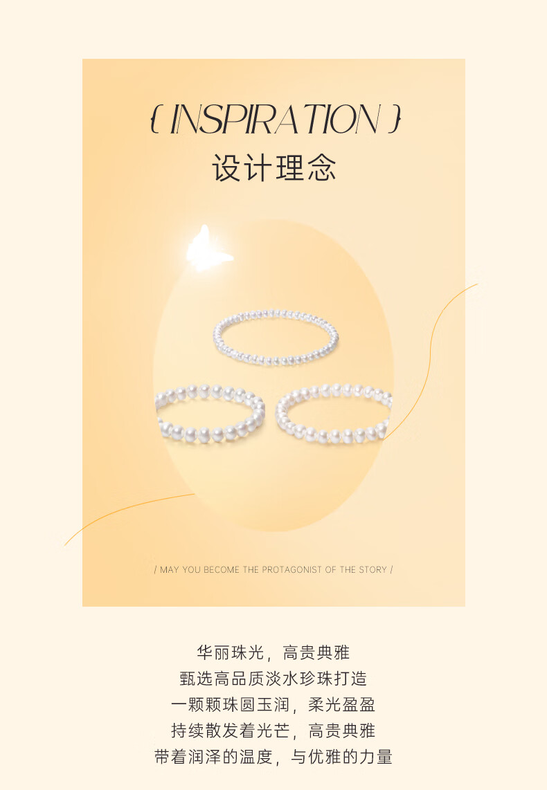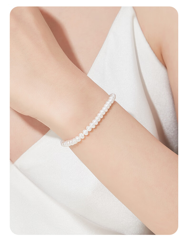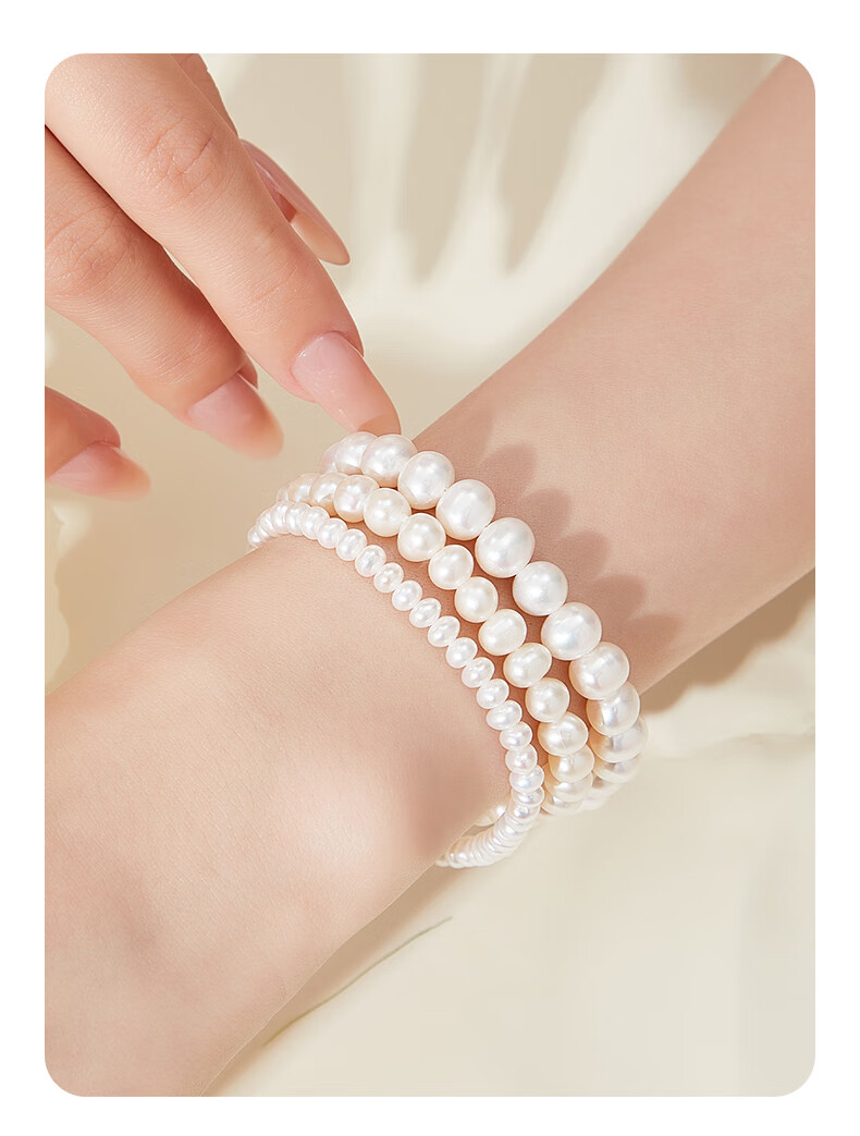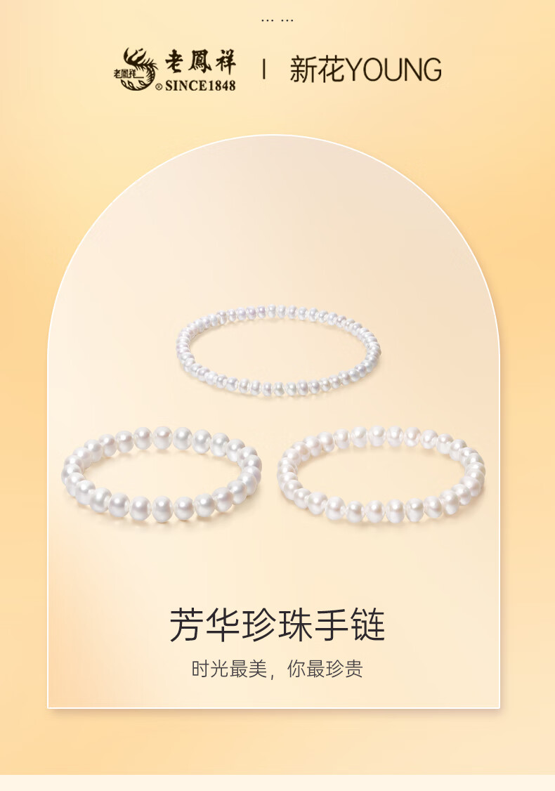 Lao Fengxiang Pearl Bracelet Girls Bracelet Plain String Young Style Jewelry Mid-Autumn Festival Mom Birthday Gift Girlfriend Wife Large Size 8N Youth Pearl Bracelet