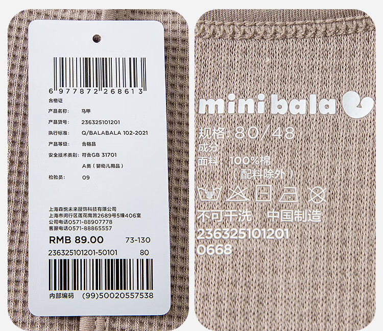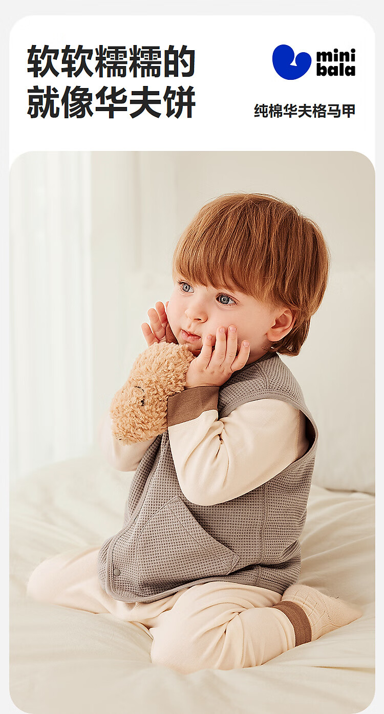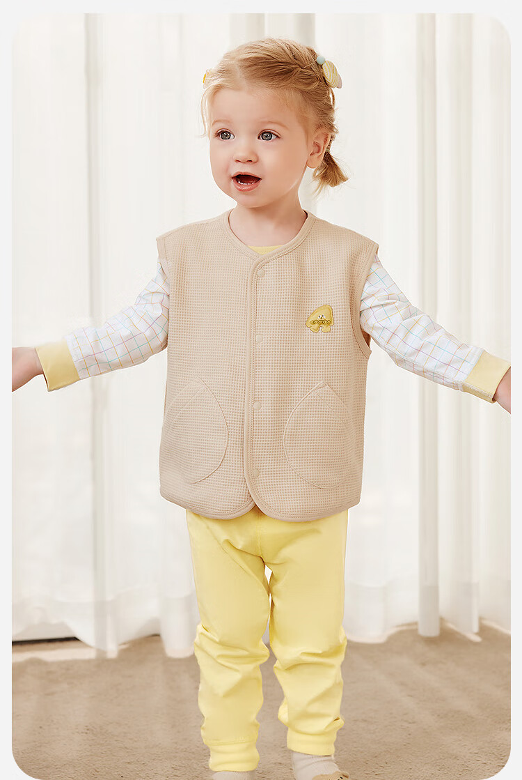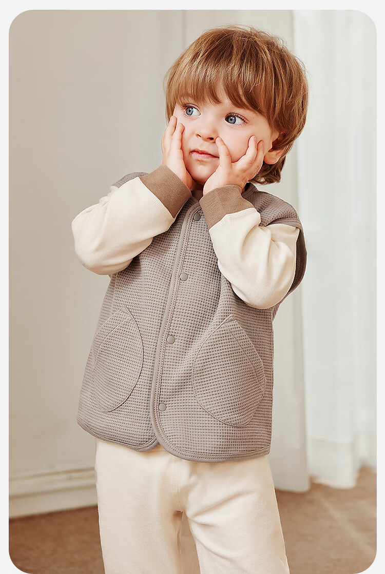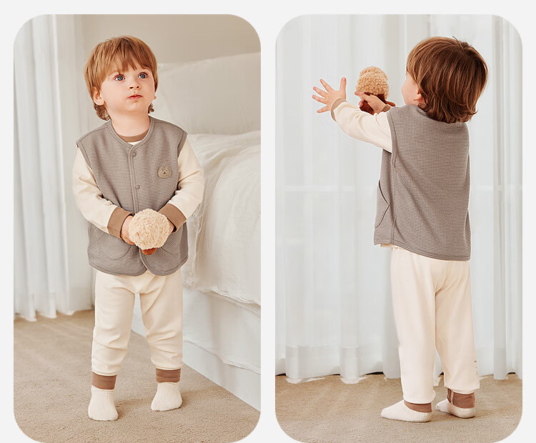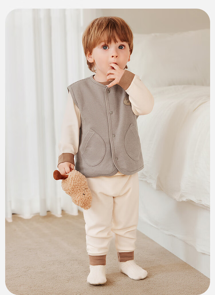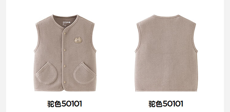 Mini Bara pure cotton children's thermal vest for boys and girls, inside and outside vest, autumn 2025, camel 50101 80