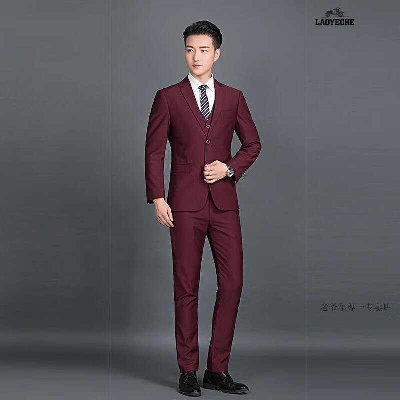 Classic car wool mulberry silk suit young men's suit wedding dress 25 spring and autumn new professional formal business suit 87882 gray three-piece suit L 111-120Jin Jin equals 0.5 kg