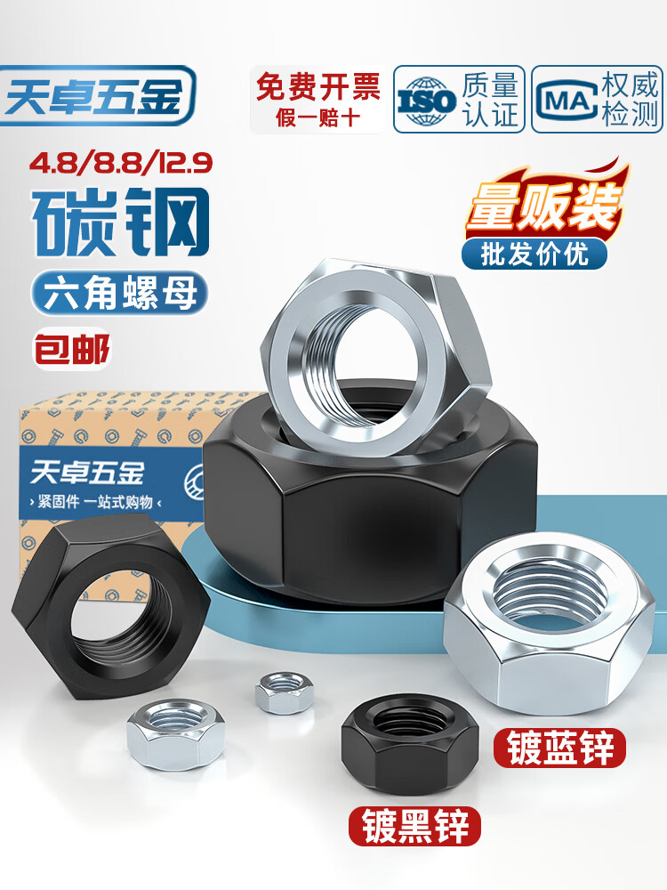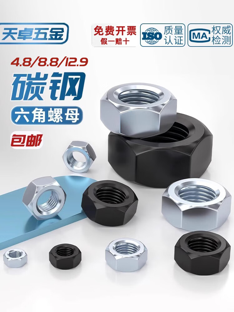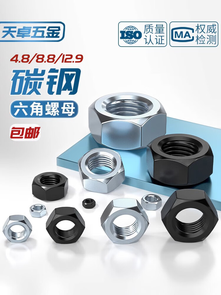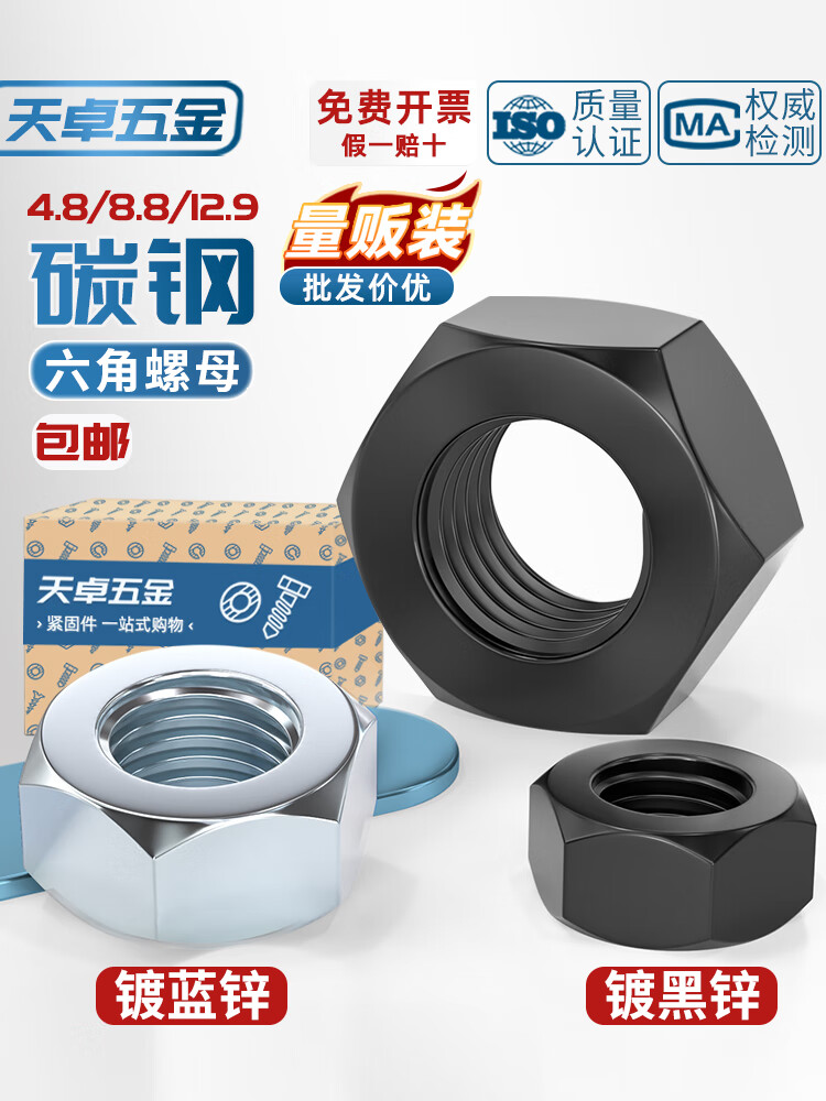 Tianzhuo Hardware National Standard Grade 4.8/Grade 8.8/Grade 12.9 Black hexagonal nut Iron nut Galvanized nickel plated screw cap M2-M30 Blue and white zinc M30 (3 pieces) Grade 8.8