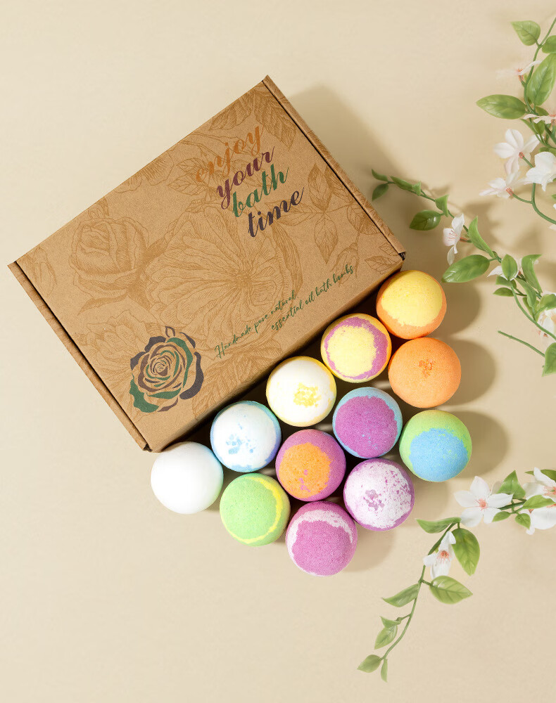 Bath salt ball set, explosive essential oil bath ball, bath ball 12 pieces, Valentine's Day gift, dried flower bubble bath ball, mixed color bubble bath ball set, 60g*12 pieces *1 set