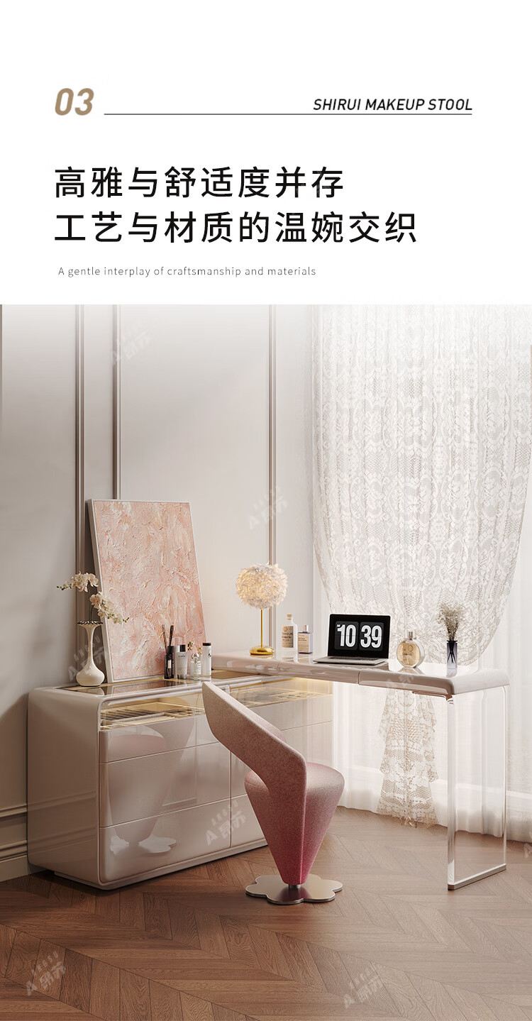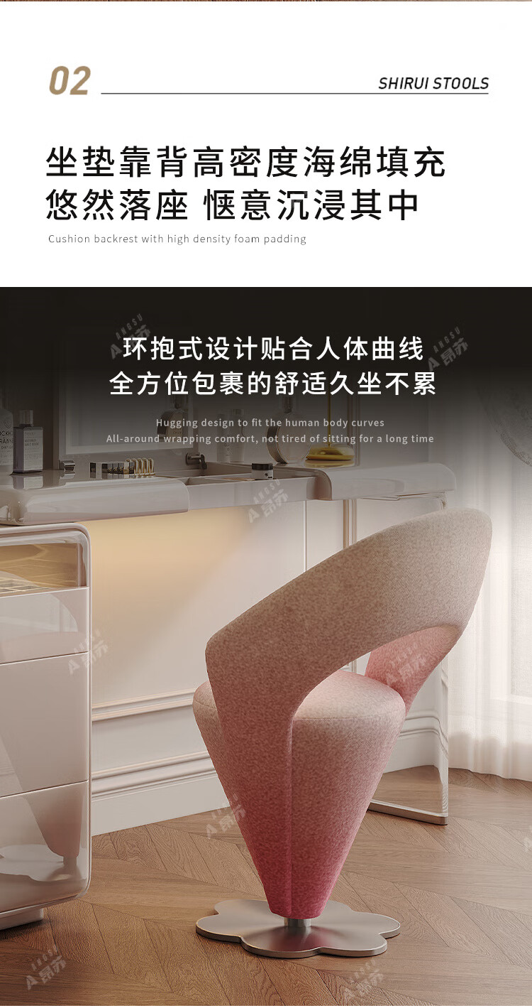 Ansu Italian light luxury dressing stool modern style high-end dressing table makeup stool chair designer soft bag stool for home use burgundy designer round base ready to use out of the box