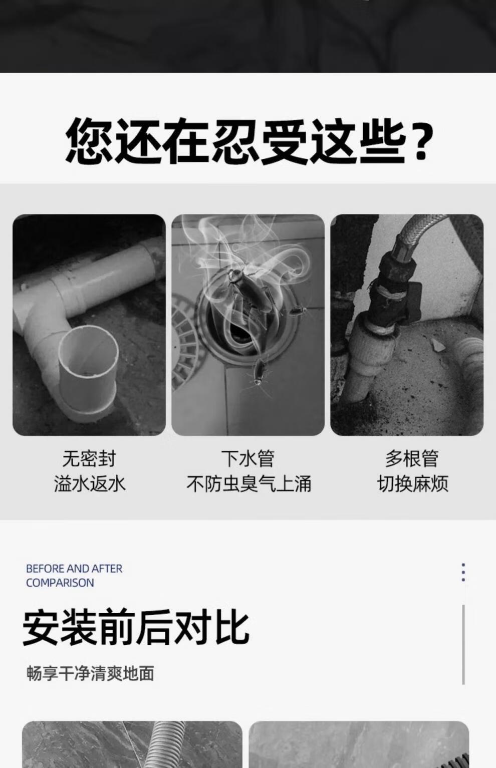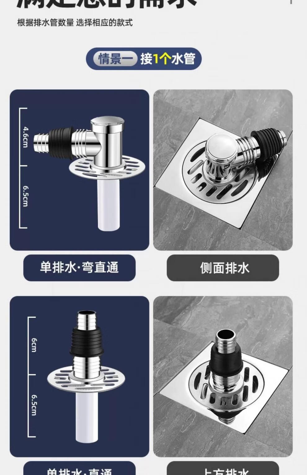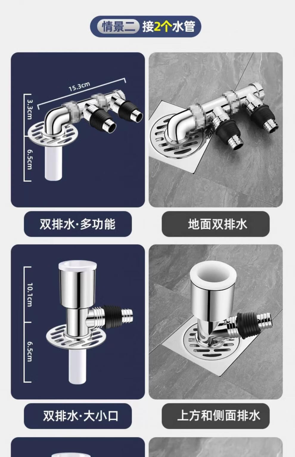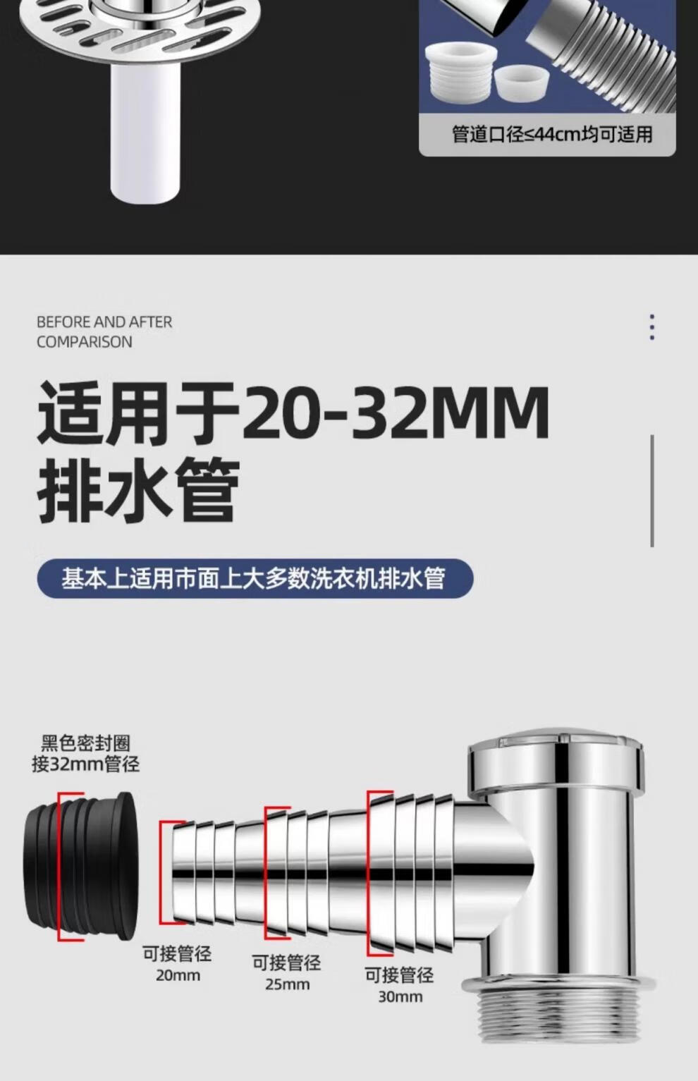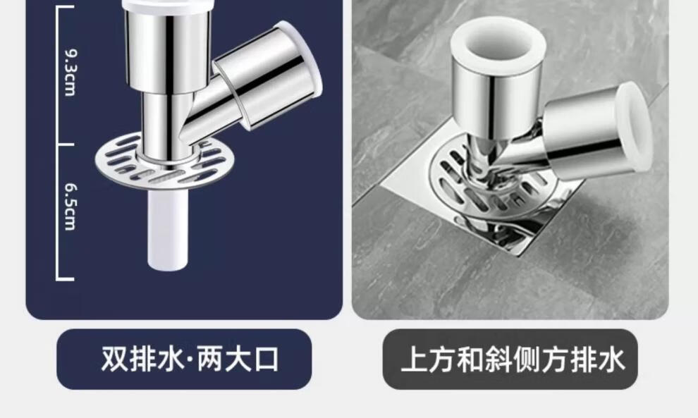 Sewer pipe three-way connection washing machine two-in-one docking device flow special cover drainage pipe floor drain three-way joint universal double drainage large double port + sealed bottom