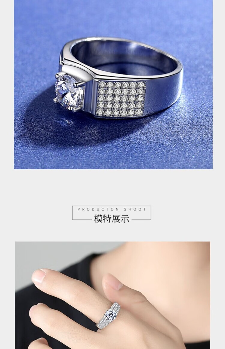 New high-end men's ring adjustable pt950 platinum diamond ring high-end domineering non-fading pure platinum men's ring 3.89g domineering starry men's ring 2 carat-D-E/extremely white