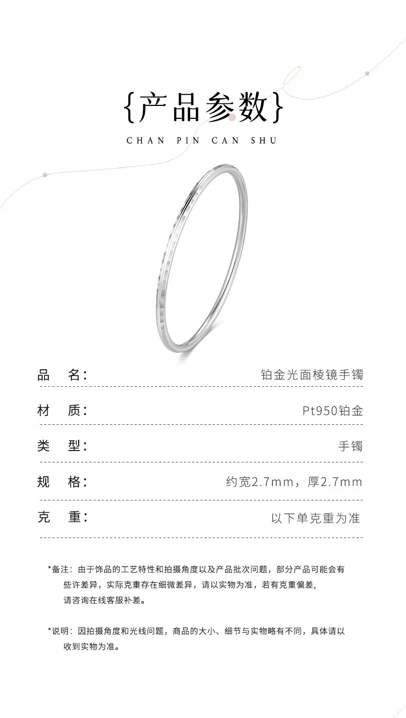 Cuihua pt950 crushed ice platinum bracelet, fashionable and versatile, birthday and anniversary gift for girlfriend and wife, about 6.5g 54