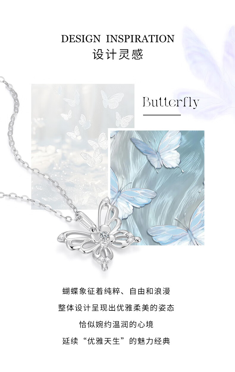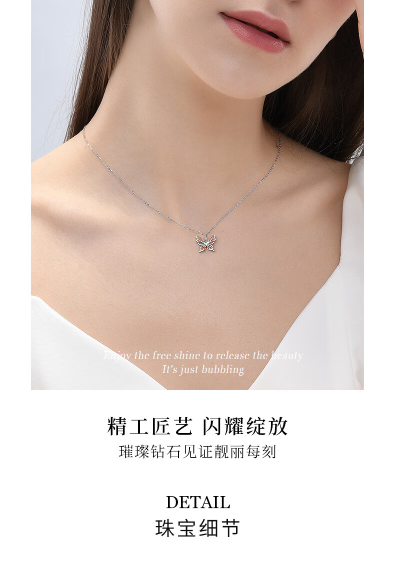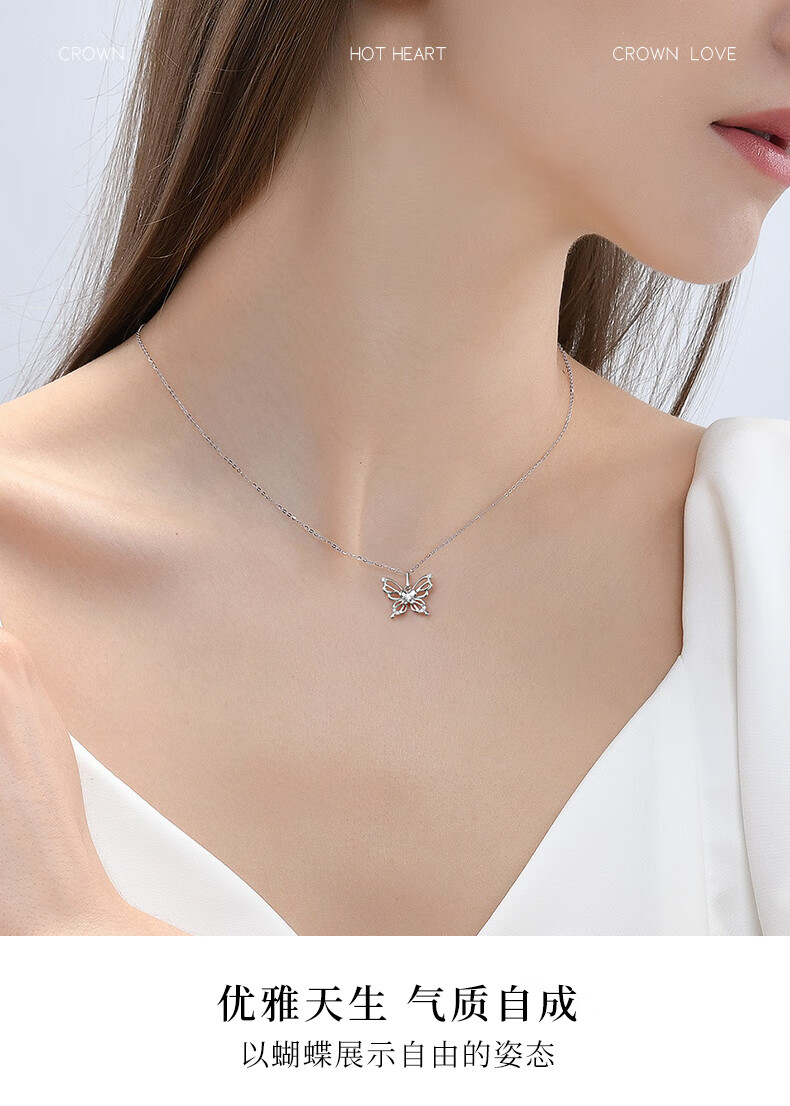 Laishen Psychic Diamond Necklace for Women Platinum Romantic Butterfly Pendant Valentine's Day Gift for Girlfriend Diamond Necklace