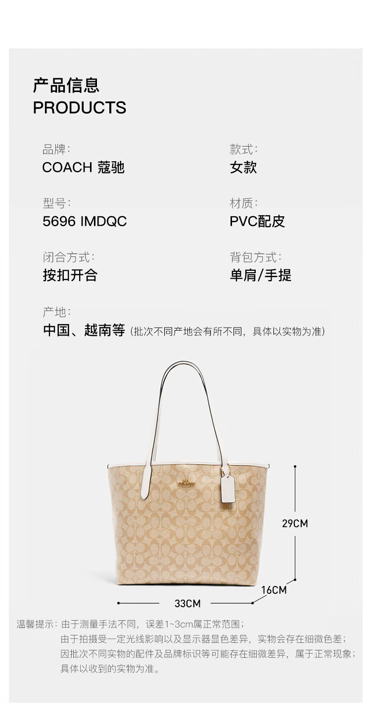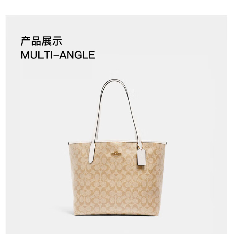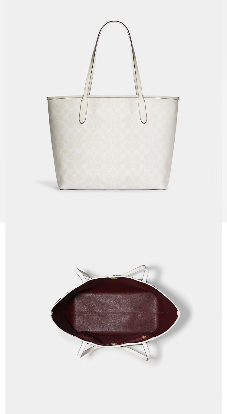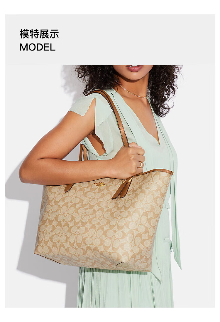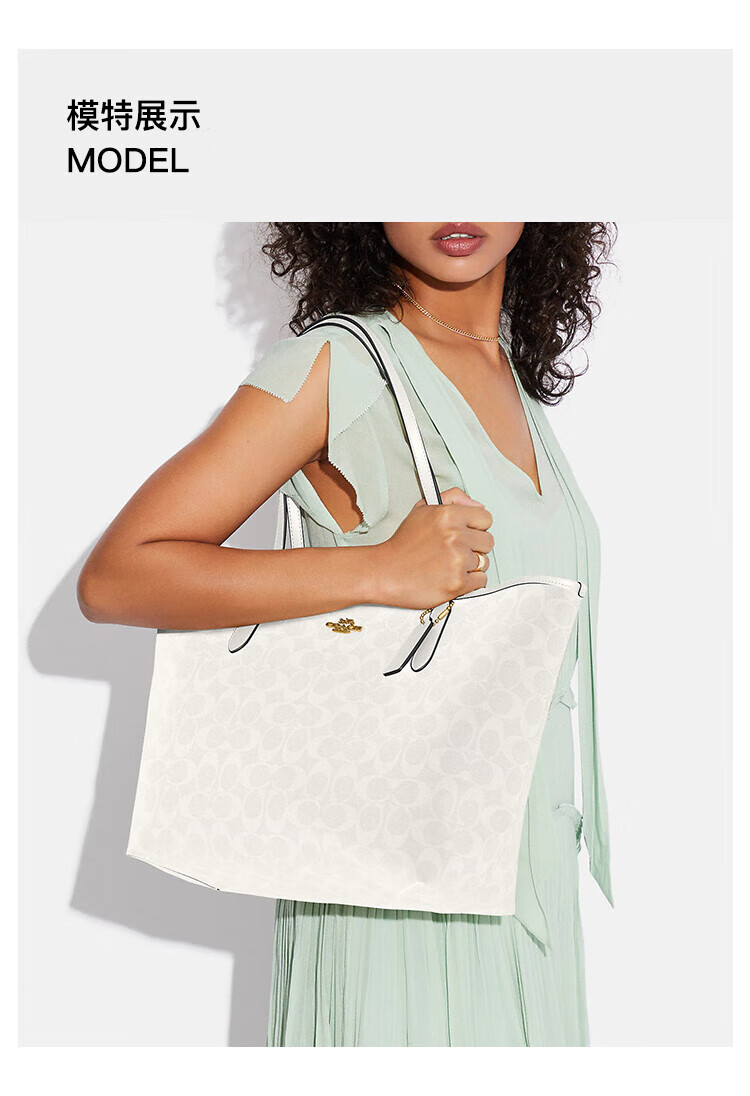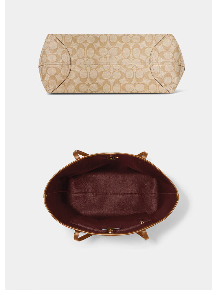 COACH Women's City 33 Classic Presbyopia Magnetic Buckle Large Capacity Shoulder Tote Bag as a Gift for Your Girlfriend New Milk Tea Color