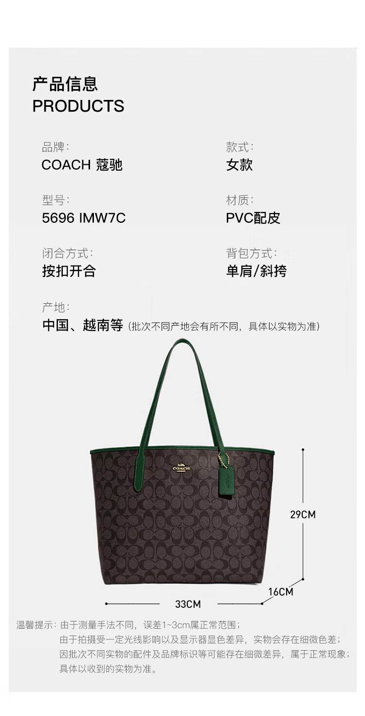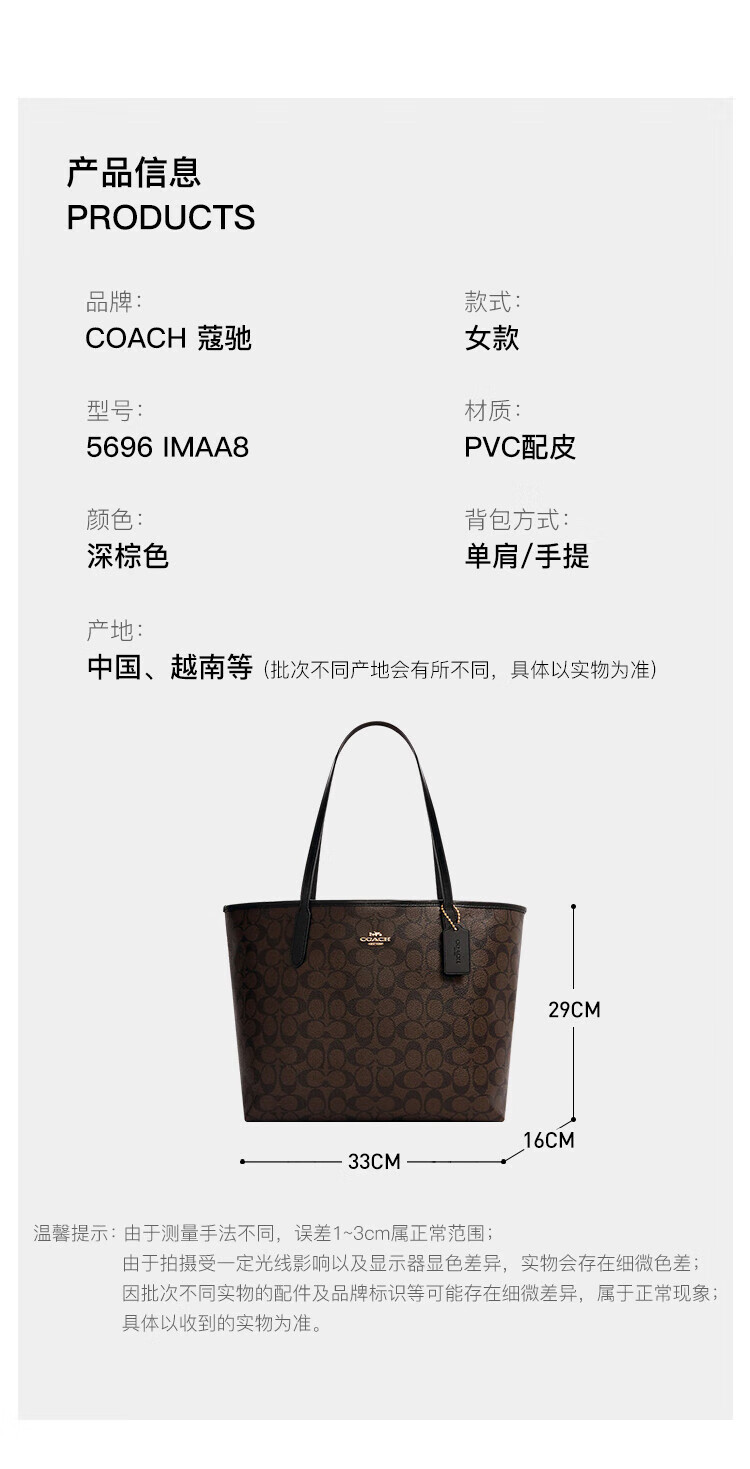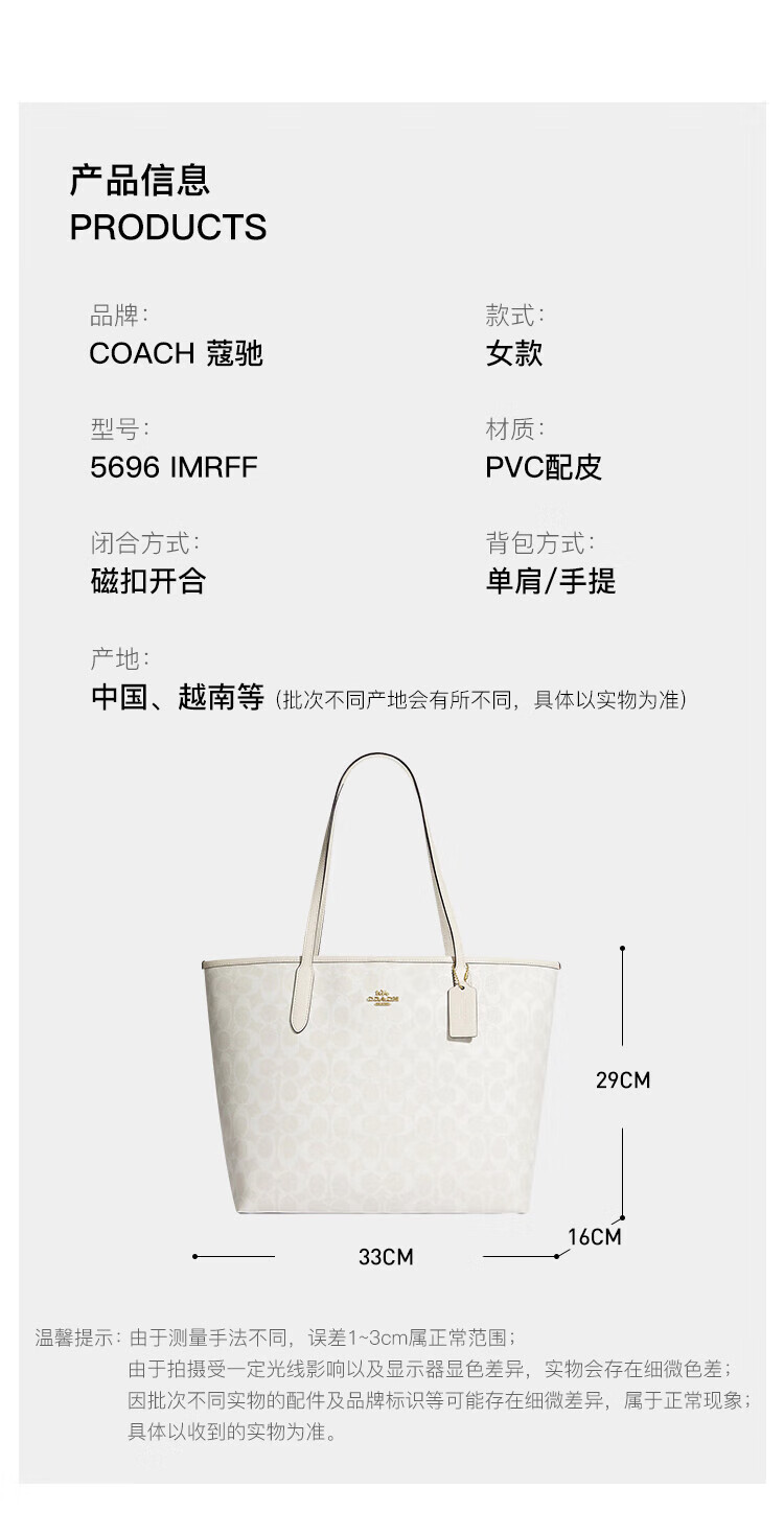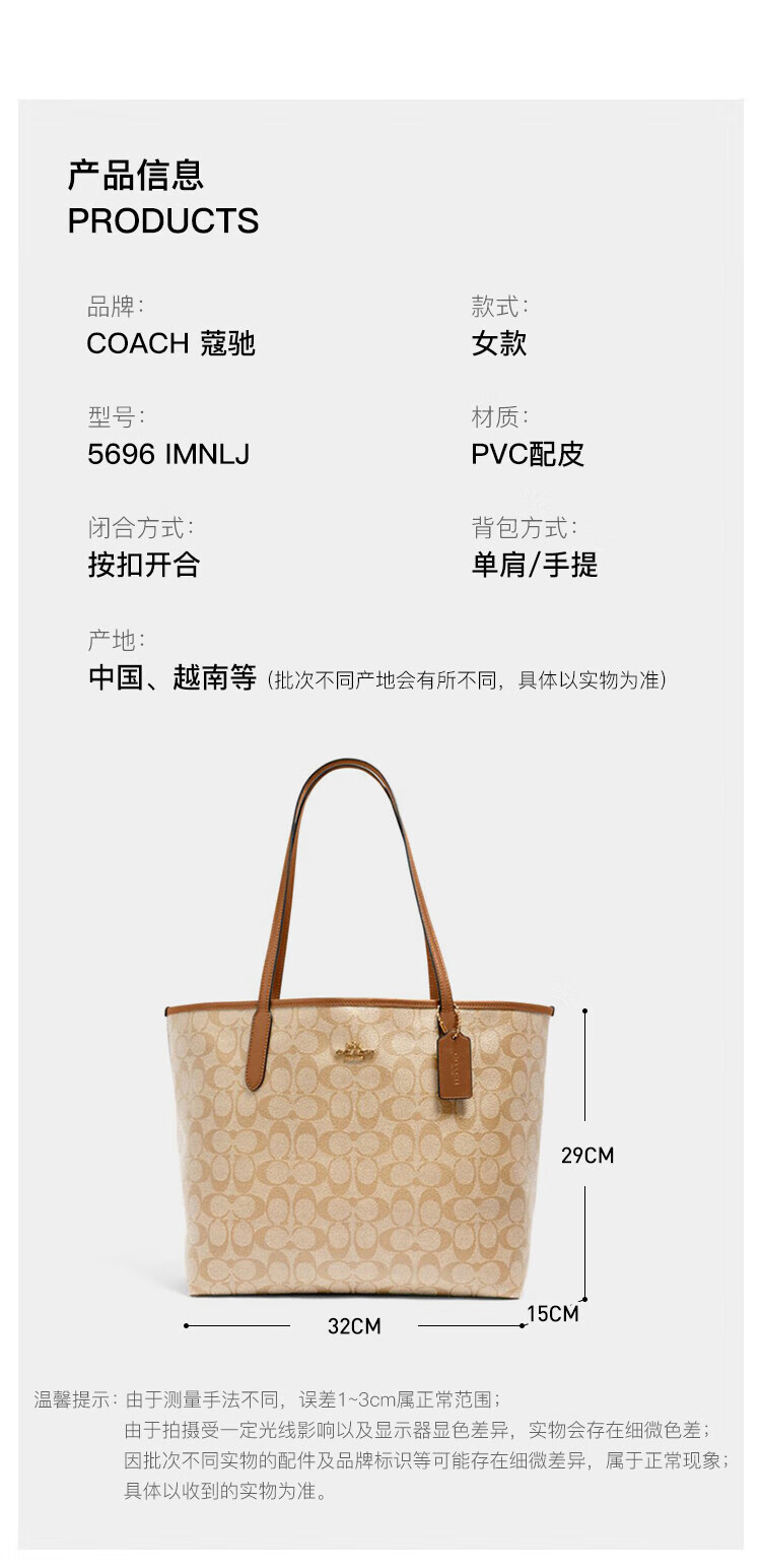 COACH Women's City 33 Classic Presbyopia Magnetic Buckle Large Capacity Shoulder Tote Bag as a Gift for Your Girlfriend New Milk Tea Color