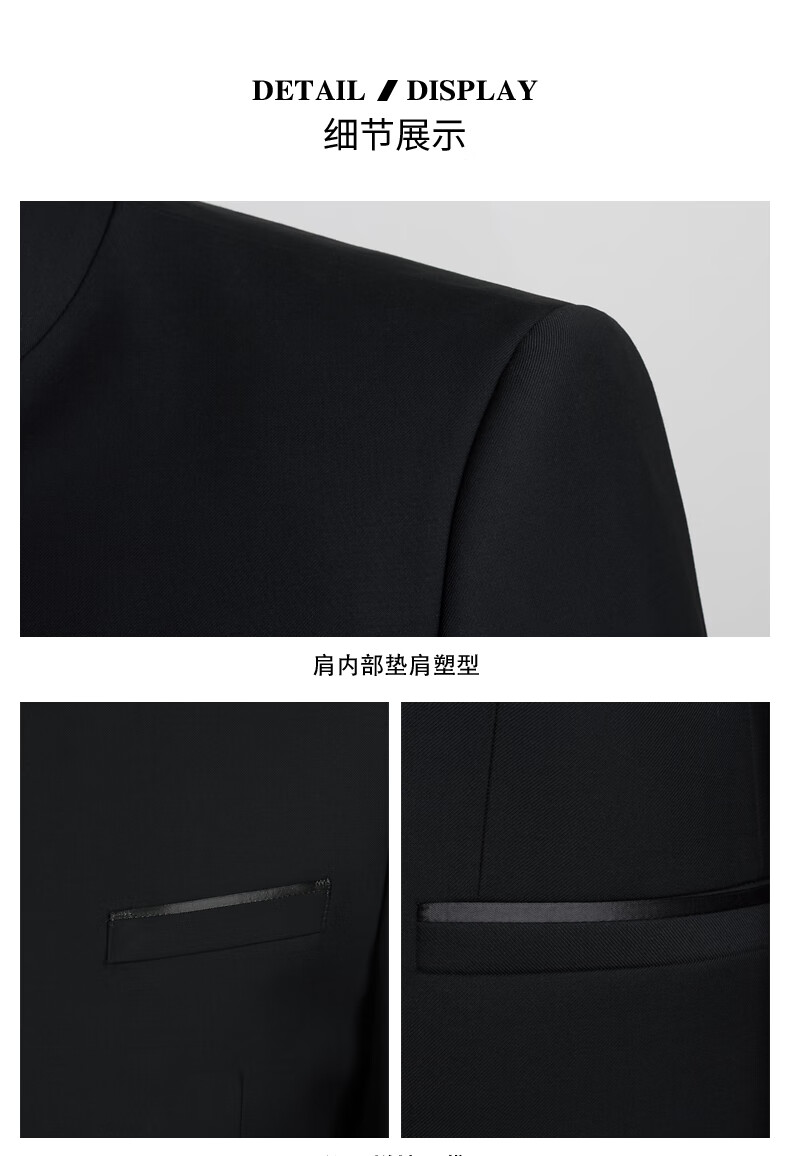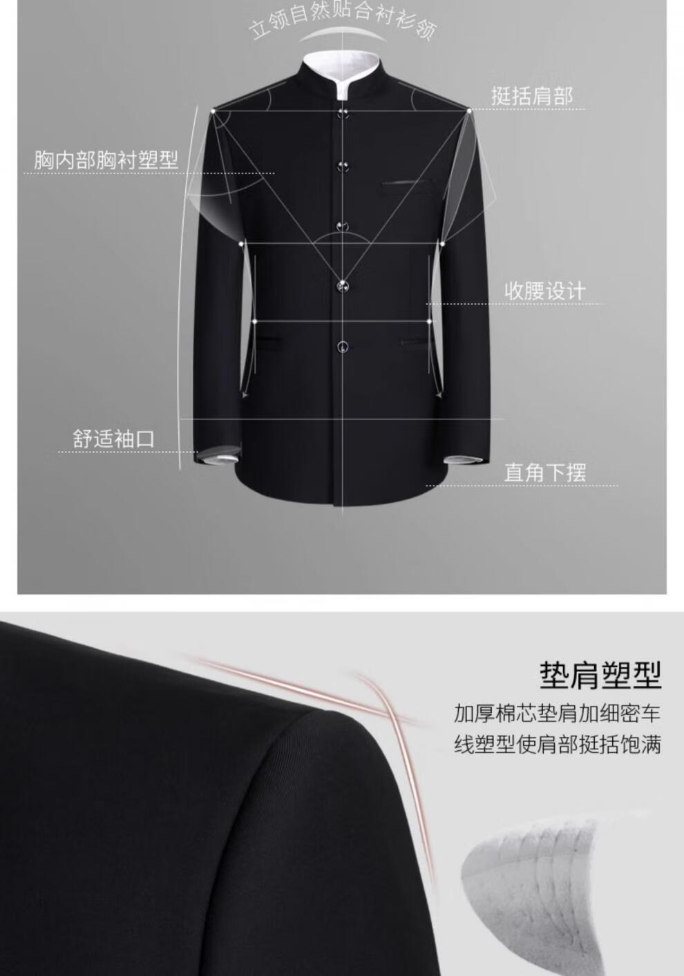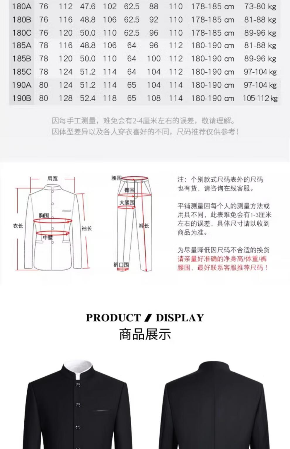 Luo Meng Chinese tunic suit men's youth slim-fit Chinese stand-collar suit Chinese wedding dress banquet Chinese style Tang suit black Ming door top + pants + shirt 170A