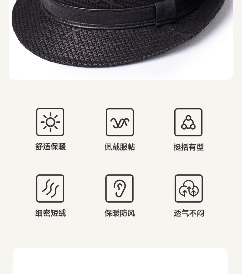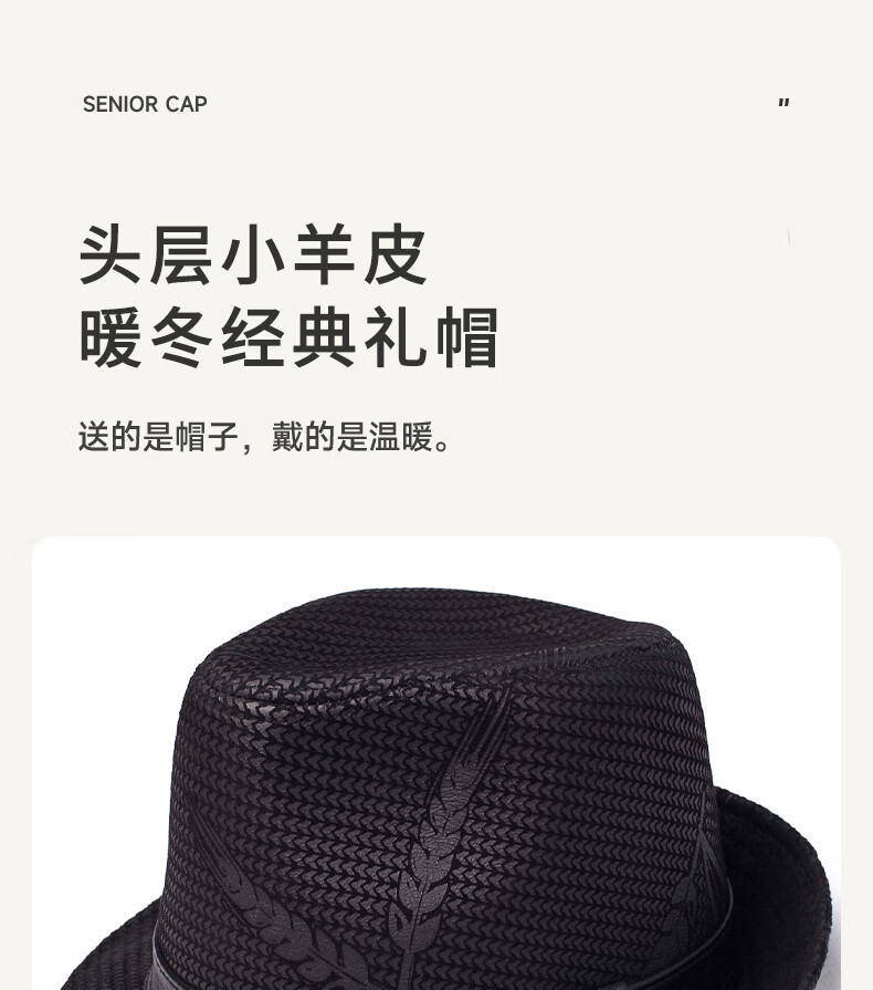 Charles Worth genuine leather hat men's autumn and winter new sheepskin hat gentleman jazz hat middle-aged and elderly dad hat casual hat black L (55-56cm)