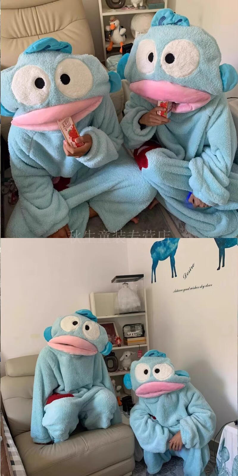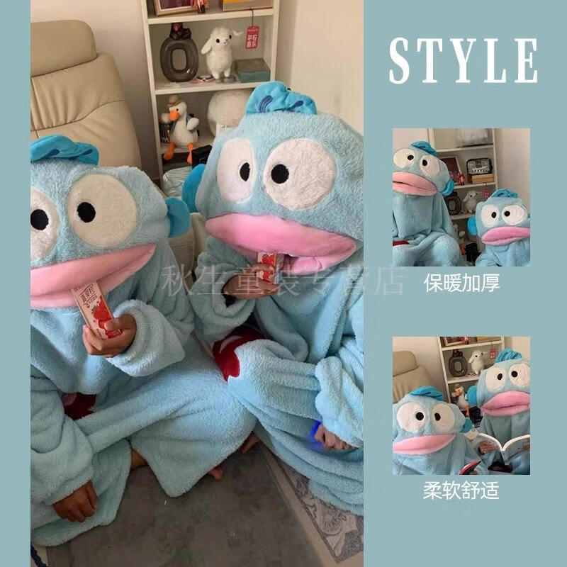 Disney Ugly Fish children's cute and funny one-piece pajamas for men and women flannel autumn and winter thickened coral velvet cartoon home clothes Big-headed fish one-piece suit 165 S