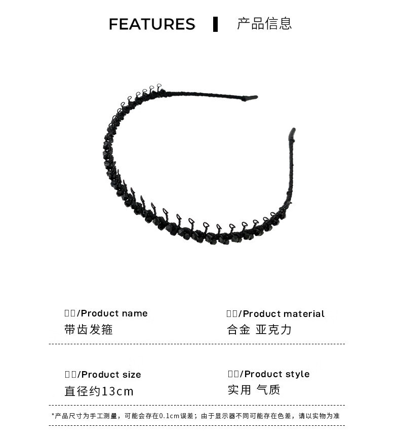 CTRLEND Elderly Hairband with Teeth for Middle-aged and Elderly People with Diamond Bangs Iron Wire Hair Clip Granny Face Wash Pressing Hair Breaker Black 1 Pack