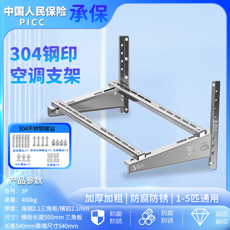 Acero inoxidable engrosado Sello de acero 304 1-1.5P2P3P Soporte de unidad exterior de aire acondicionado Camilla transversal universal 1.5P (con tornillos 304) Sello de acero 304