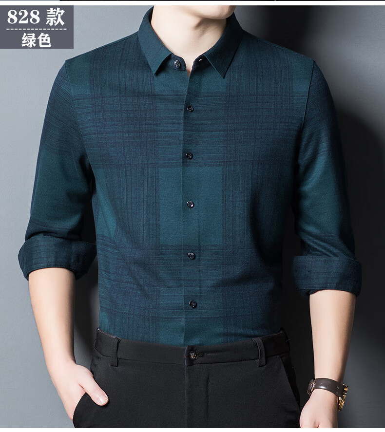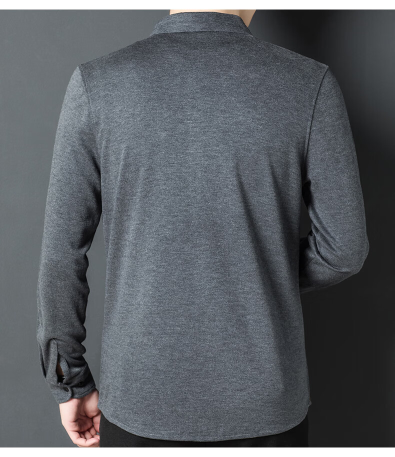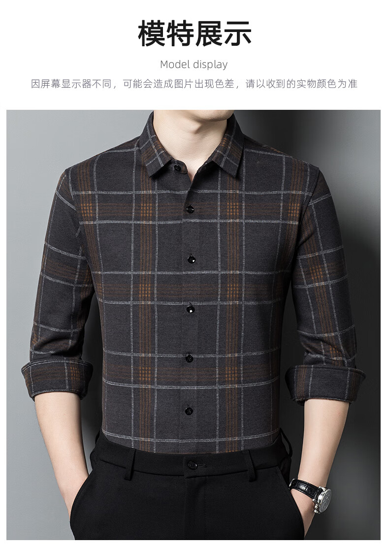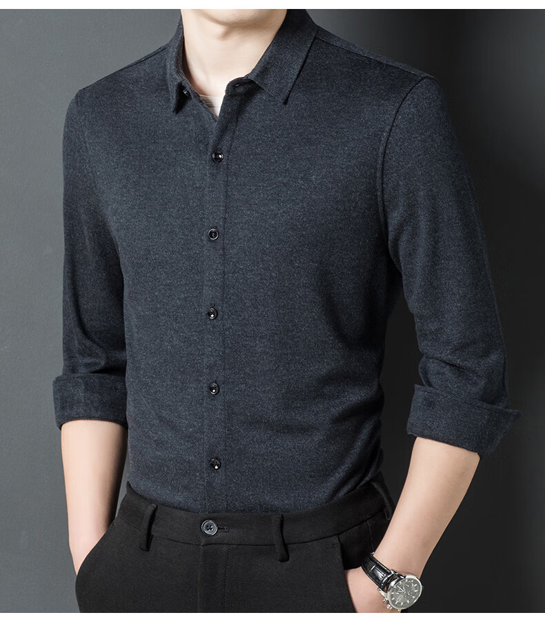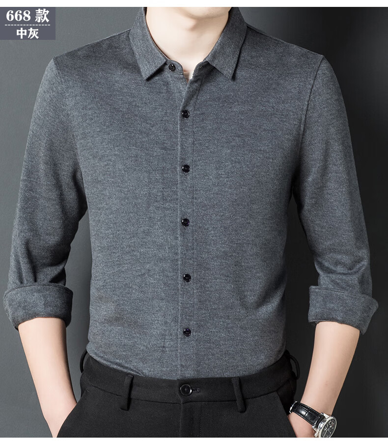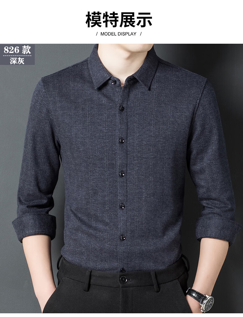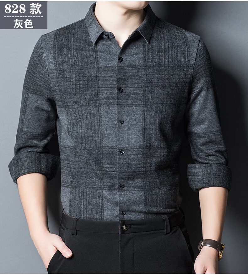 Hengyuanxiang high-end cashmere shirt men's long-sleeved autumn and winter new thickened middle-aged casual plus velvet warm shirt 828 style - gray M 165 recommended 90-120 Jin Jin equals 0.5 kg