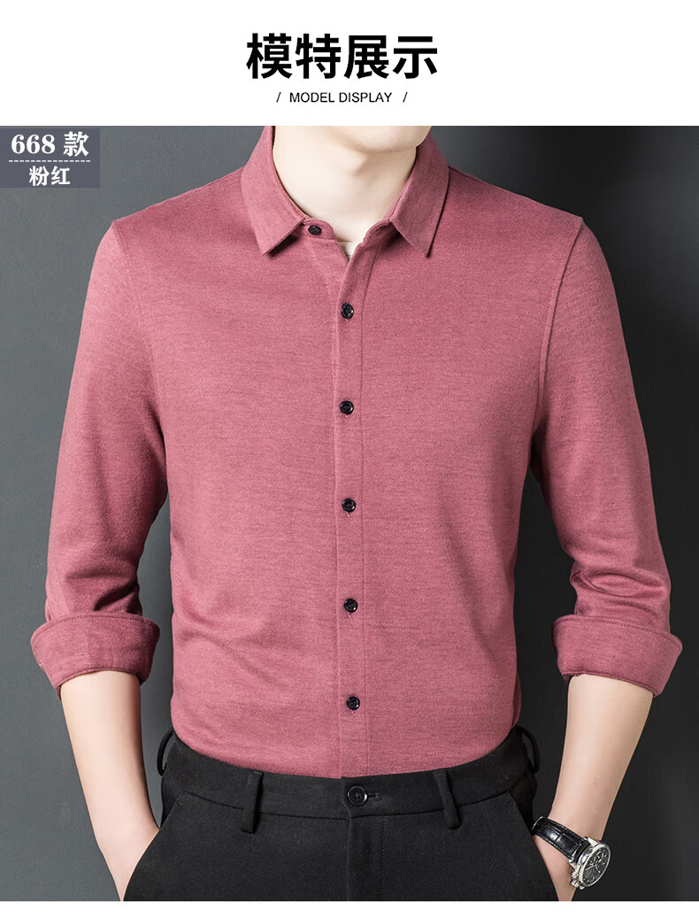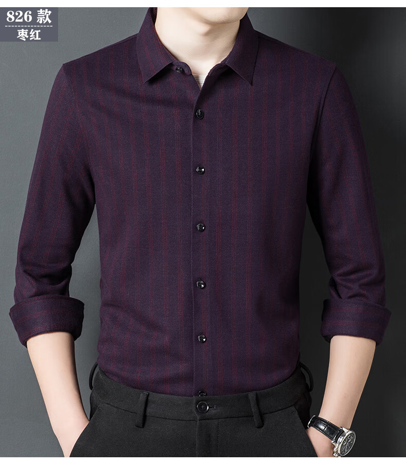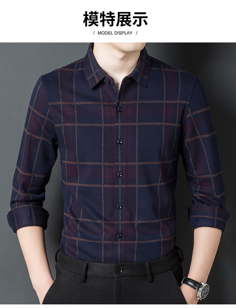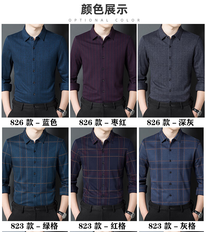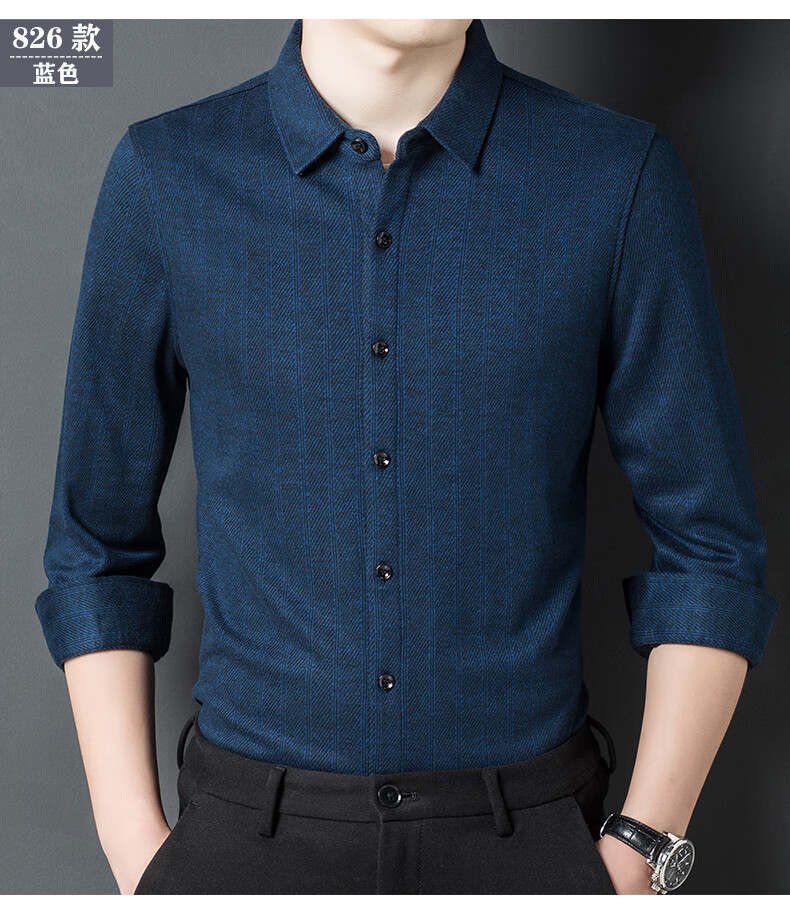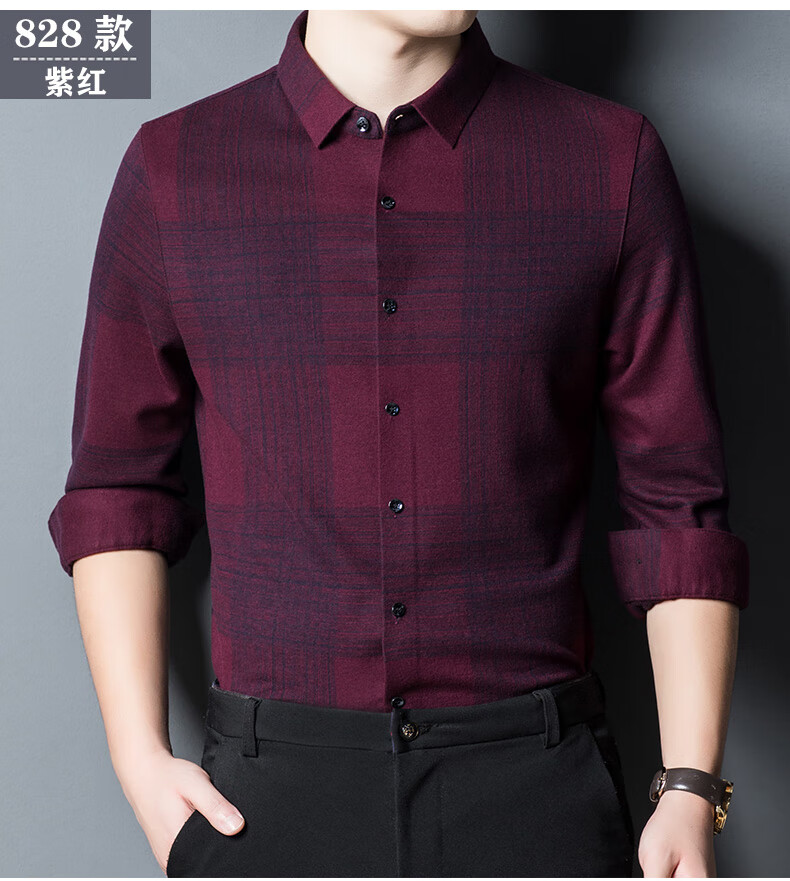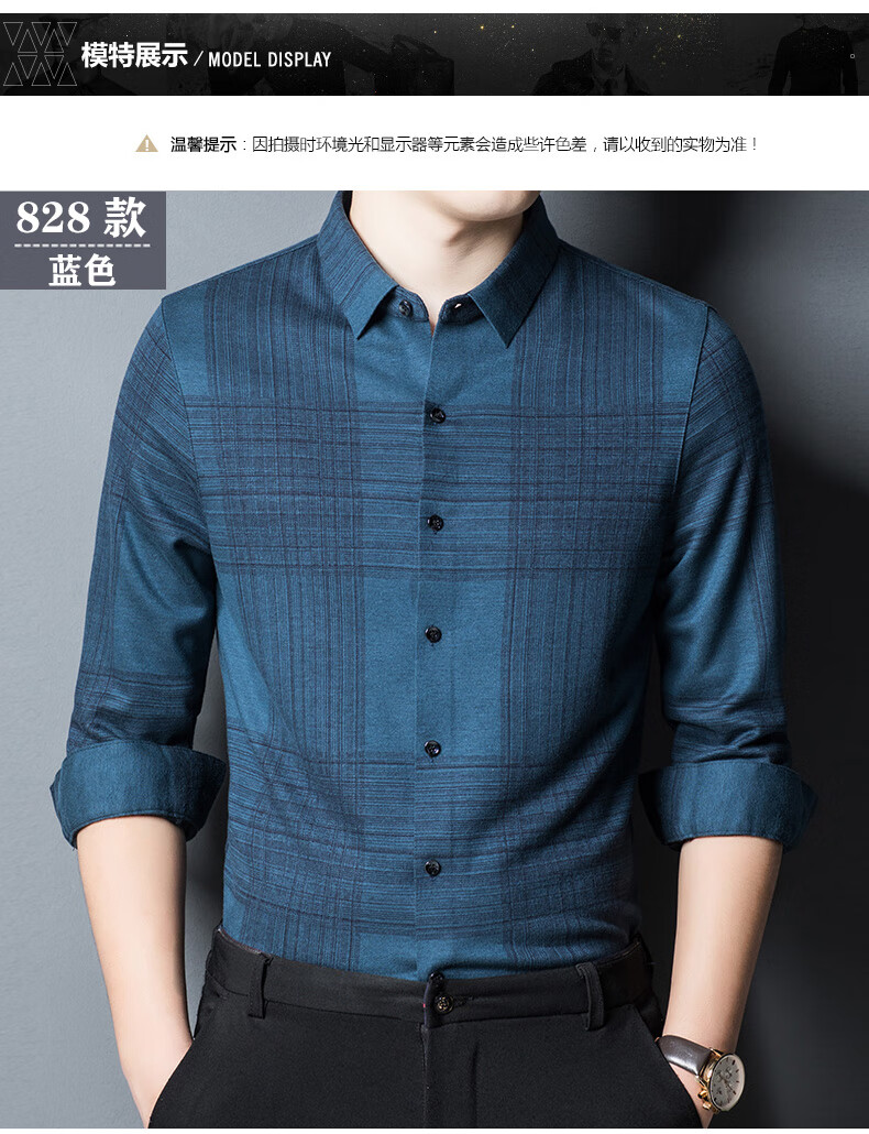 Hengyuanxiang high-end cashmere shirt men's long-sleeved autumn and winter new thickened middle-aged casual plus velvet warm shirt 828 style - gray M 165 recommended 90-120 Jin Jin equals 0.5 kg