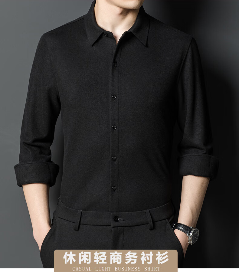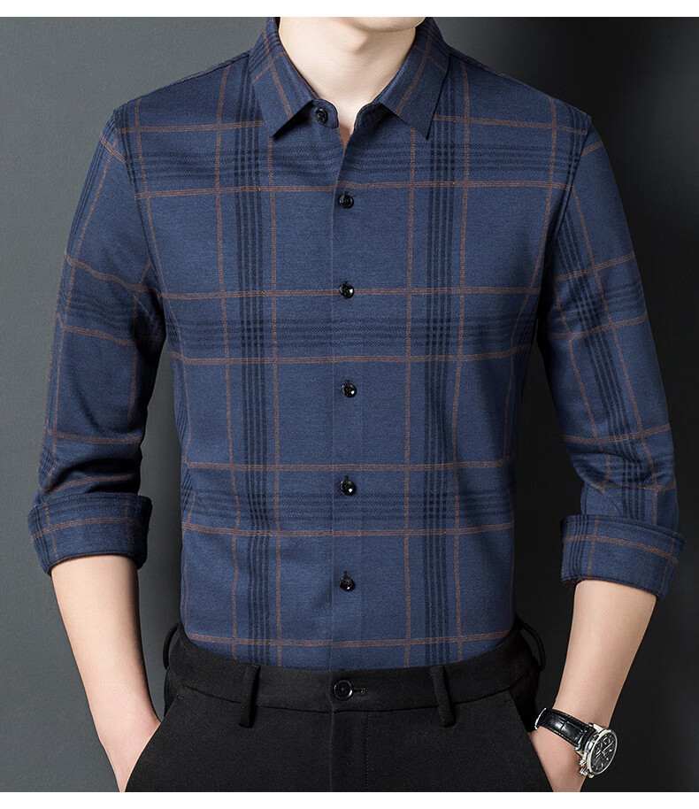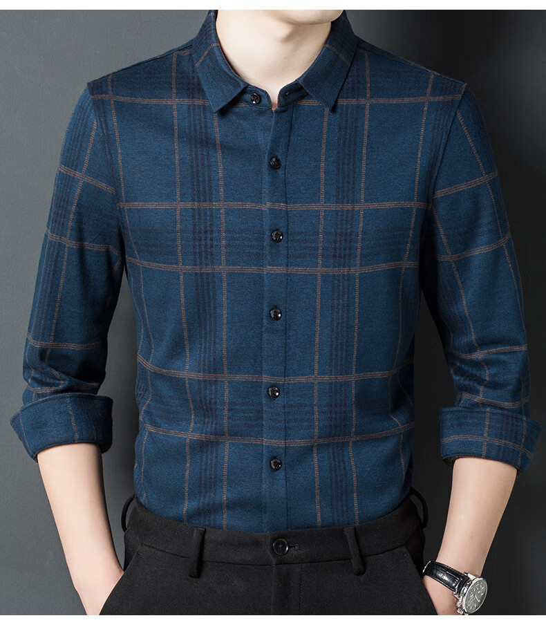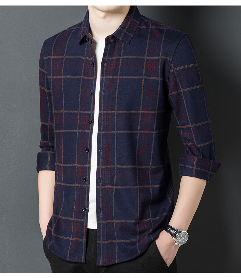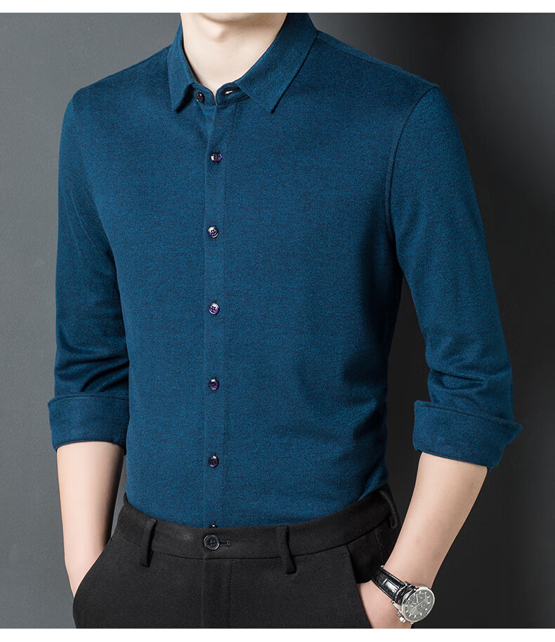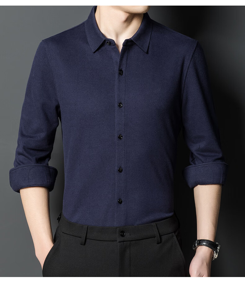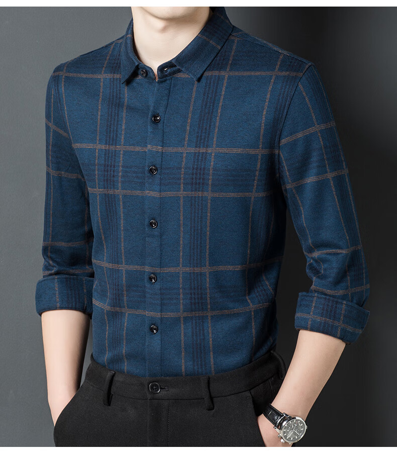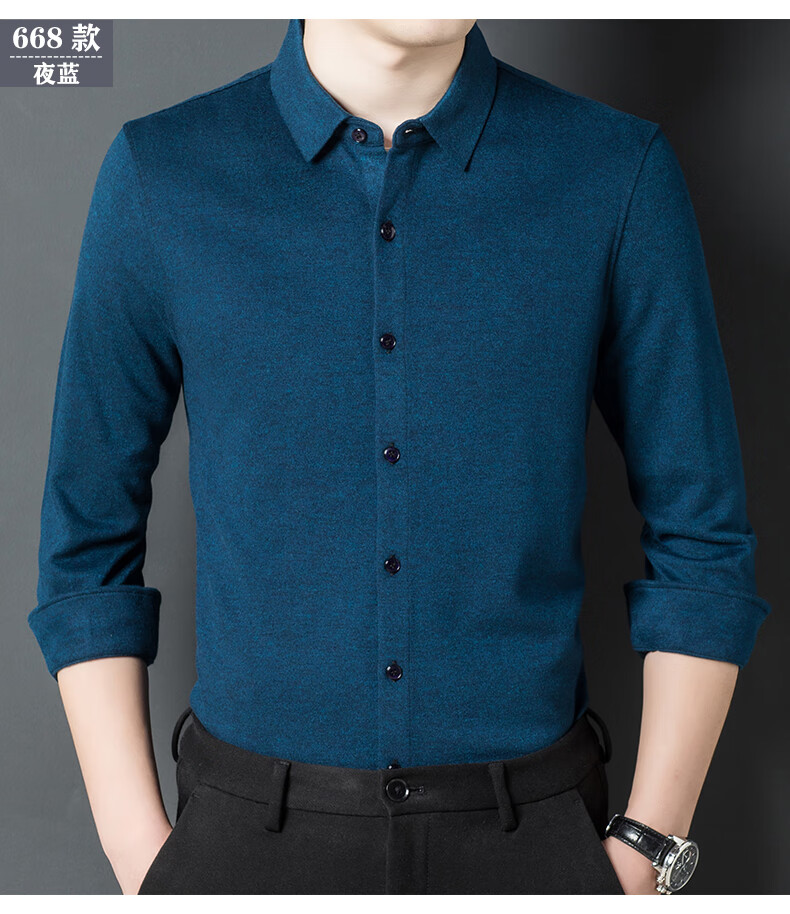 Hengyuanxiang high-end cashmere shirt men's long-sleeved autumn and winter new thickened middle-aged casual plus velvet warm shirt 828 style - gray M 165 recommended 90-120 Jin Jin equals 0.5 kg