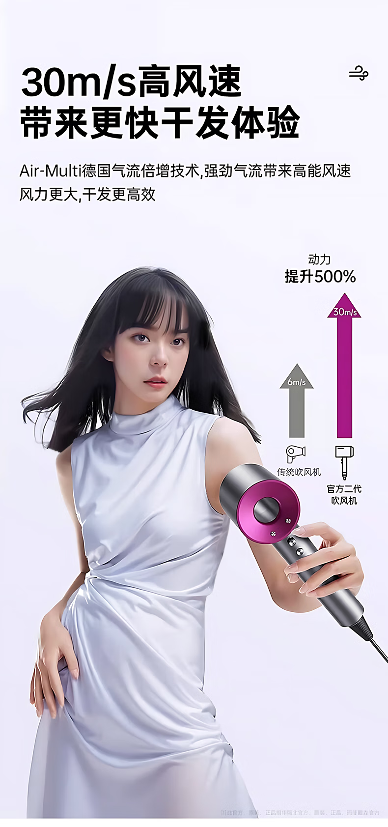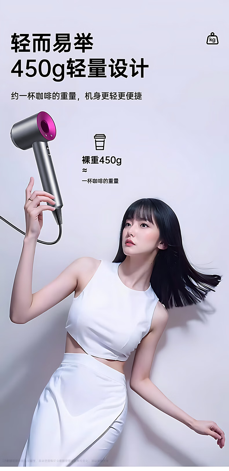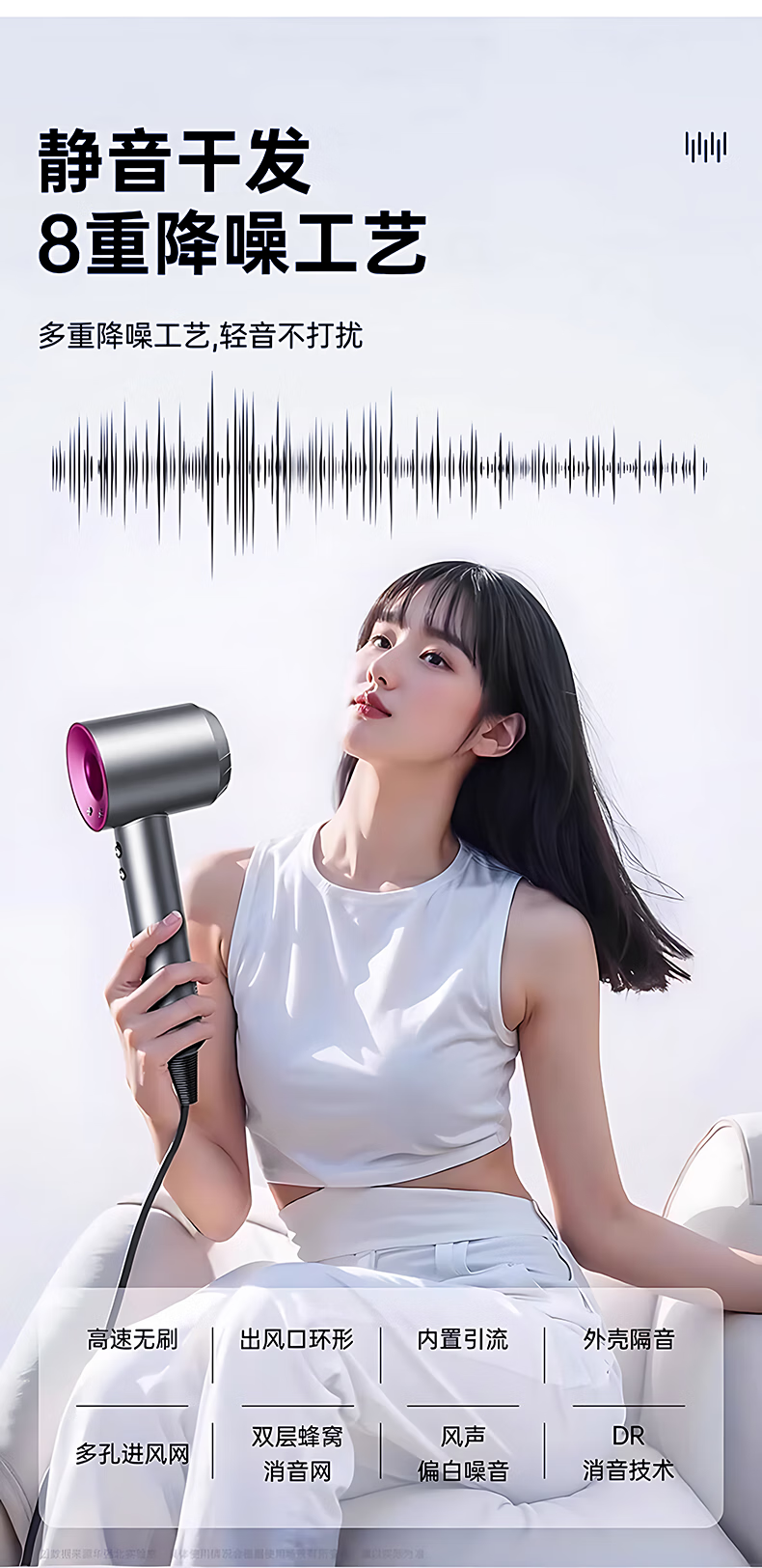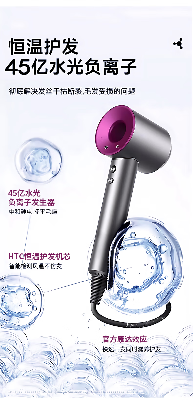 Benchmark Eagle National 3C Certification High Speed Leafless Hair Dryer Home Hair Dryer Negative Ion Silent High Power Non-Hazardous Constant Temperature Quick Drying Hair Dryer Student Dormitory Special Hair Care Single Nozzle Rose Red | 4 Billion Moisturizing Negative Ions Hair Care 3C Certification