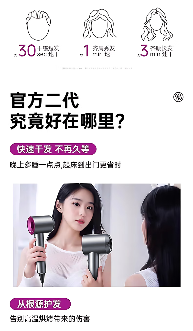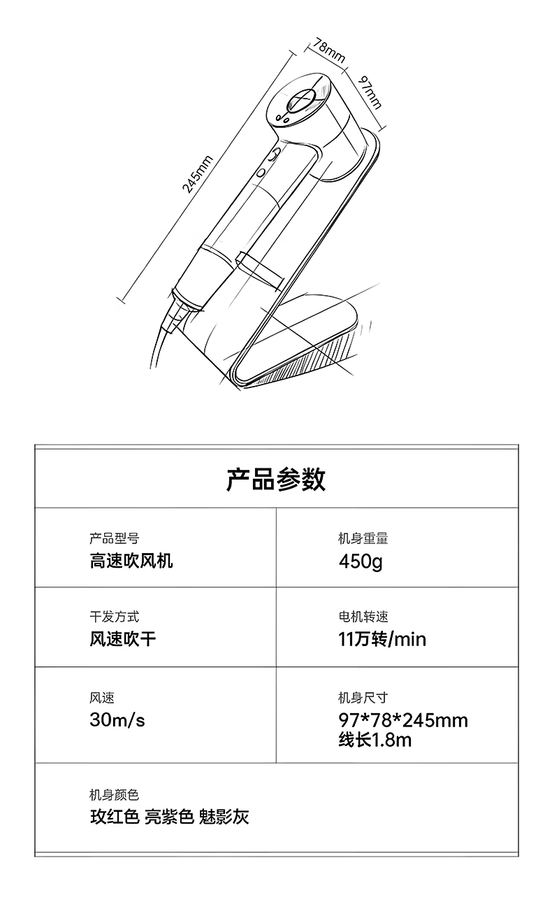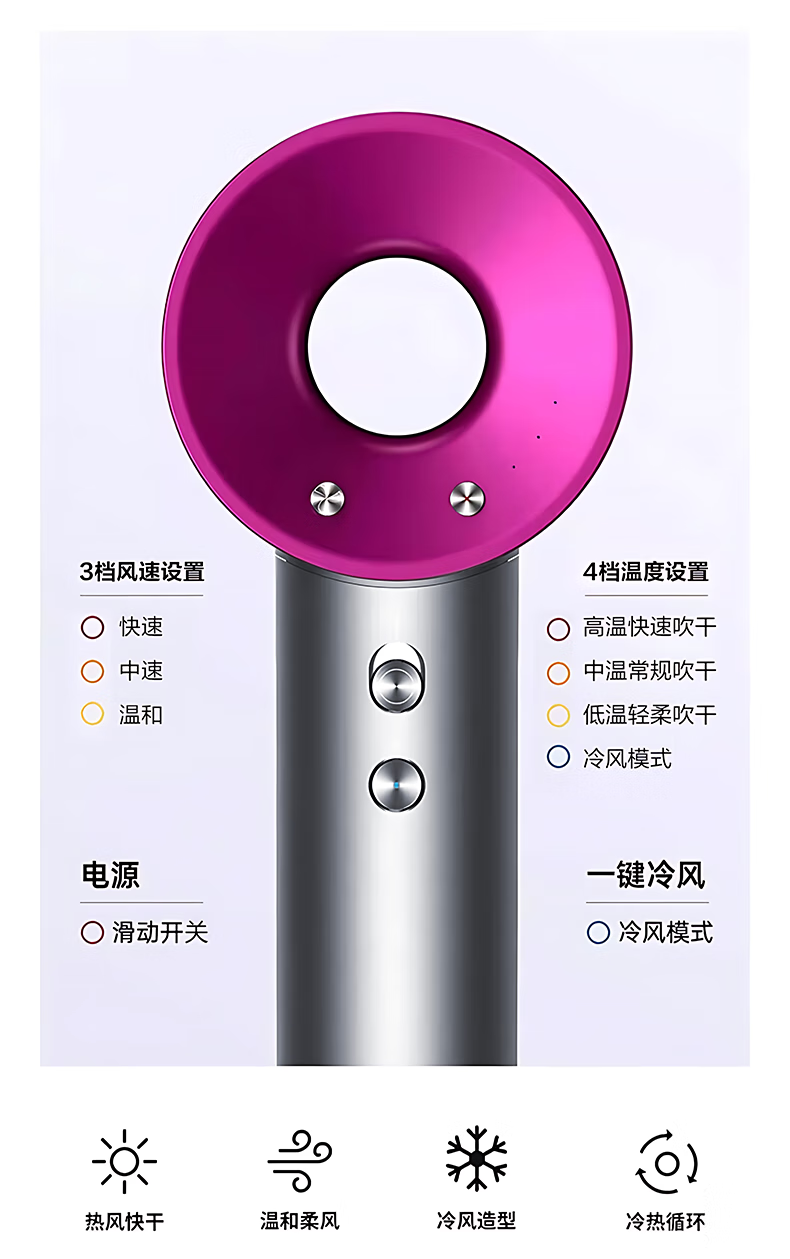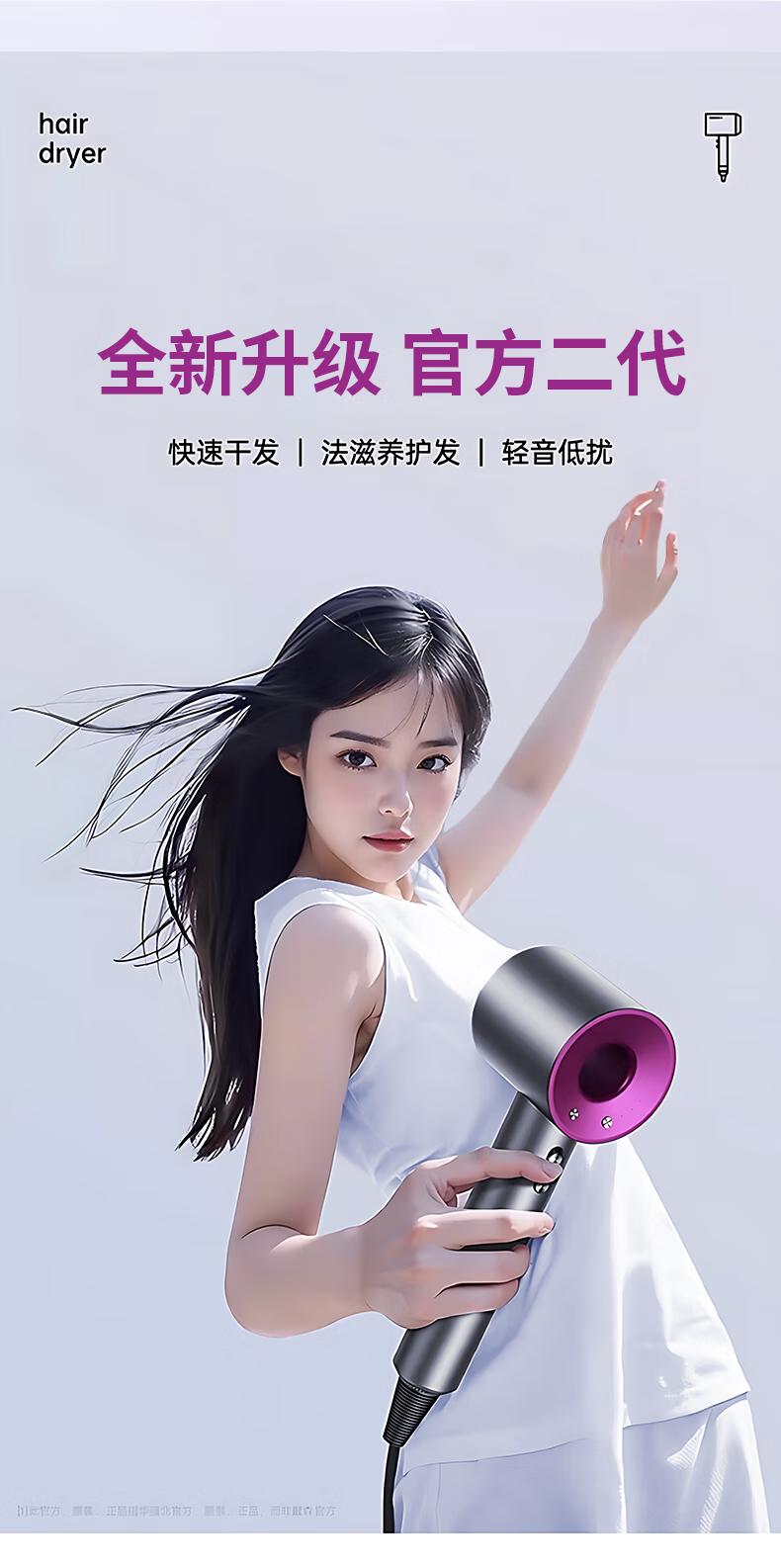 Benchmark Eagle National 3C Certification High Speed Leafless Hair Dryer Home Hair Dryer Negative Ion Silent High Power Non-Hazardous Constant Temperature Quick Drying Hair Dryer Student Dormitory Special Hair Care Single Nozzle Rose Red | 4 Billion Moisturizing Negative Ions Hair Care 3C Certification