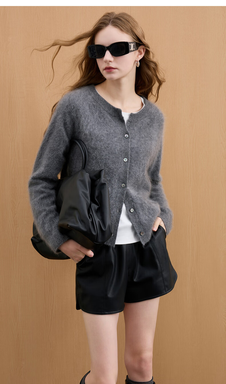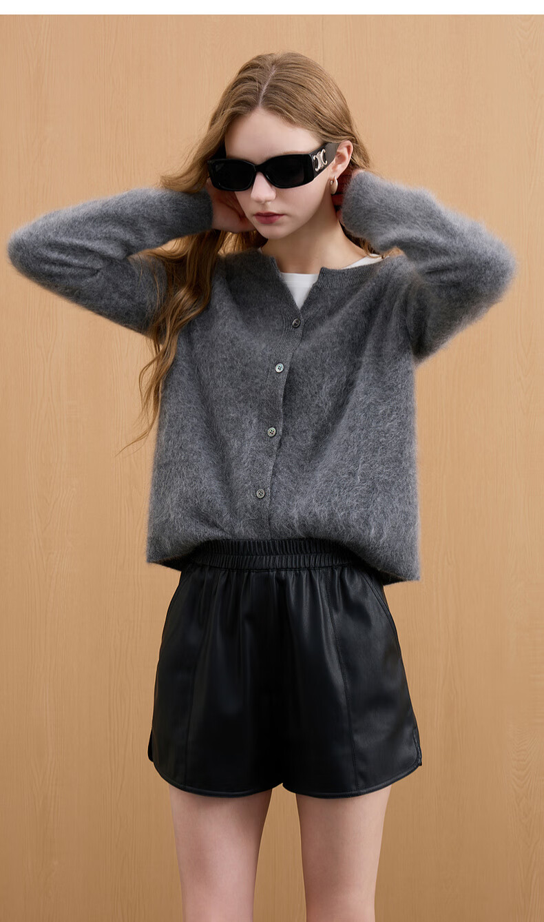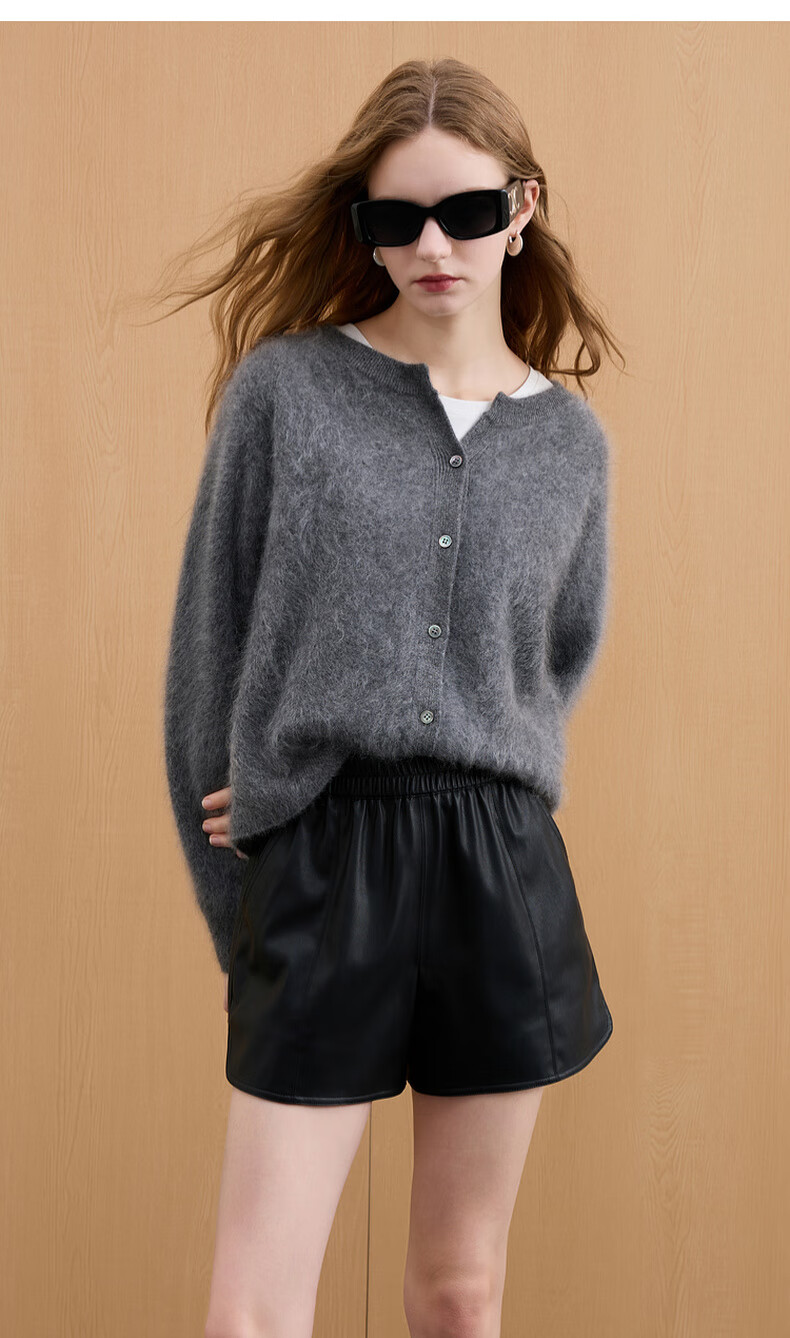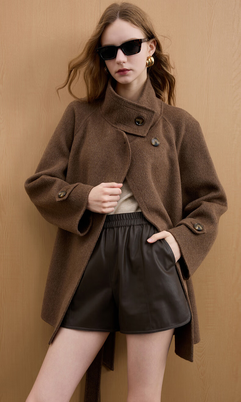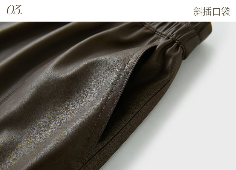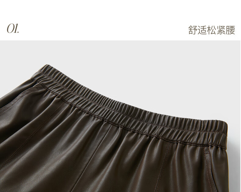 Sancai 2025 Winter New PU Leather Shorts Elastic Waist Casual Pants Boot Pants Versatile, Slim and Trendy M Brown S 155/64A 155/64A