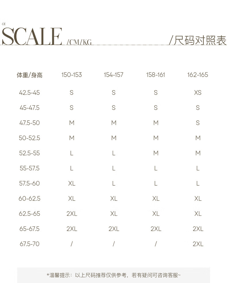 China (cm) 160-165/84-86 165-170 / 88-90 167-172 / 92-96 168-173 / 98-102 170-176 / 106-110