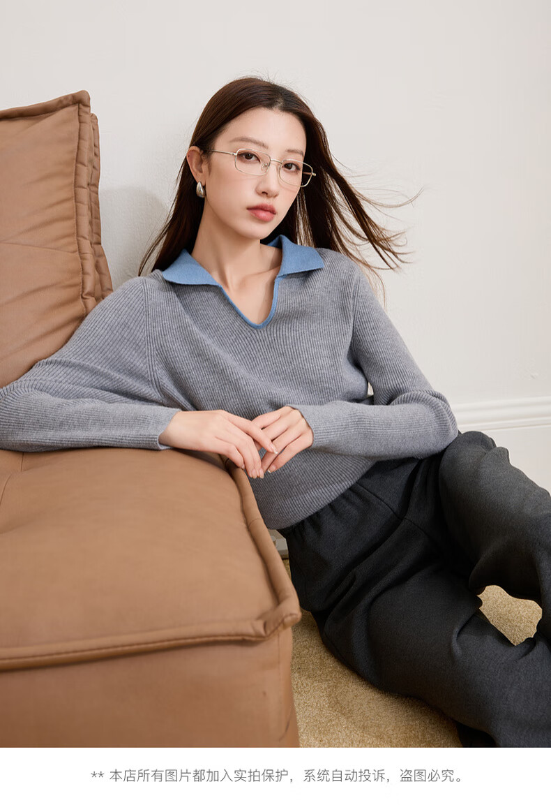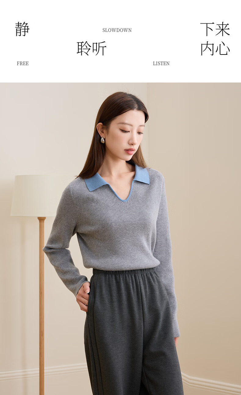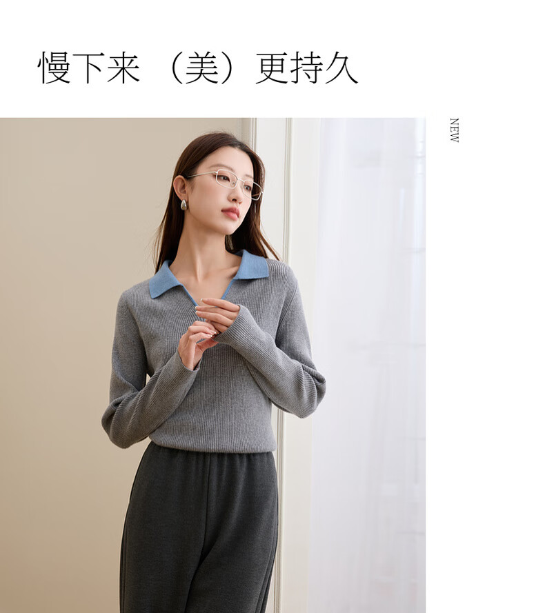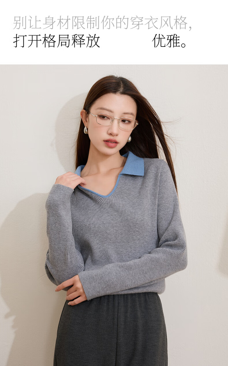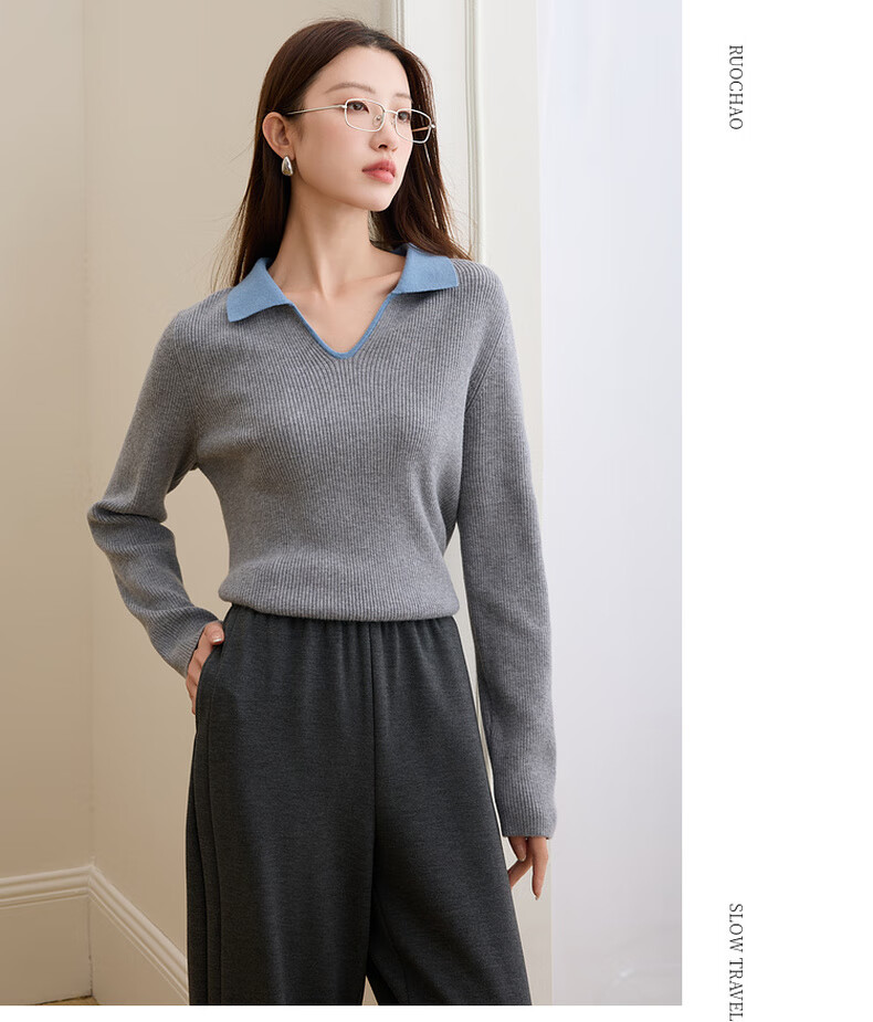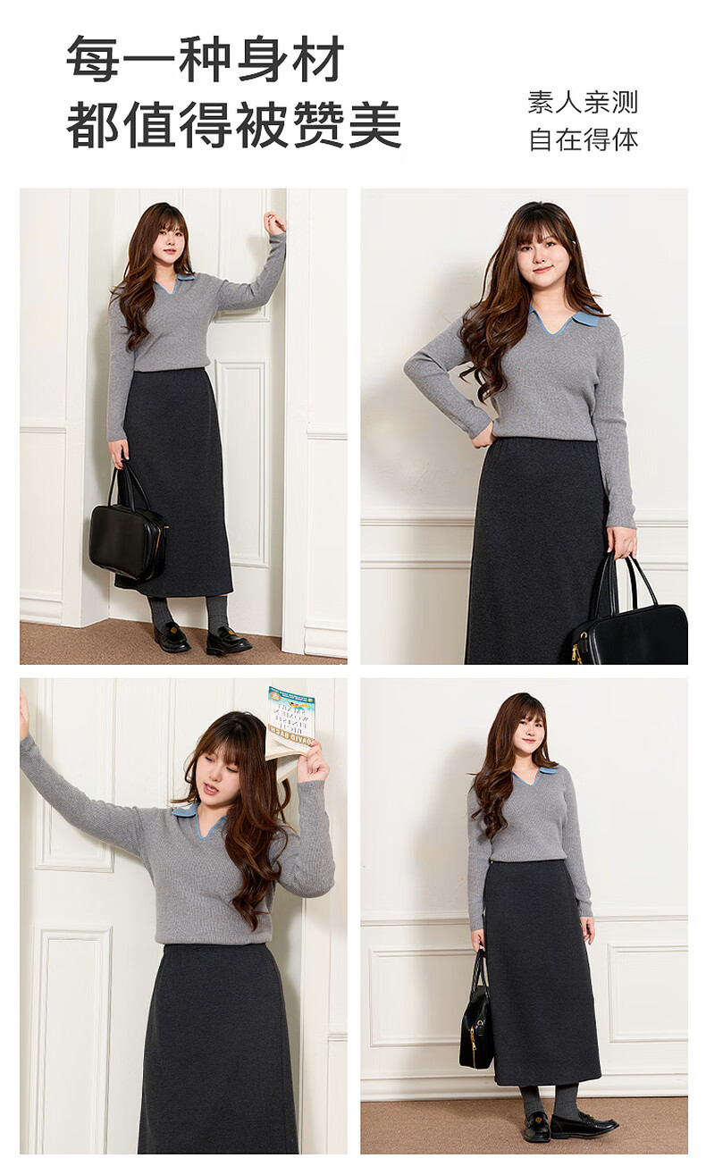 Sancai Ruochao plus size women's clothing 2025 winter new Polo collar ribbed sweater bottoming slim long sleeve fat MM floral gray M 160/88B