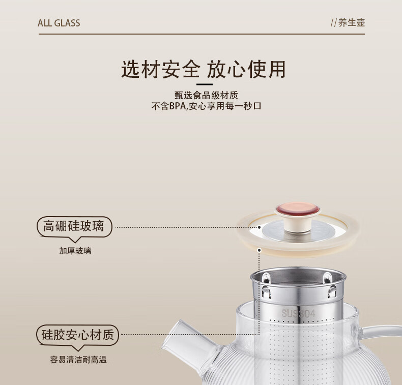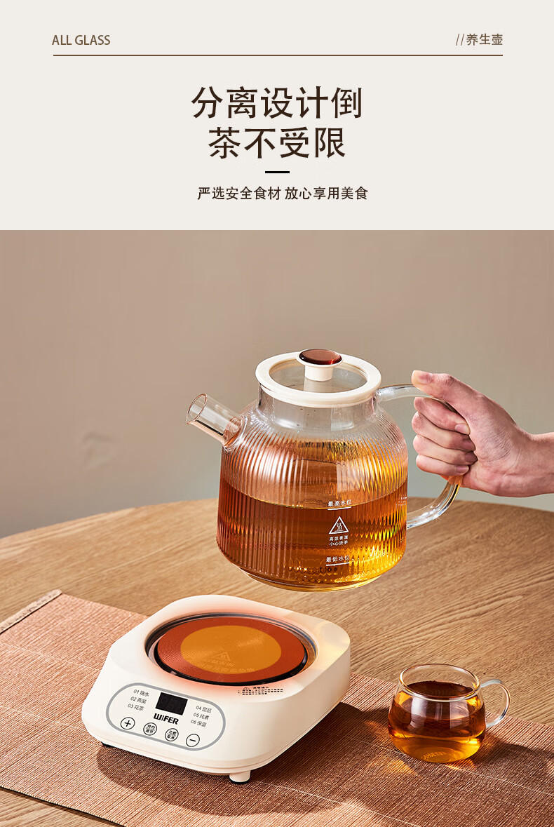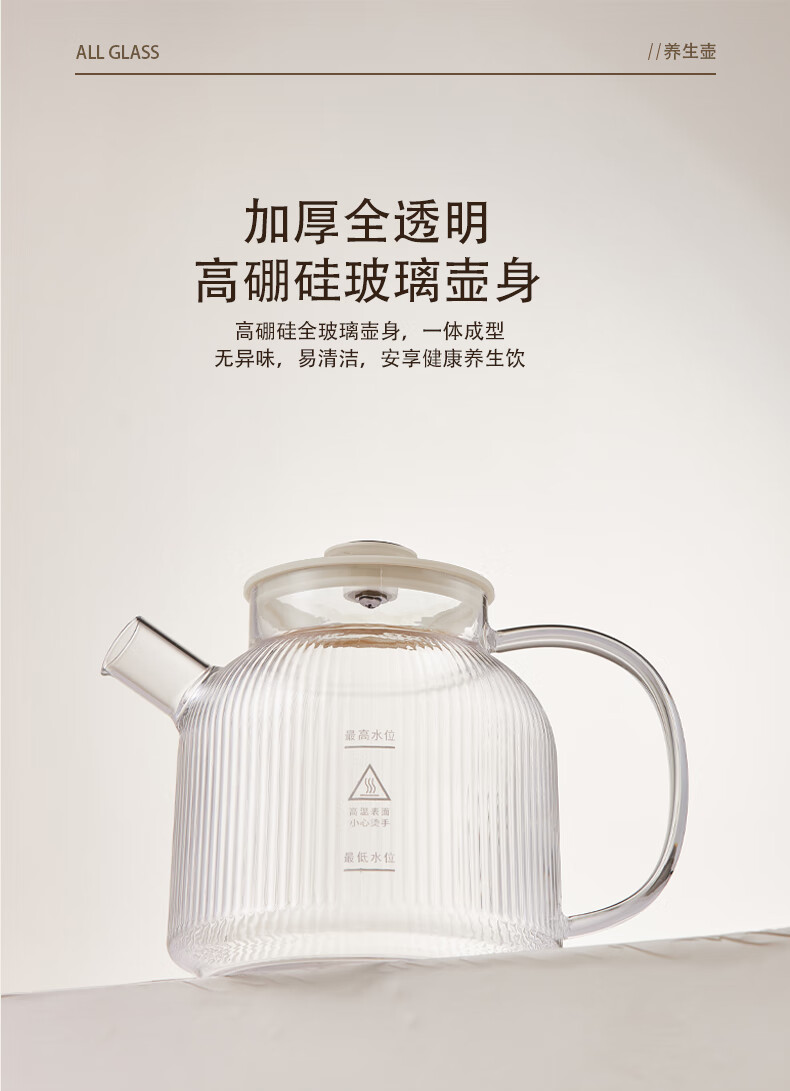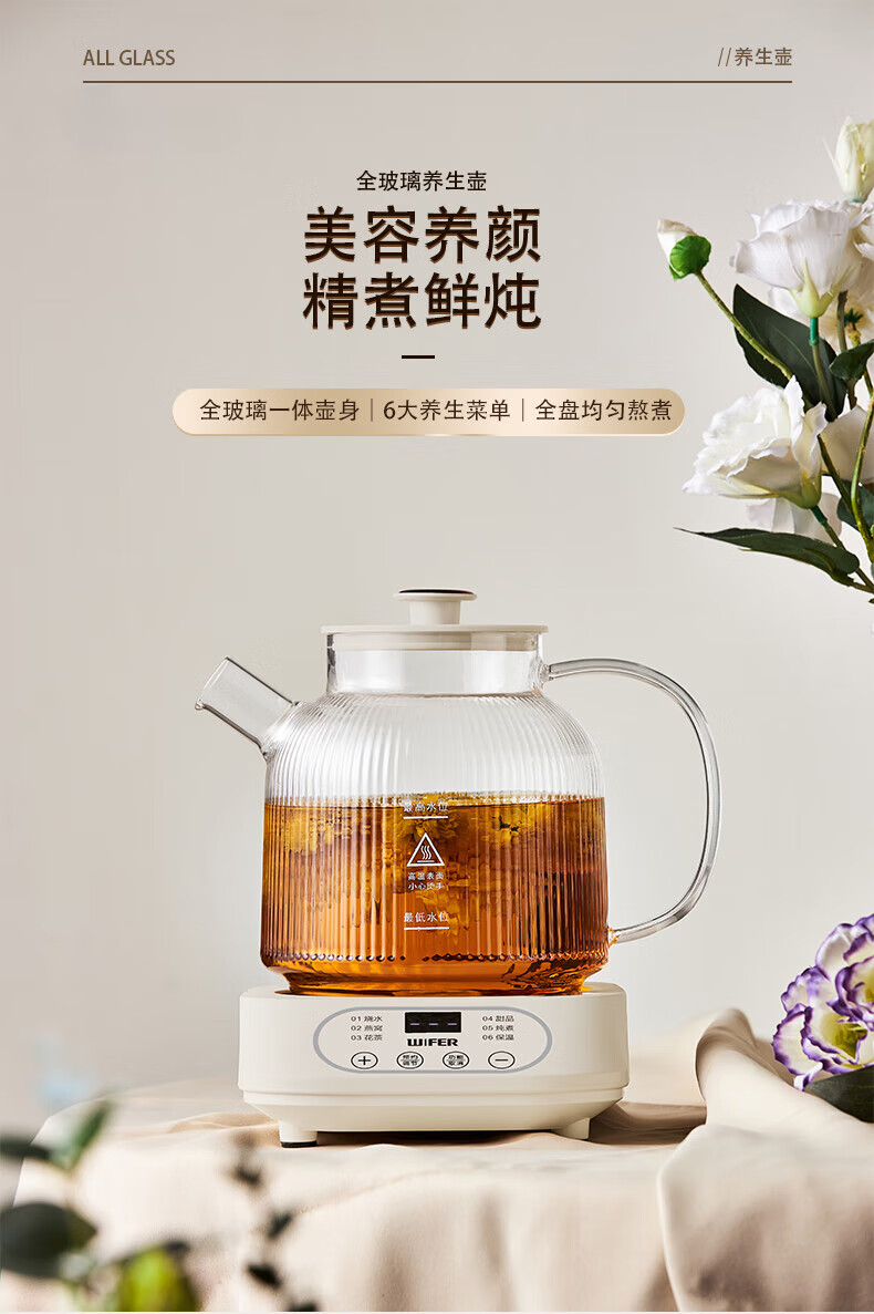 Midea's same style 2025 new health pot, teapot, teapot, office all-glass stewing all-in-one household multifunctional floral teapot, pure kettle, all glass 0 glue 0 metal丨8H constant temperature丨24H appointment 1.2L
