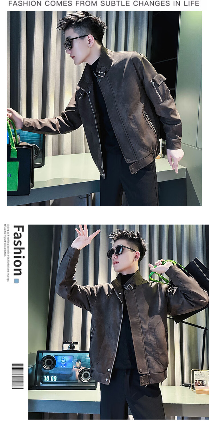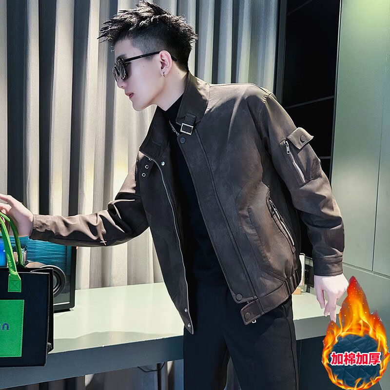 啄木鸟(TUCANO)皮衣外套男秋冬款加厚痞帅美式复古短款皮褂子飞行员机车服夹克衫 咖色 A343-JK180收藏加购优先发 M