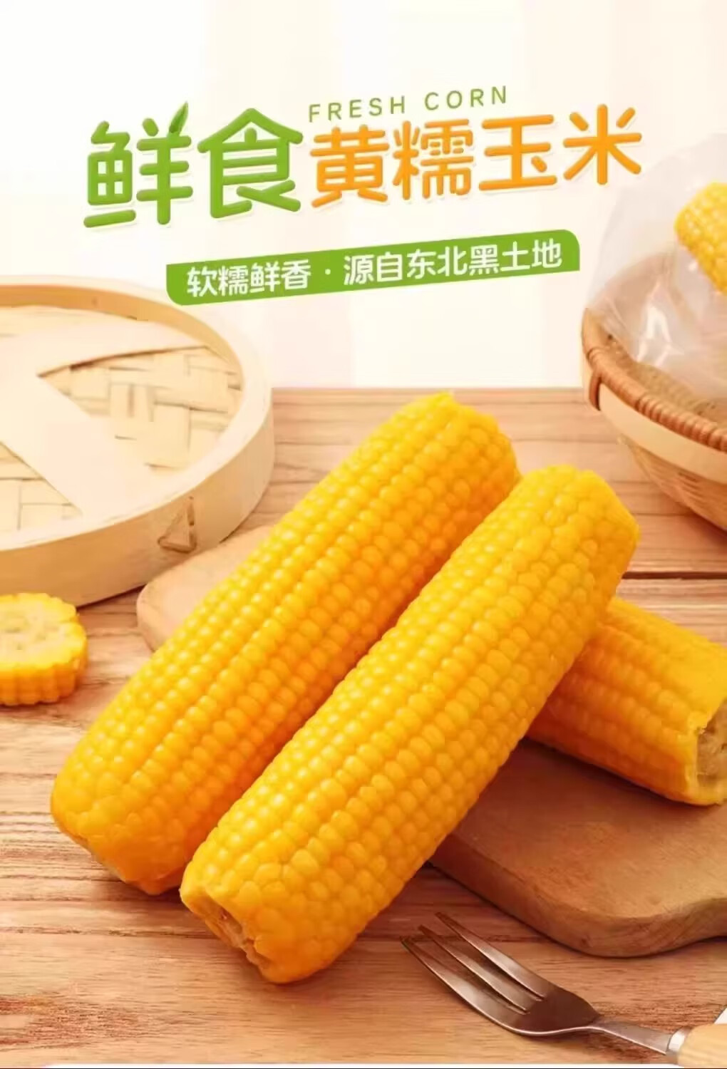 2025 Northeast yellow sweet glutinous corn on the cob vacuum packaged low-fat yellow waxy big stick sweet Northeast breakfast sticky rice yellow waxy corn 2 sticks 180g/stick