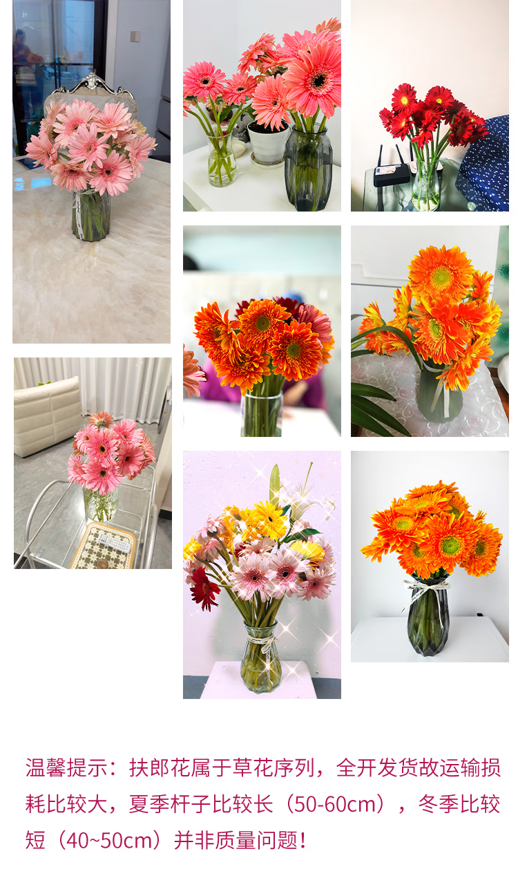 Francaise Gerbera sunflower fairy pink flower head fresh cut flowers home water maintenance home vase decoration flowers Gerbera - pink series 10 branches