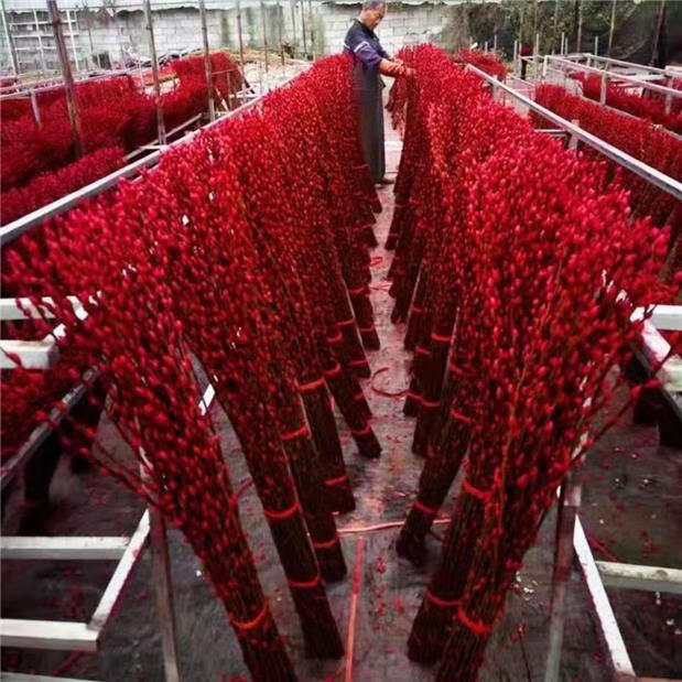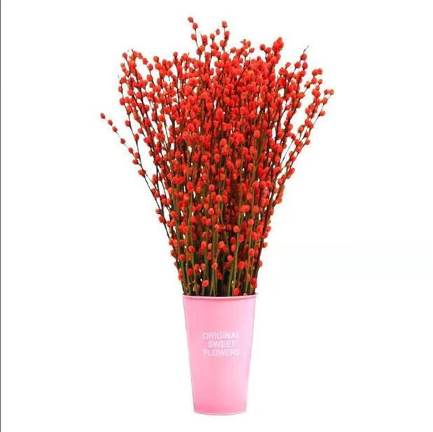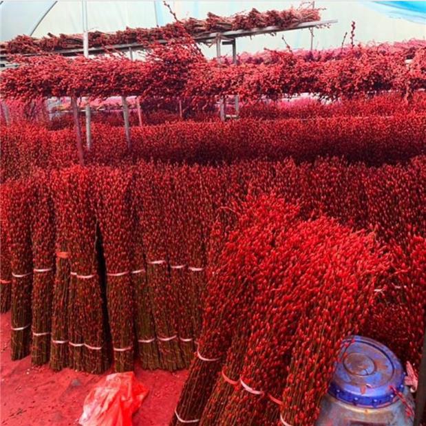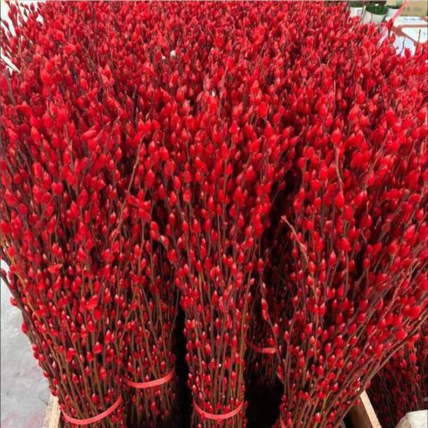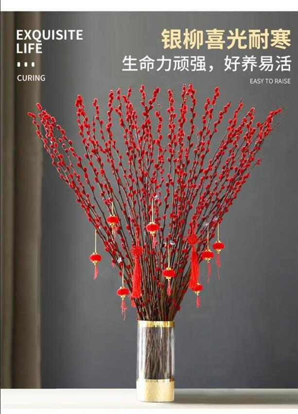 银柳真花鲜枝室内红色喜庆年宵花卉新年干花植物盆栽客厅摆件装饰 【中国红】银柳60CM高20枝 2小灯笼