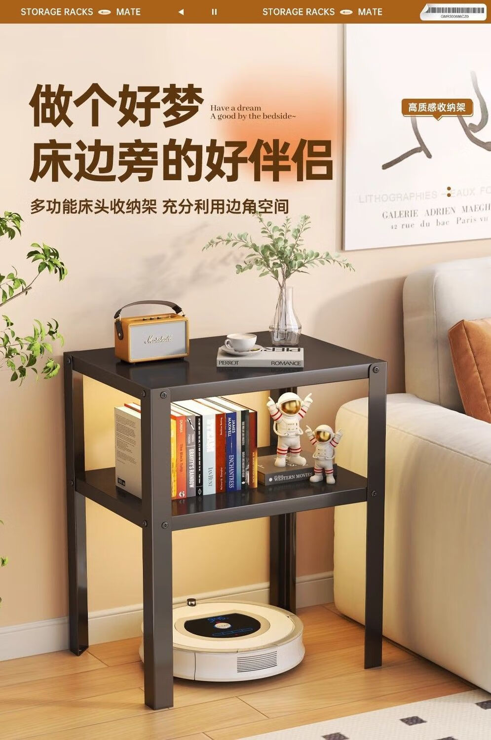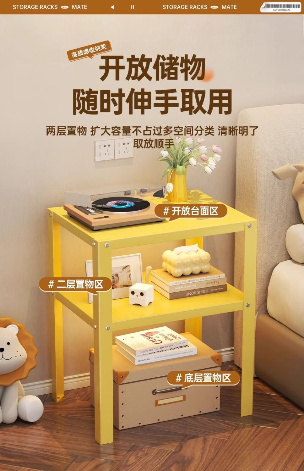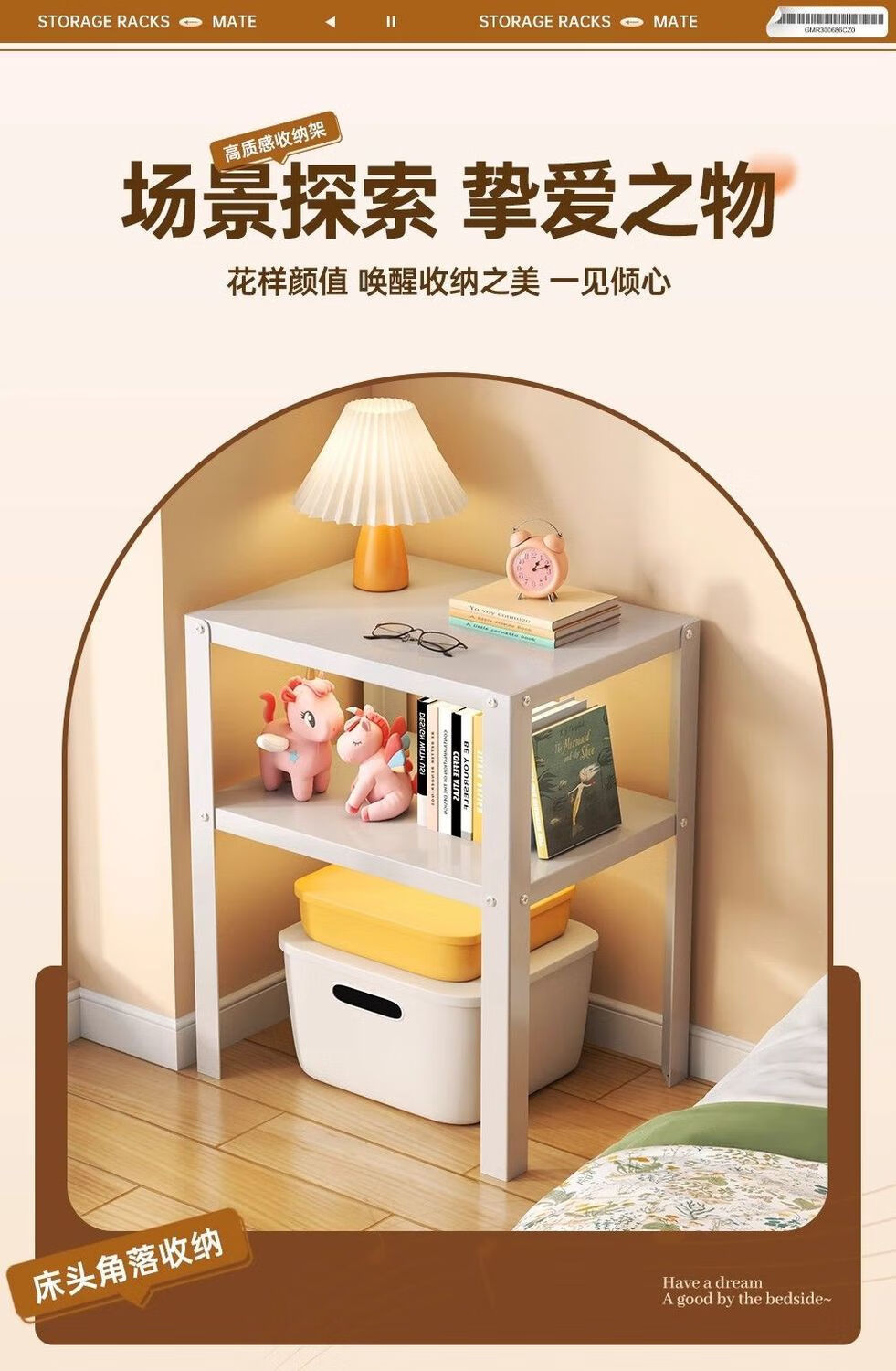 Home living room bedroom floor-standing storage rack Nordic style simple solid color storage rack wrought iron shelf modern bedside table white second floor 37 long 28 wide 45 high